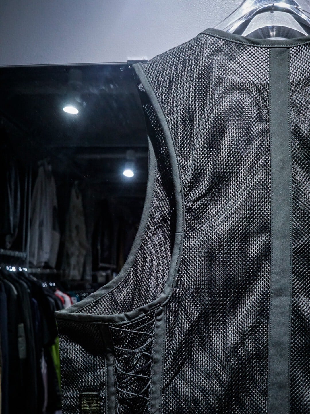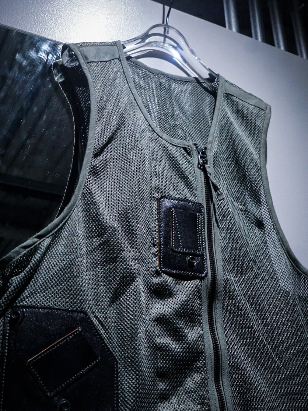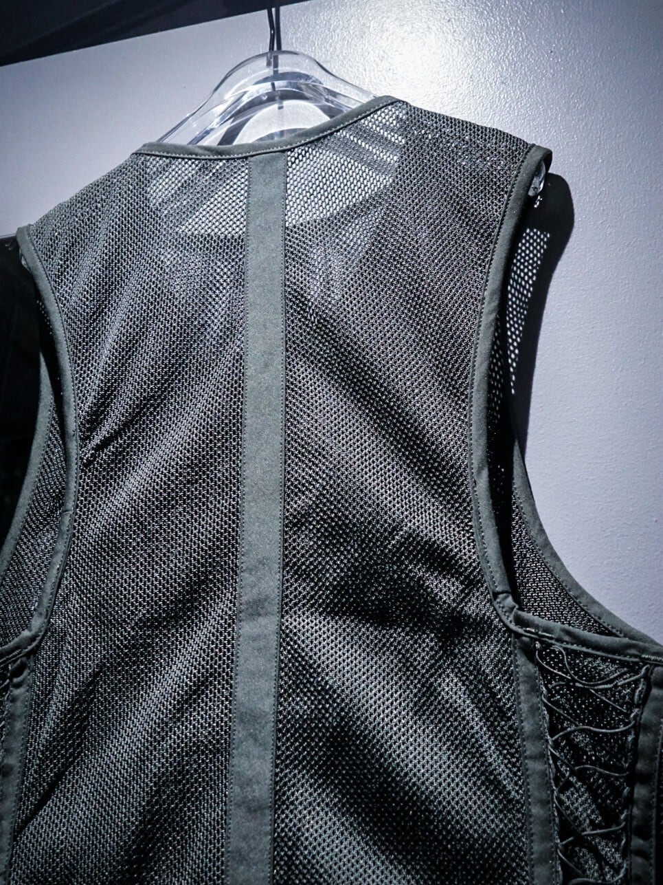 メッシュ素材をボディに使用する事で、通気性良く軽やかに着用でき、ナイフホルダーや無線機等を装着できるディテール等、ミリタリーらしい機能性の高いデザインに。