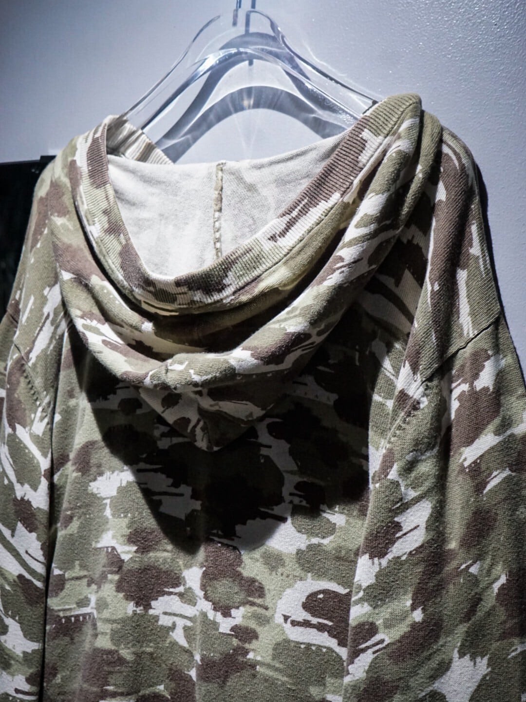 トーンを変えたカーキにブラウンの配色と、奥行きのあるカモフラージュ。そして何よりも戦車をデザインに落とし込んだ、当店らしいwitに富んだ1着かと。