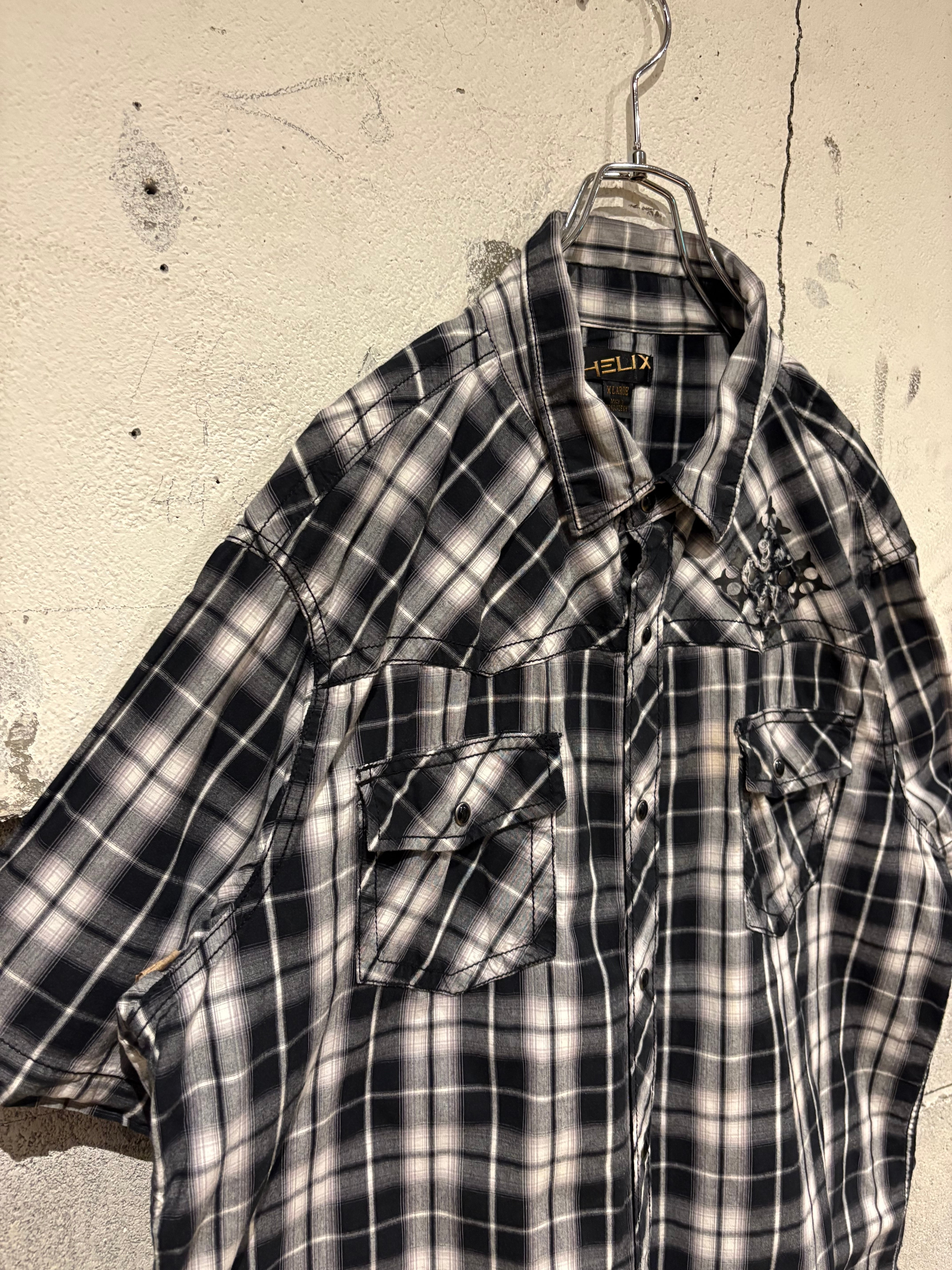 白、黒のカラーリングでオンブレチェックをボディに載せ、ウエスタン調のディテールで仕上げたチェックシャツ。