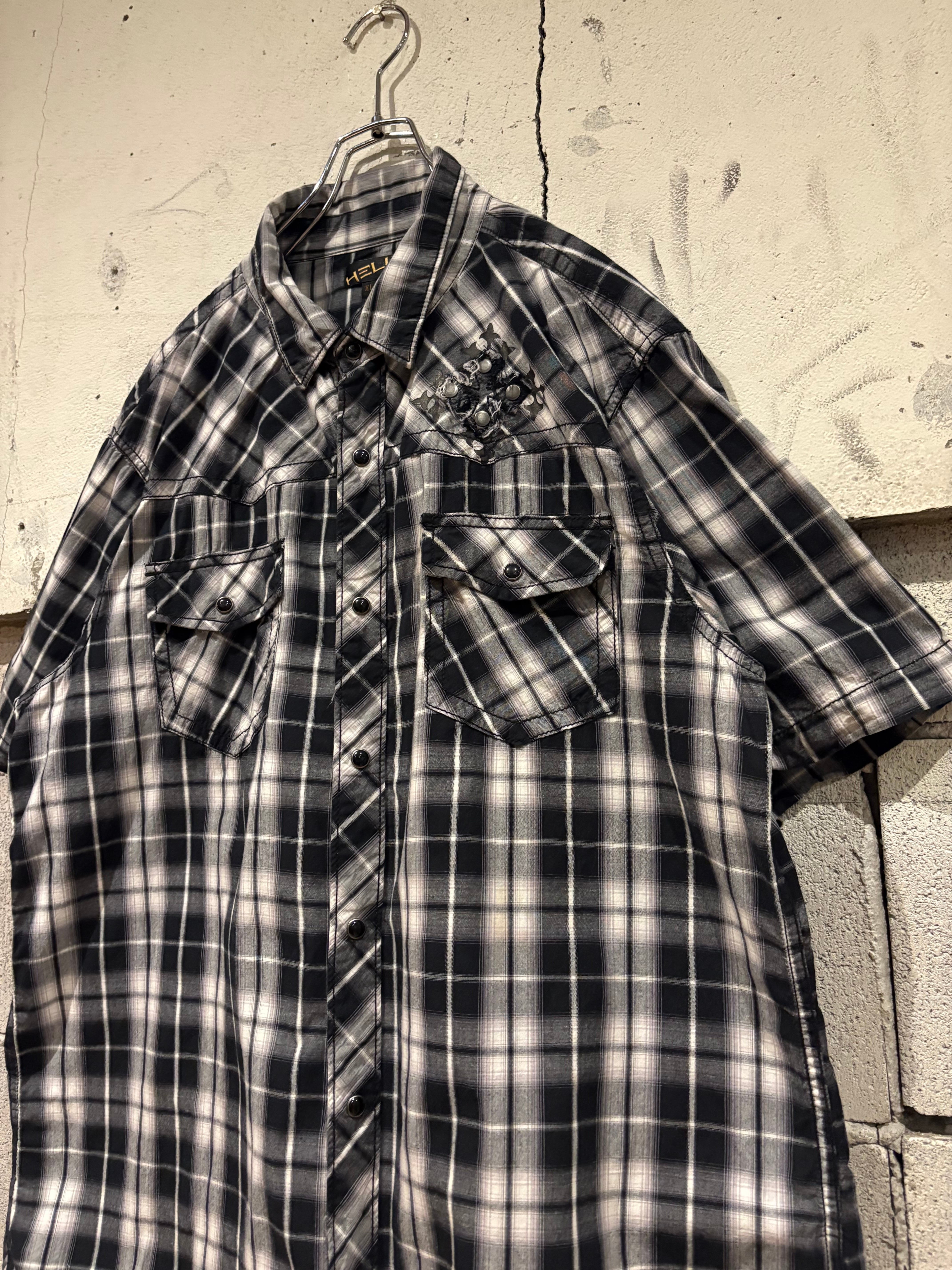 古着の定番でもあるチェックシャツに、ウエスタンやゴシックな要素を落とし込み、現代的にアップデートさせた1着です。