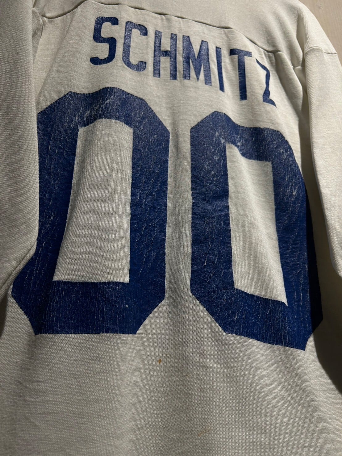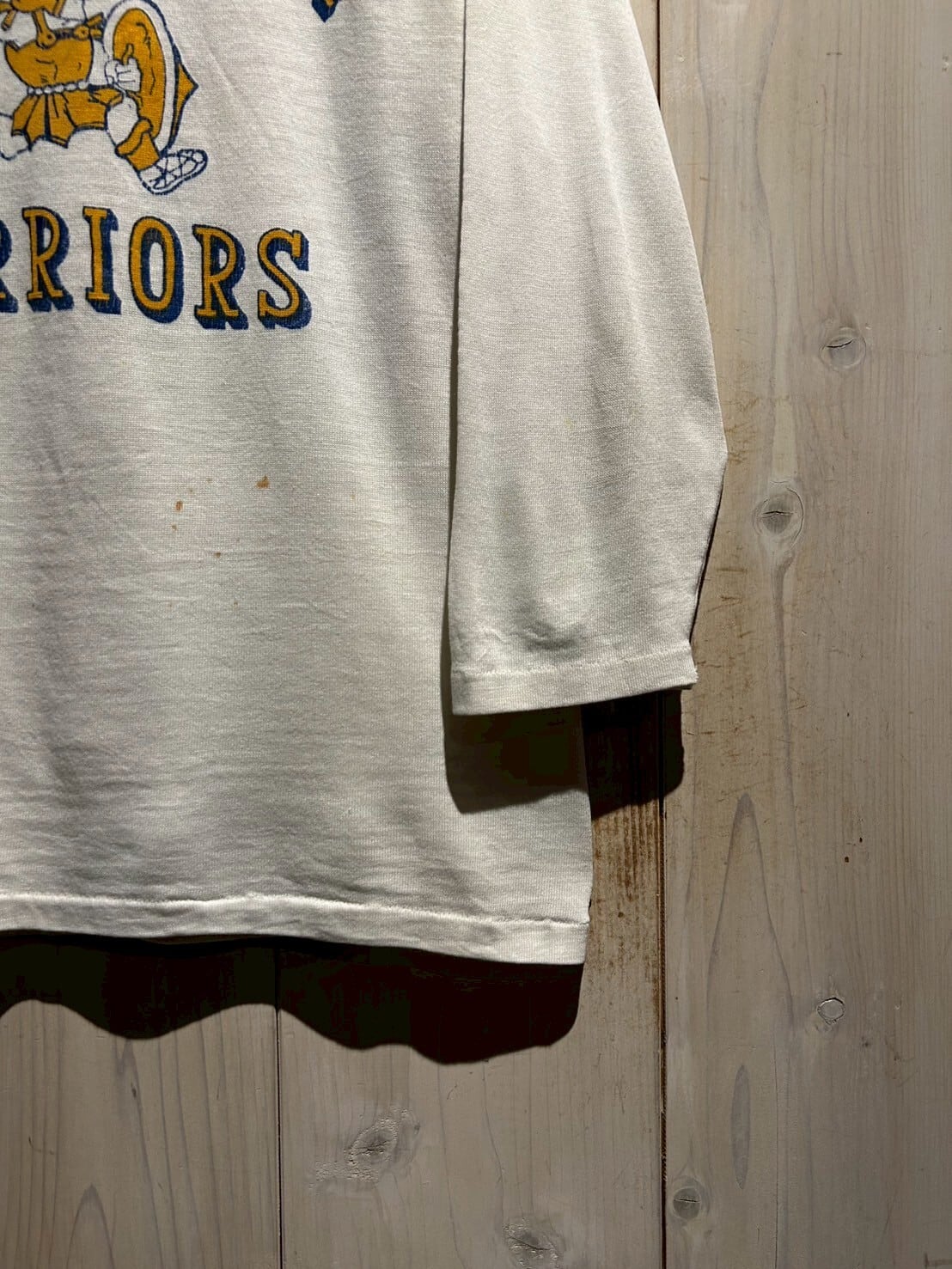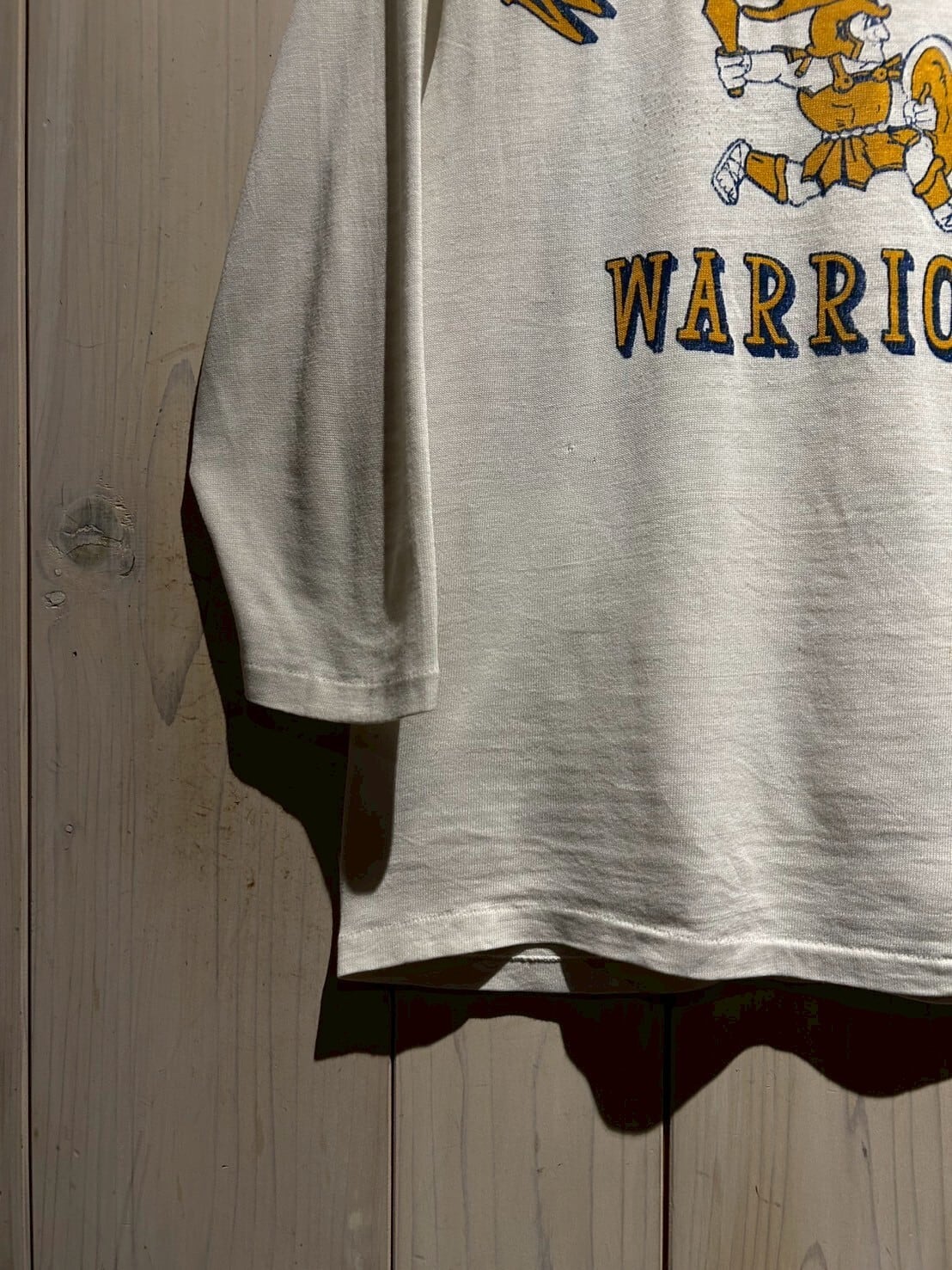 フロントにはアーチ状の学校名にチームのロゴ、背面にはナンバリングとカレッジモノならではのデザイン。イエロー×ブルーの配色バランスも良く、かつ3段プリントでヴィンテージ好きの心が射抜かれる1着では無いでしょうか。
