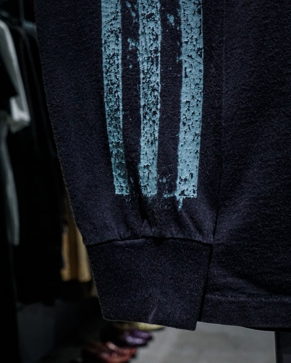 フェードの効いたスミクロのボディに、クラックの入った退廃的なプリントを施したロンティー。