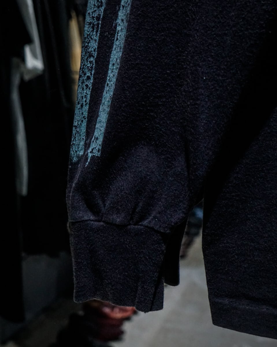 シグネチャーでもある3本のラインもくすみのある凝ったデザインに。ボディの雰囲気とプリントが相まって古着らしい良い雰囲気を持った1着に仕上げられています。