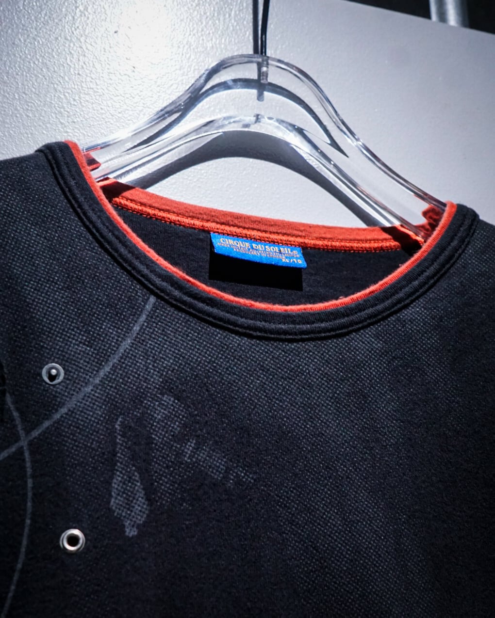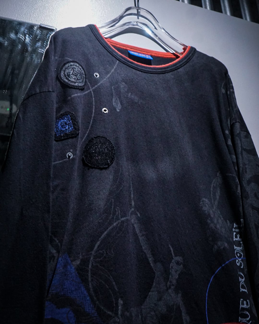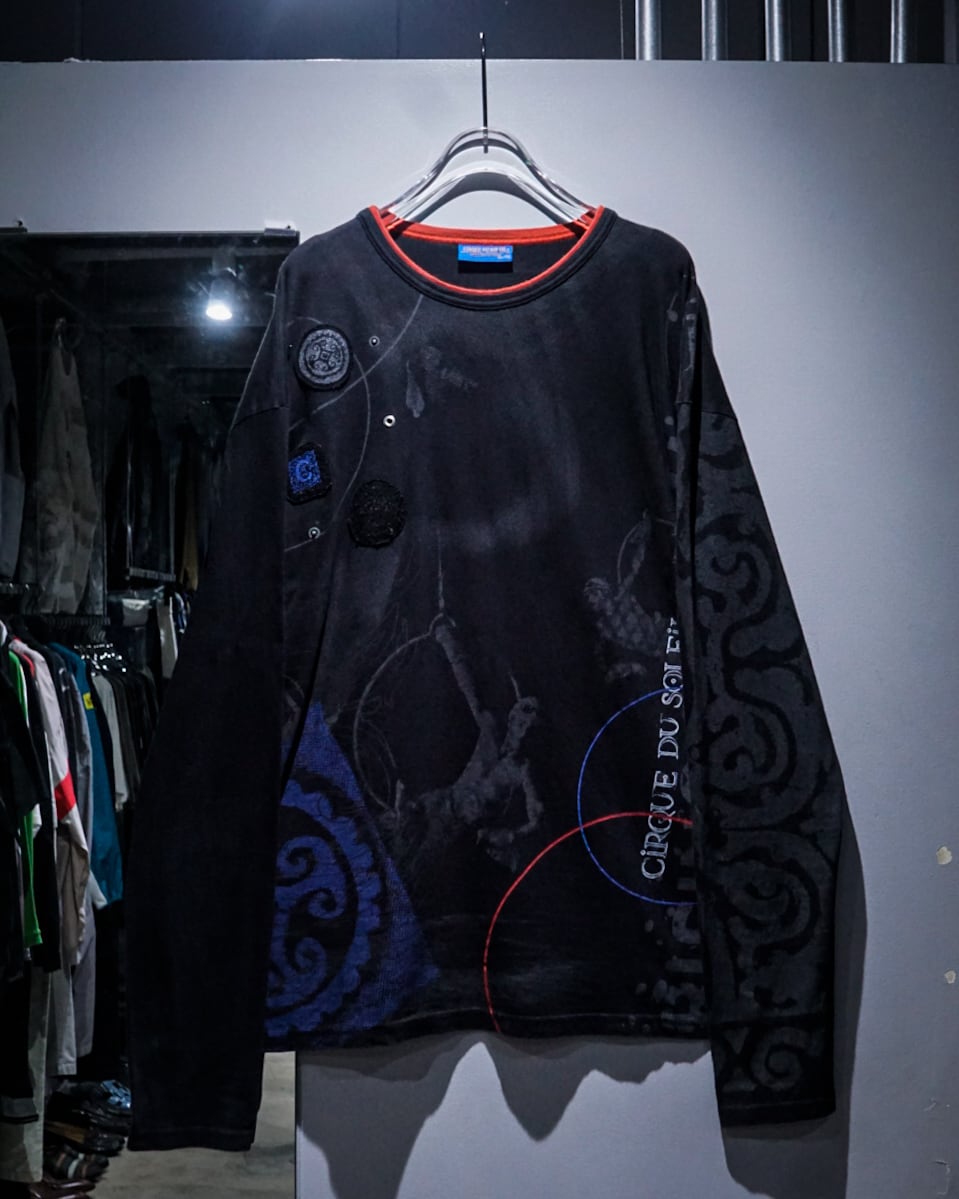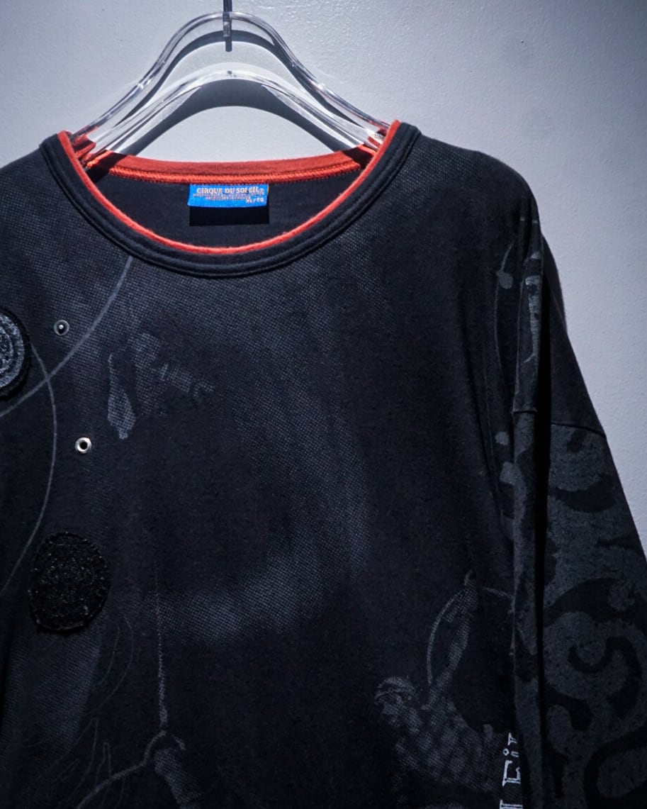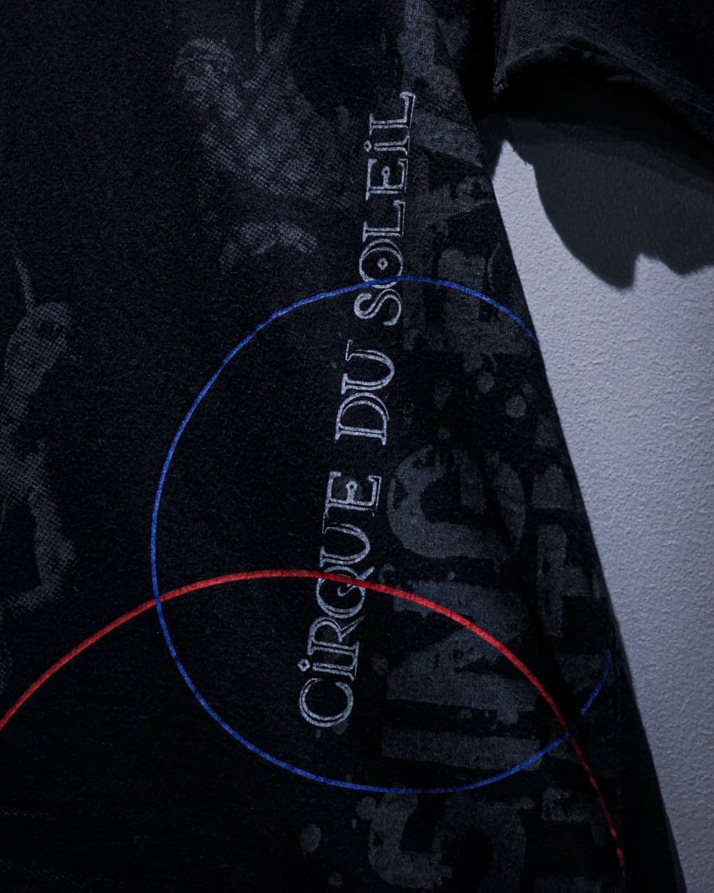 ブラックの薄手のロンティーに、シルク・ドゥ・ソレイユらしいパフォーマー等のプリントが施された1着。