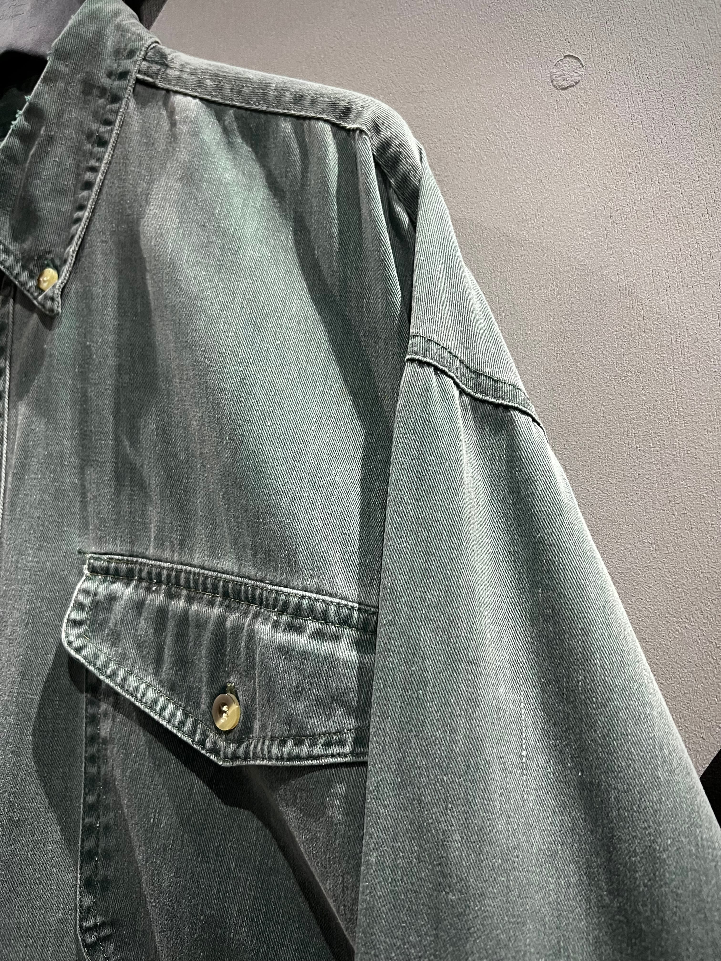 フェード感の良いコットンシャツに、前所有者によるリメイク、リペアが施された唯一無二な長袖シャツ。