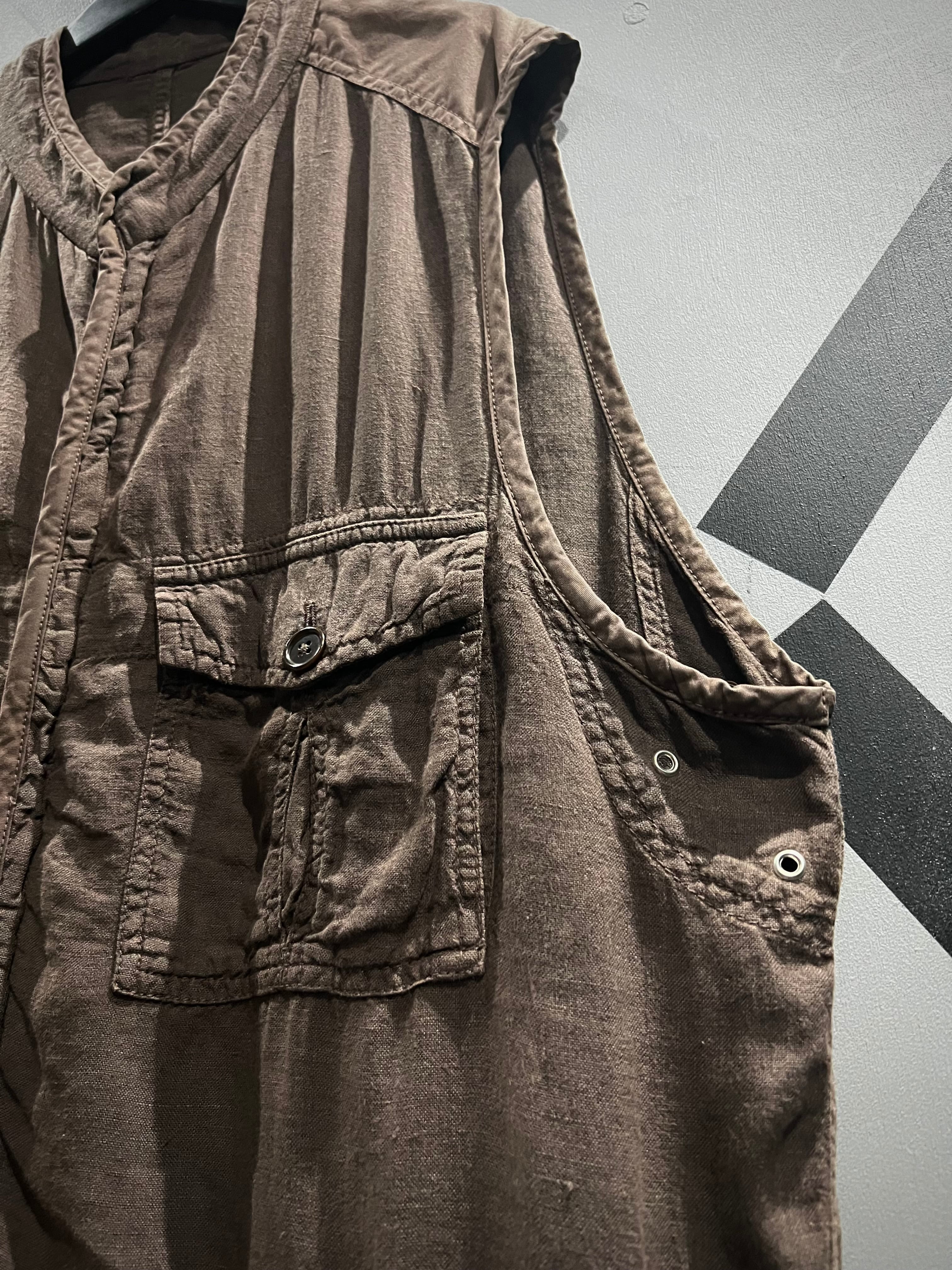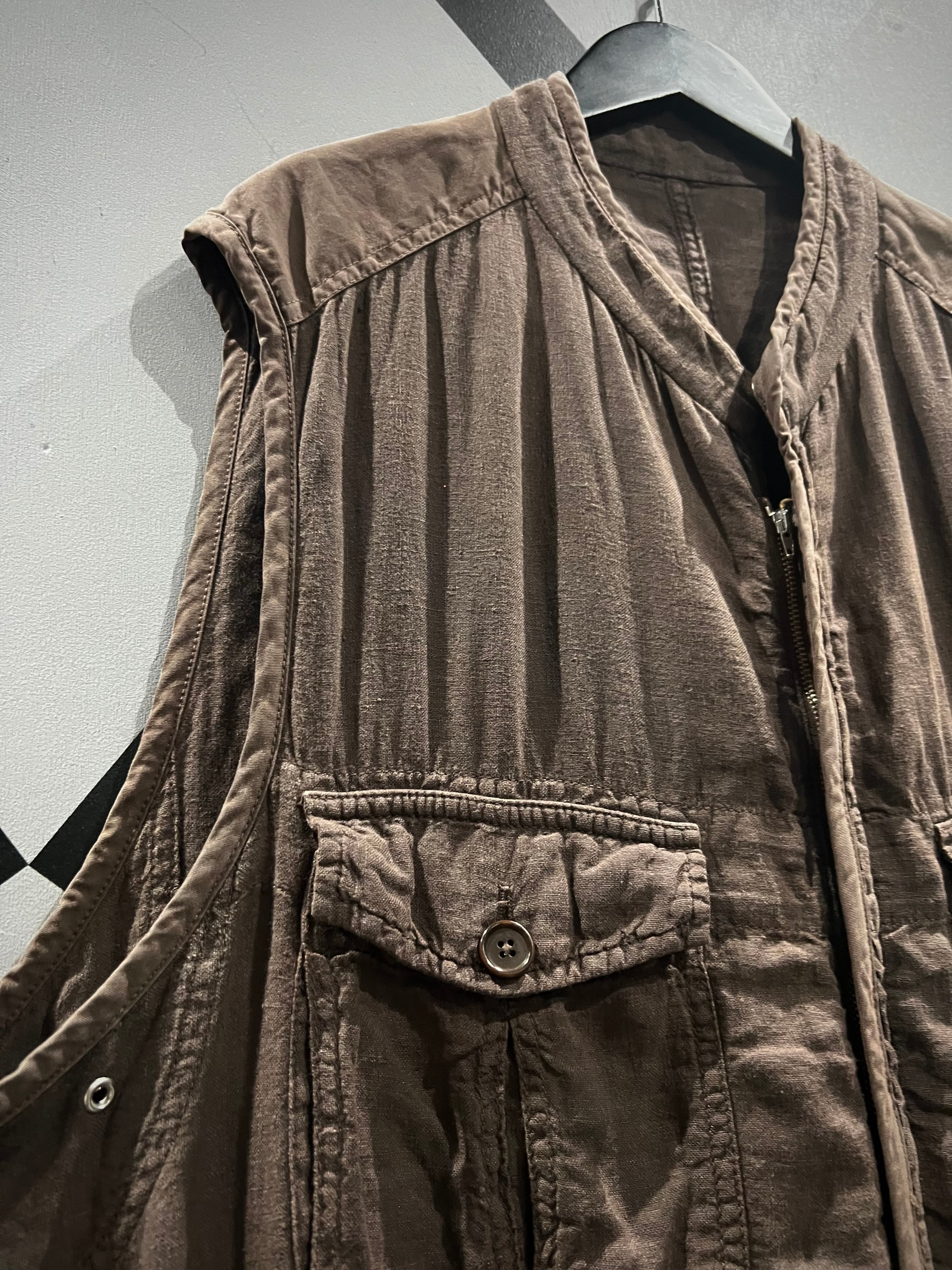 ドライな質感のリネンを用いて、ギミックを盛り込んだリネンベスト。