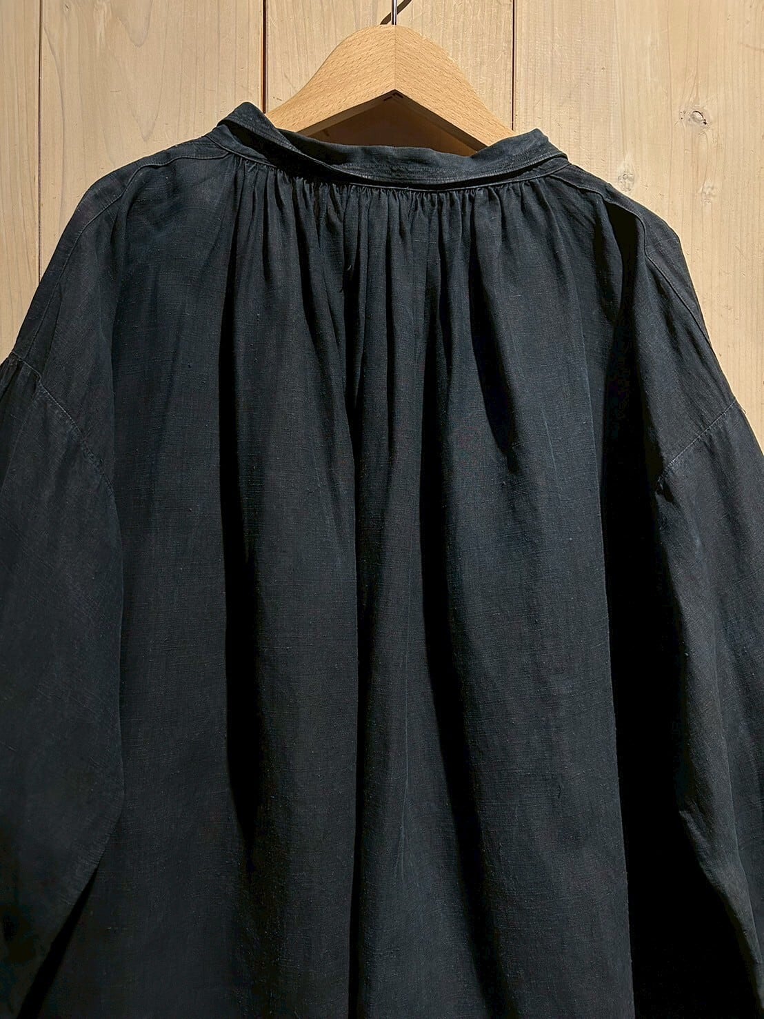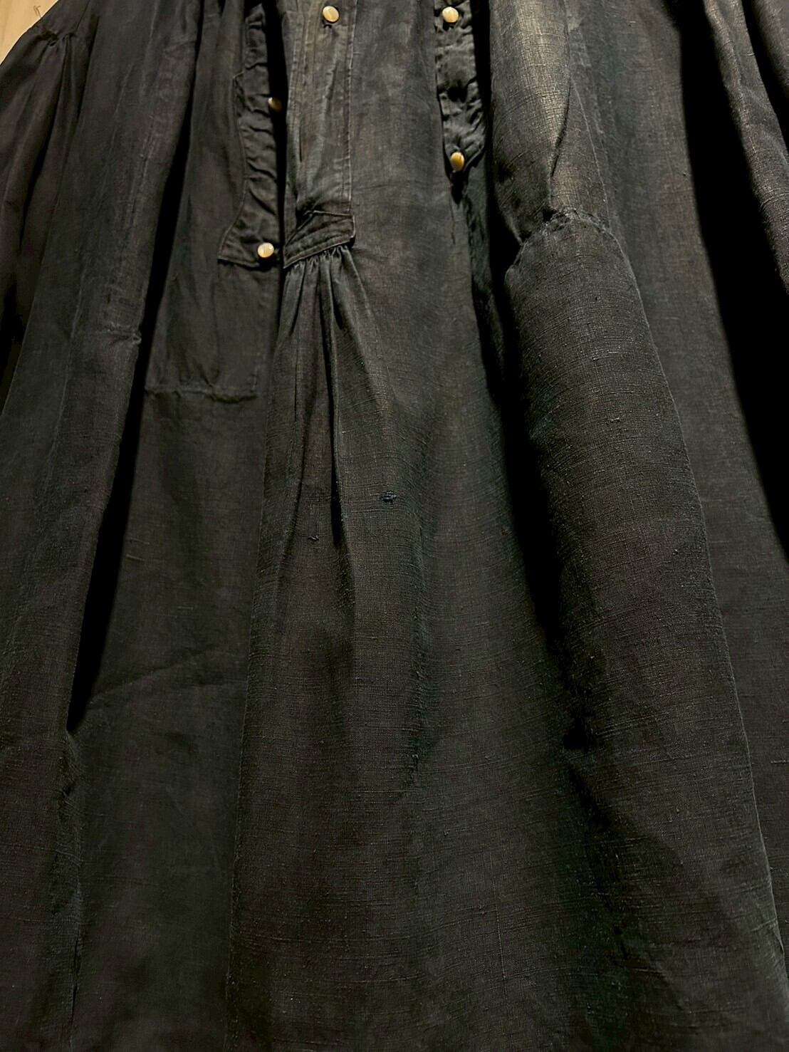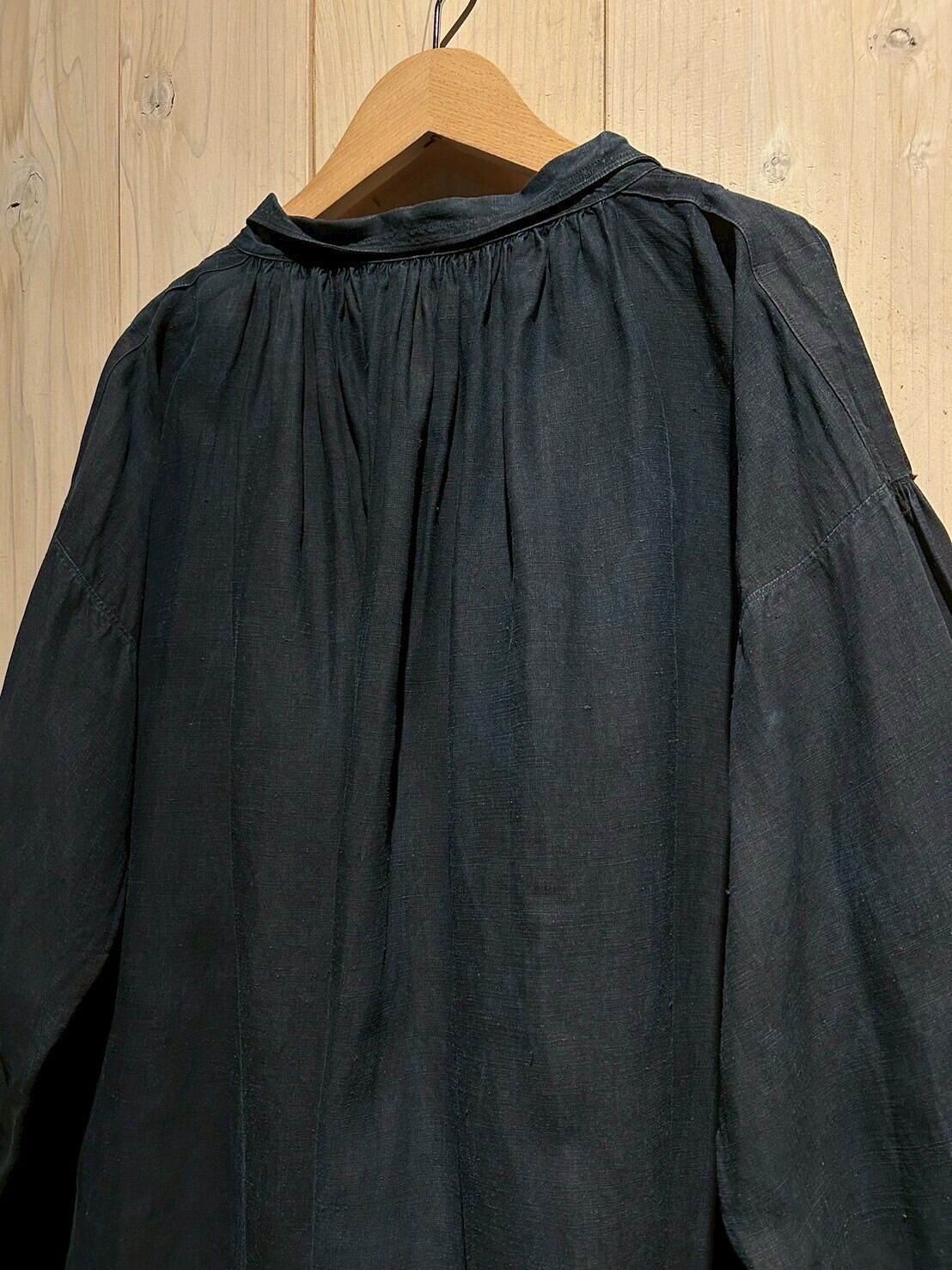 ハリのあるリネン素材にインディゴ染めを施した1900~30'sの超スペシャルなアンティークリネンシャツ。