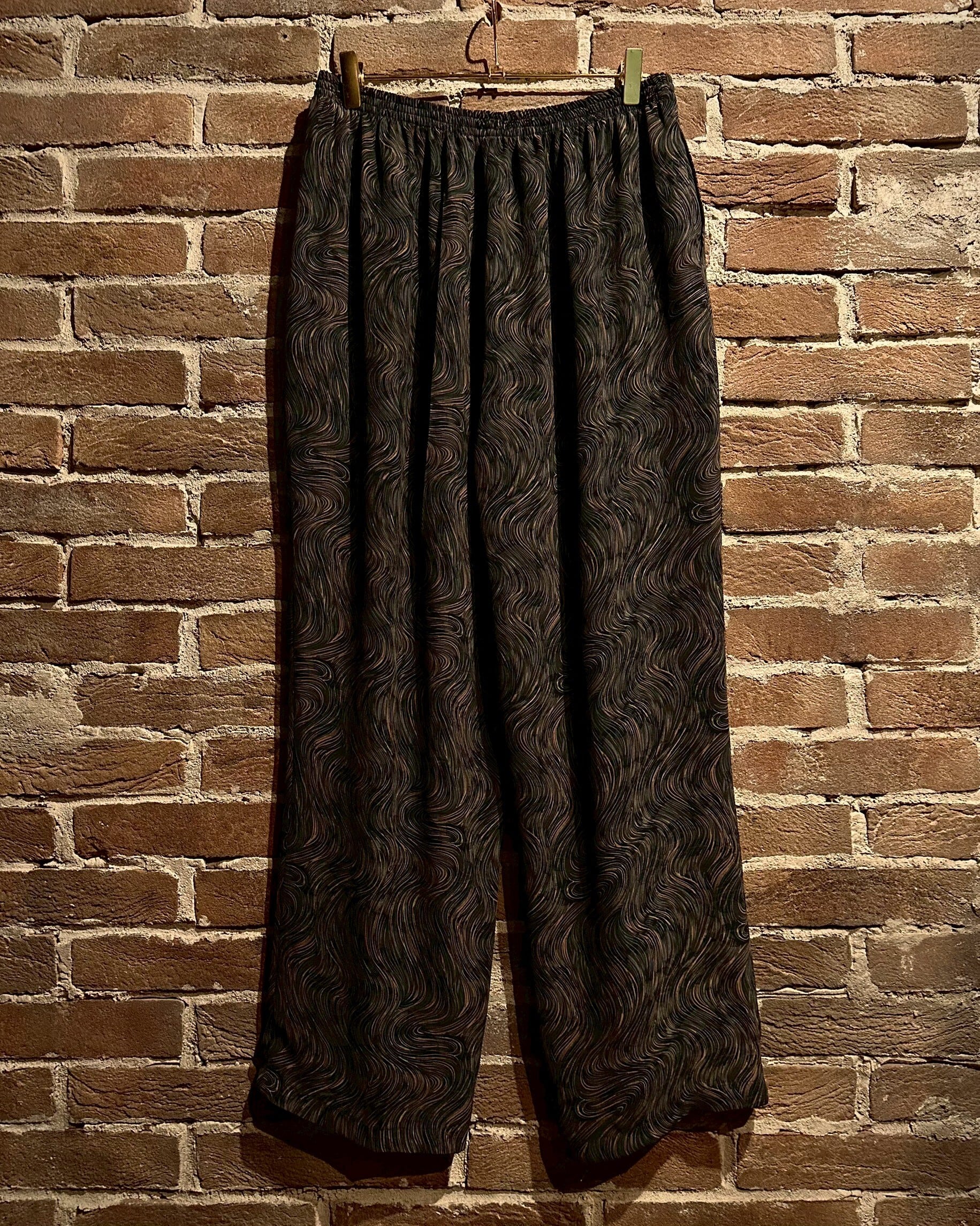 柔らかく肌触り滑らかなレーヨンを用いたボディに、アーティスティックな波状のデザインを落とし込んだパンツ。