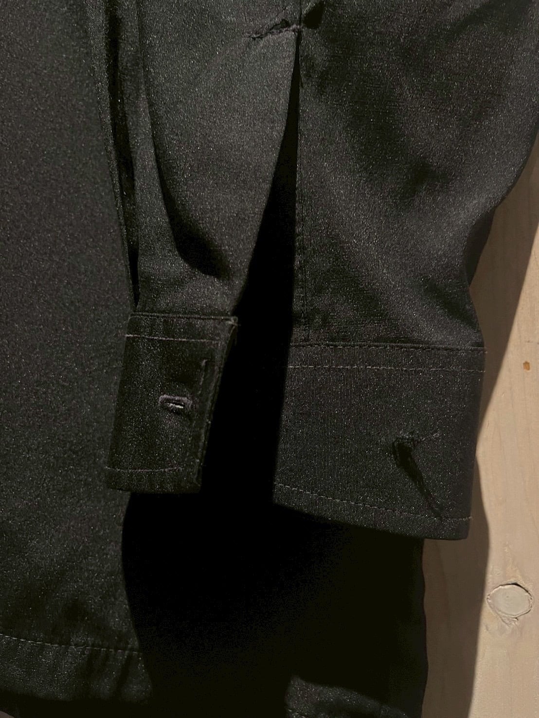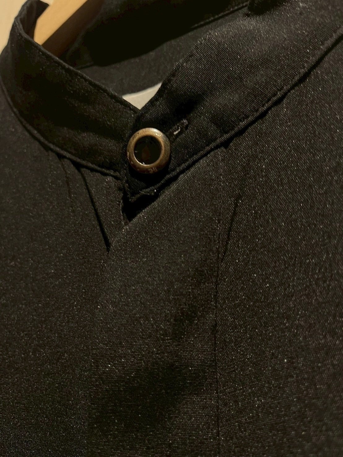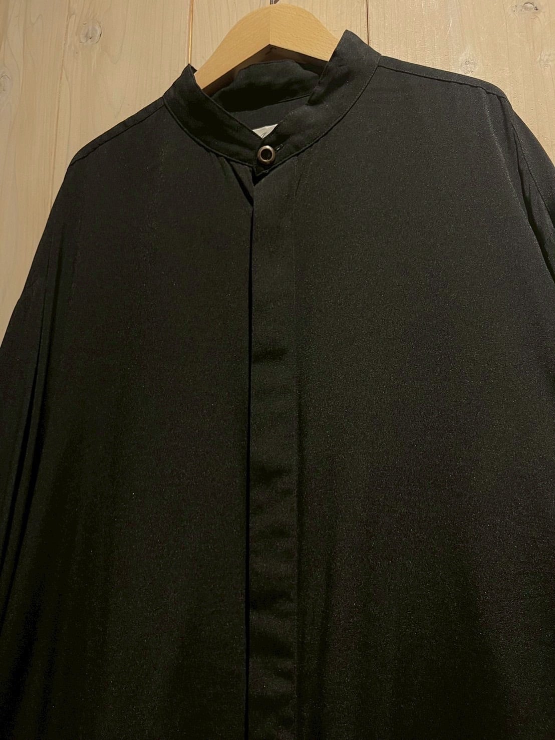 フロントはトップボタン以外は比翼仕立てとなっており、バンドカラーと相まって非常にミニマルなルックスに。シンプルイズベスト、正にそんな言葉を体現したような1着かと。