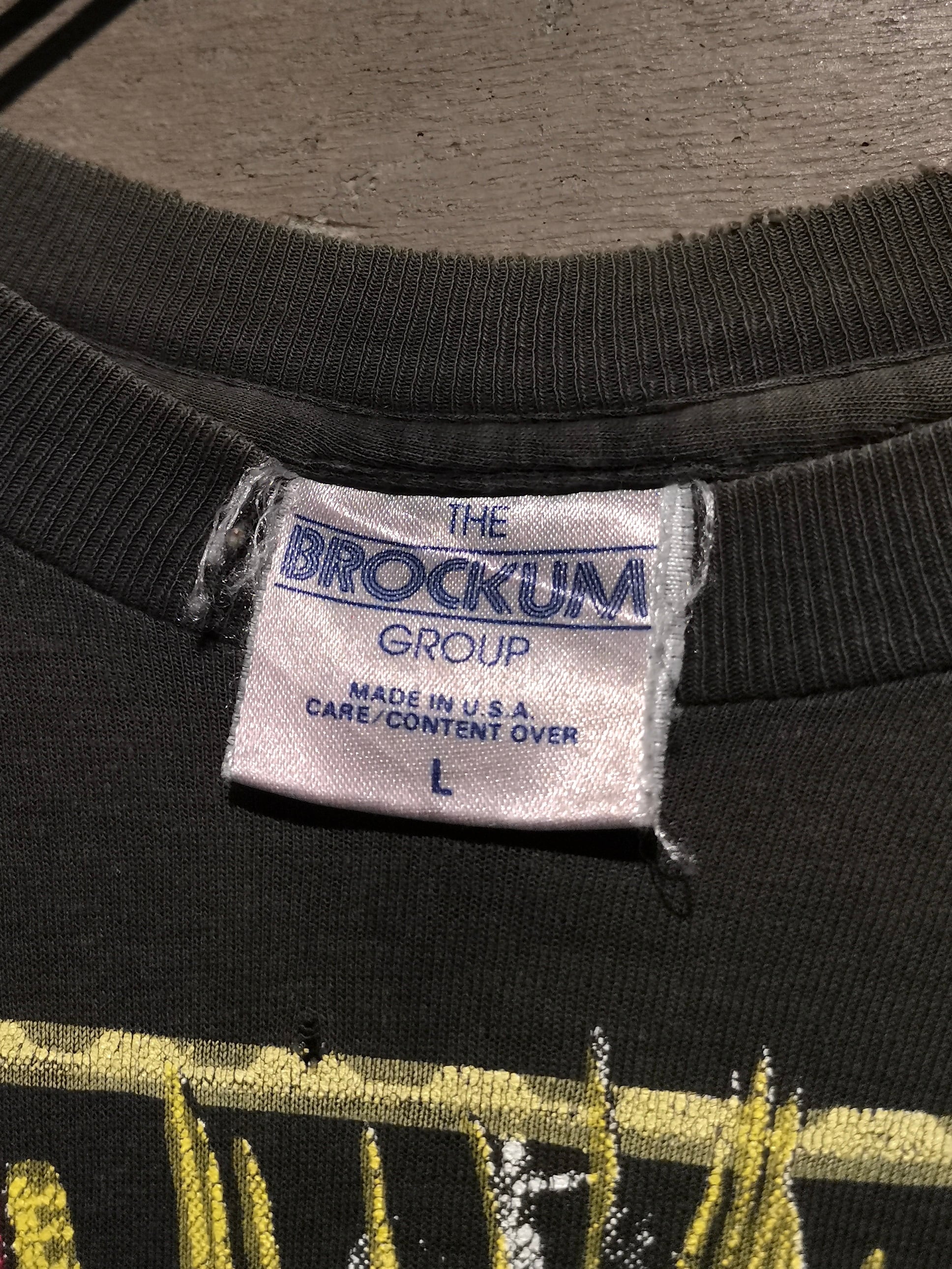袖裾共にシングルステッチのMade in USA、90's Brockumボディ。L表記のバランスの取れたサイズ感に、フェードやダメージ等によるヴィンテージならではの雰囲気も◎