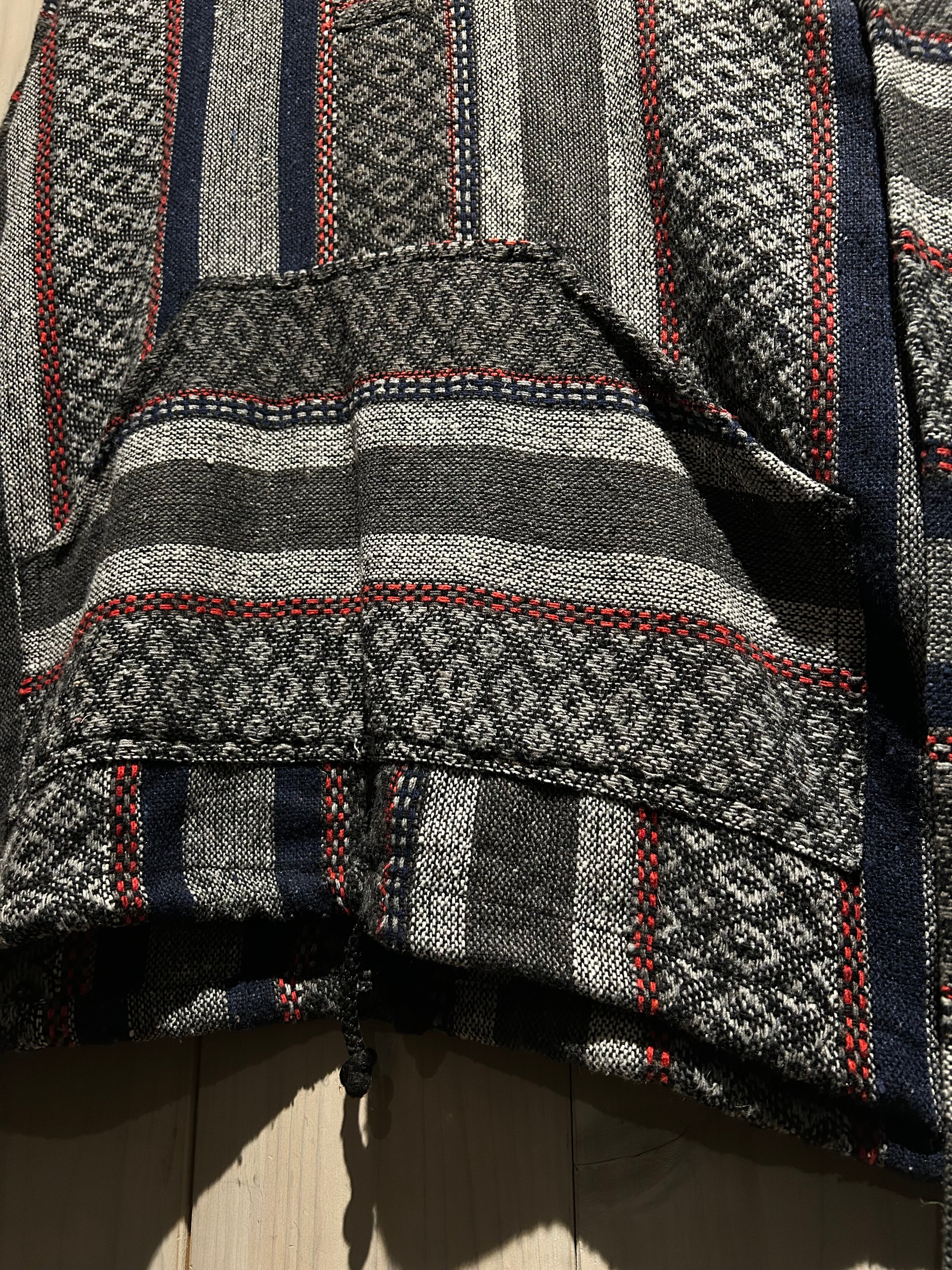 黒やグレーのモノトーンをベースに、赤色を差し色にしたメキシカンパーカー。この手のアイテムでダークトーンのものって意外と少ない。