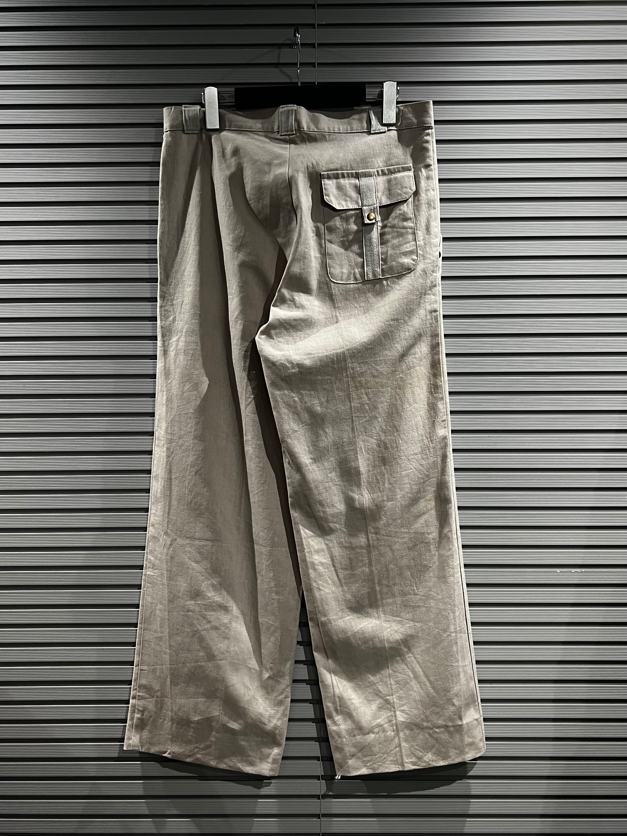 パンツはシャツジャケットと同様のパックポケットのギミックに、ノータックのワイドストレートなグッドシルエット。ウエストをギュッと絞った際のシルエットがめちゃくちゃ良いんです。