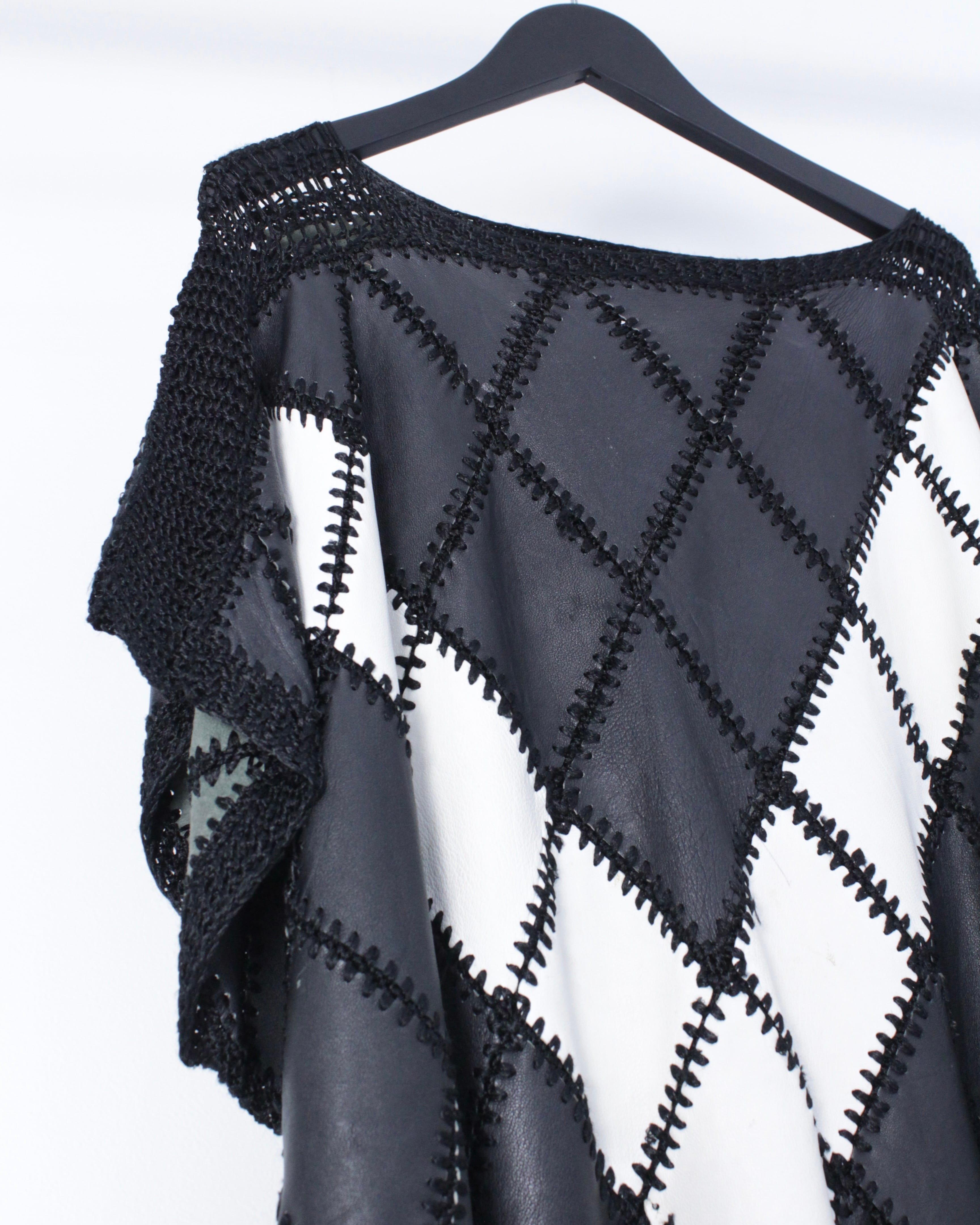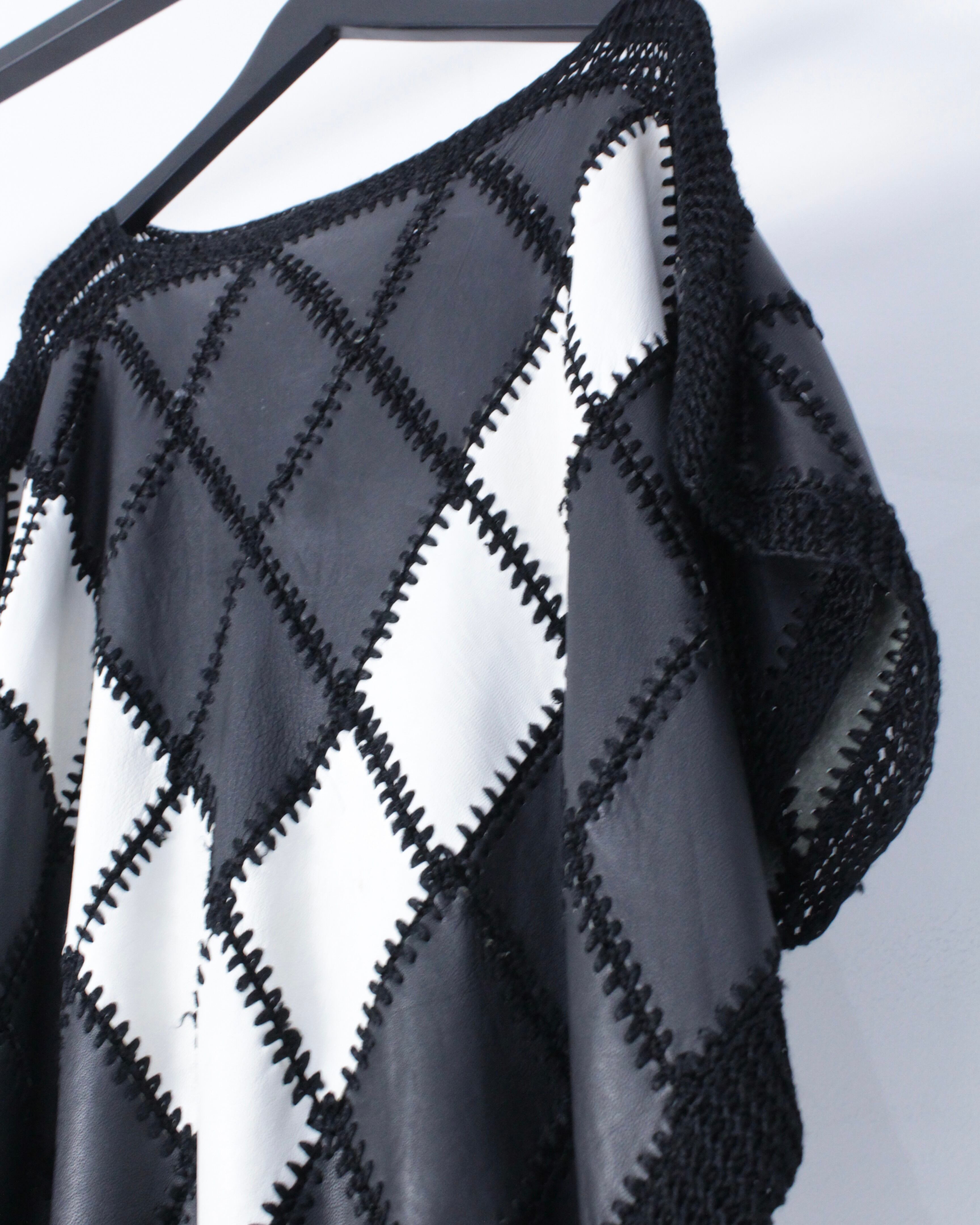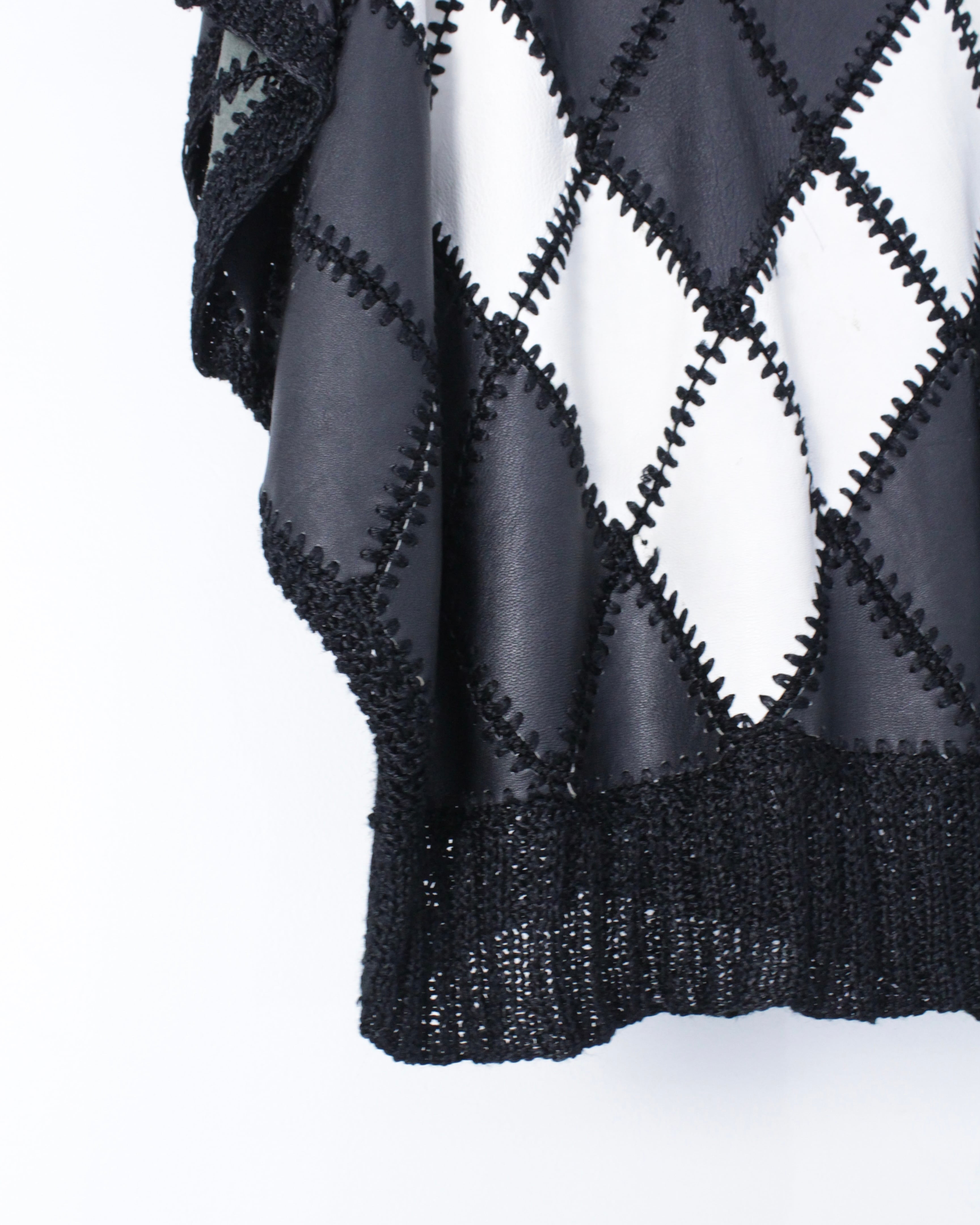 一部分の切り替えではなく、全体に白かねる黒のレザーのパッチワークで繋ぎ合わせると言う非常に手の込んだ、贅沢な1着。