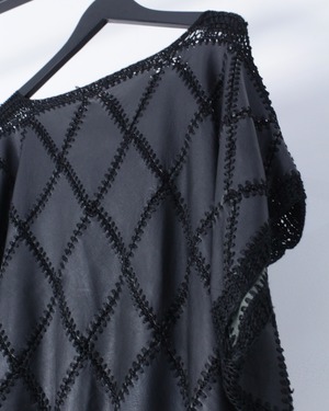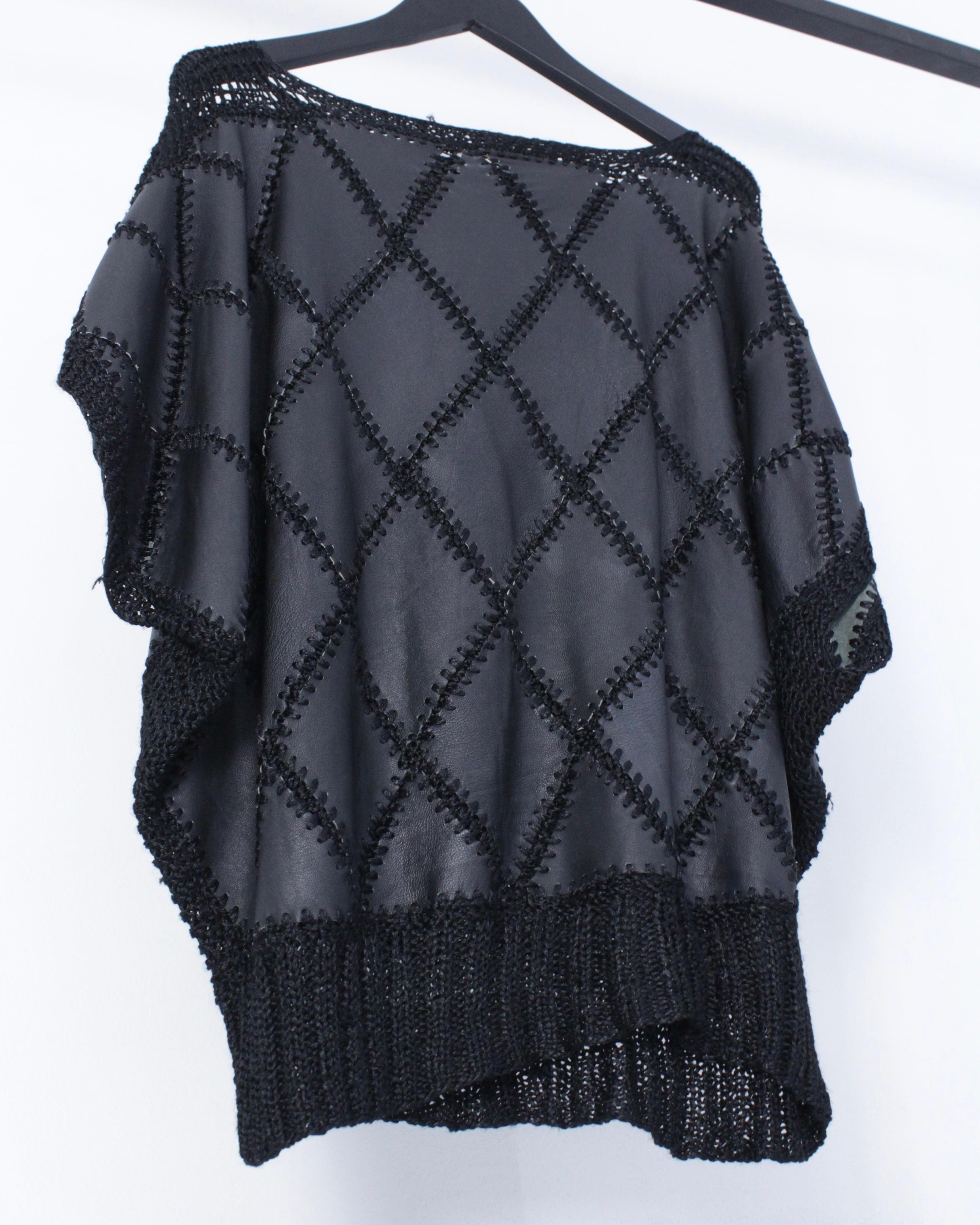 艶やかなレザーを格子状のパッチワークの様につなぎ合わせ、尚且つダイヤモンド調のデザインに落としこんだ、非常に手の込んだスペシャルなベストが入荷。