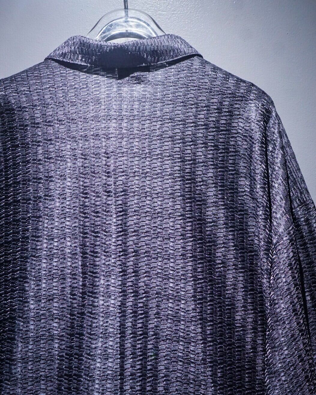 繊細な光沢を放つシルバーの糸を用いて、ニットのように編みによって仕上げられた長袖シャツ。