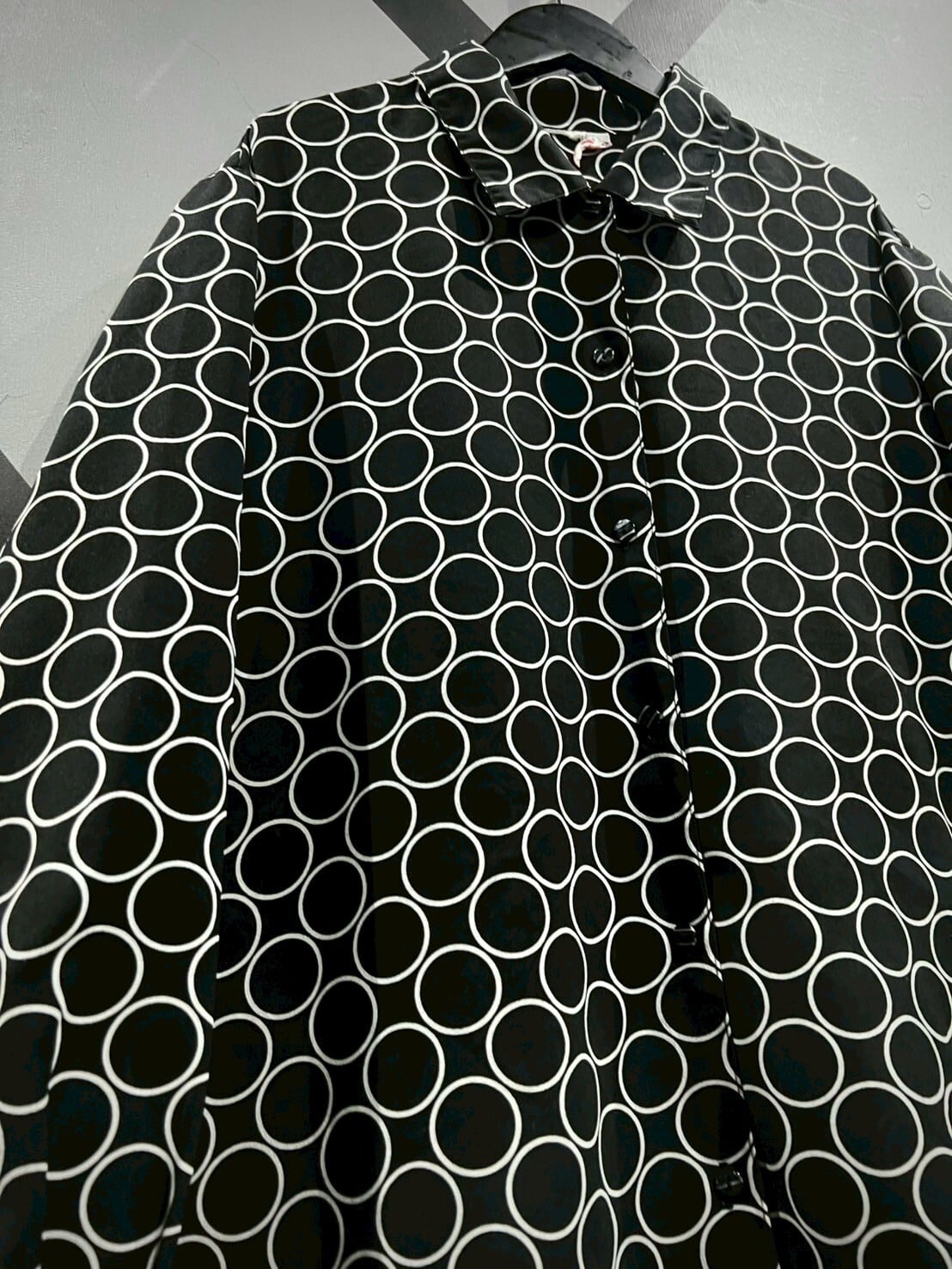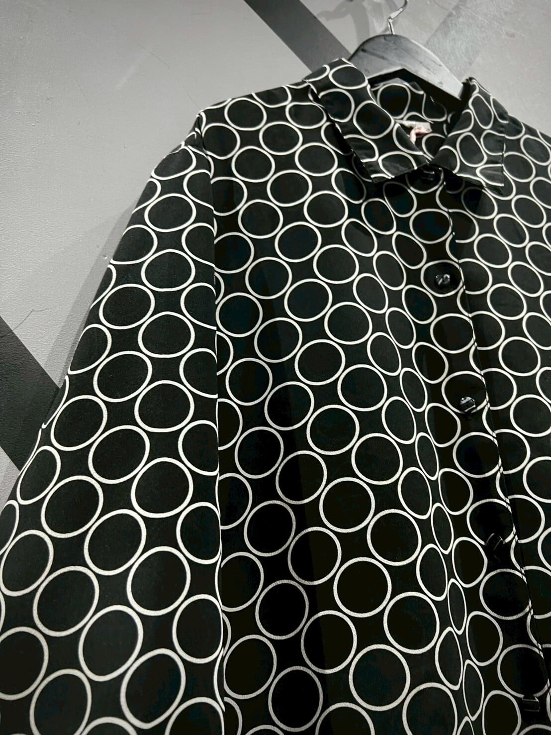 ライトな質感のシャツ生地にモノトーンでリングパターンを載せたシアーシャツ。