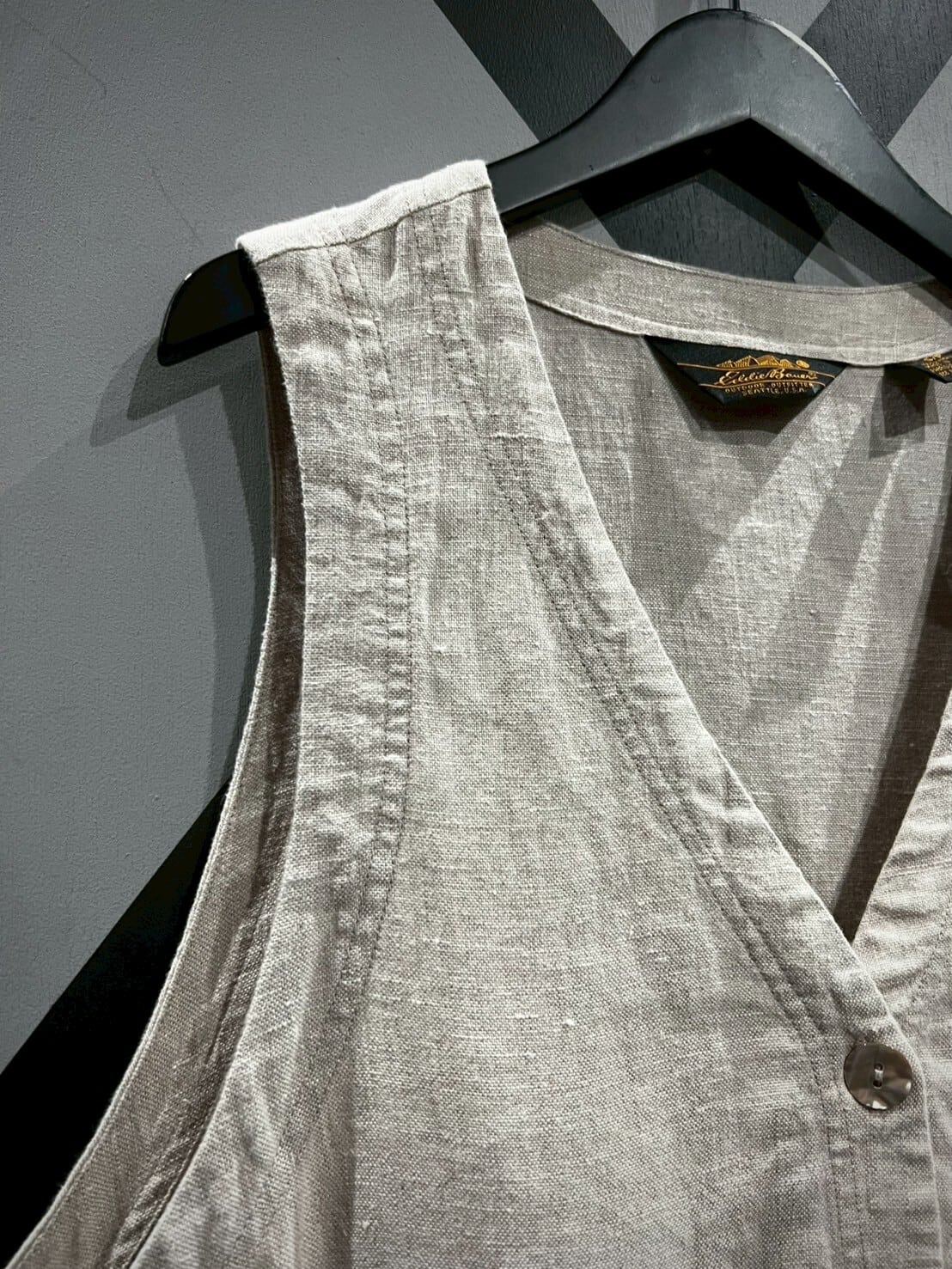 “Eddie Bauer”より、機能性、ファッション性を併せ持った上質なリネンベストの逸品です。