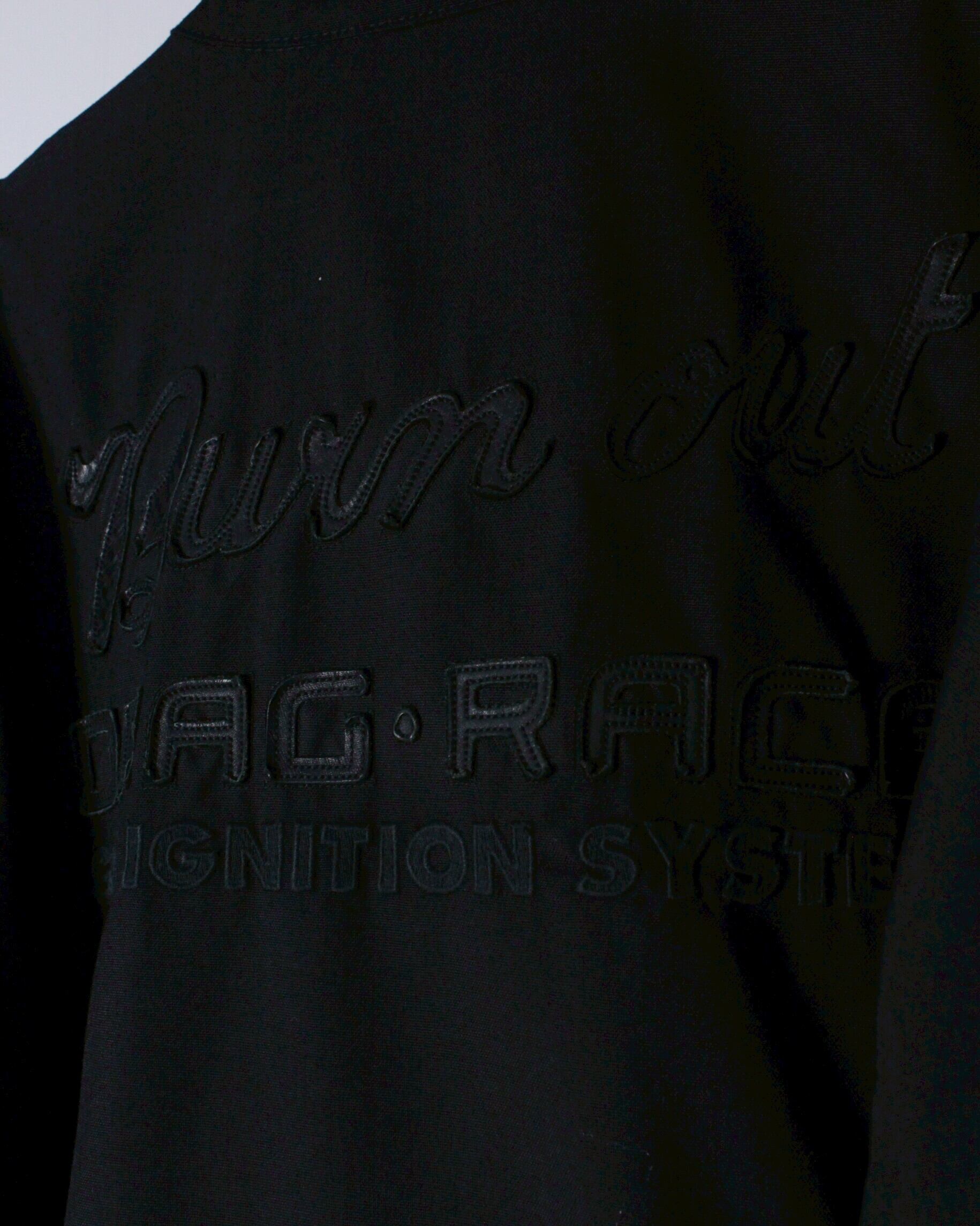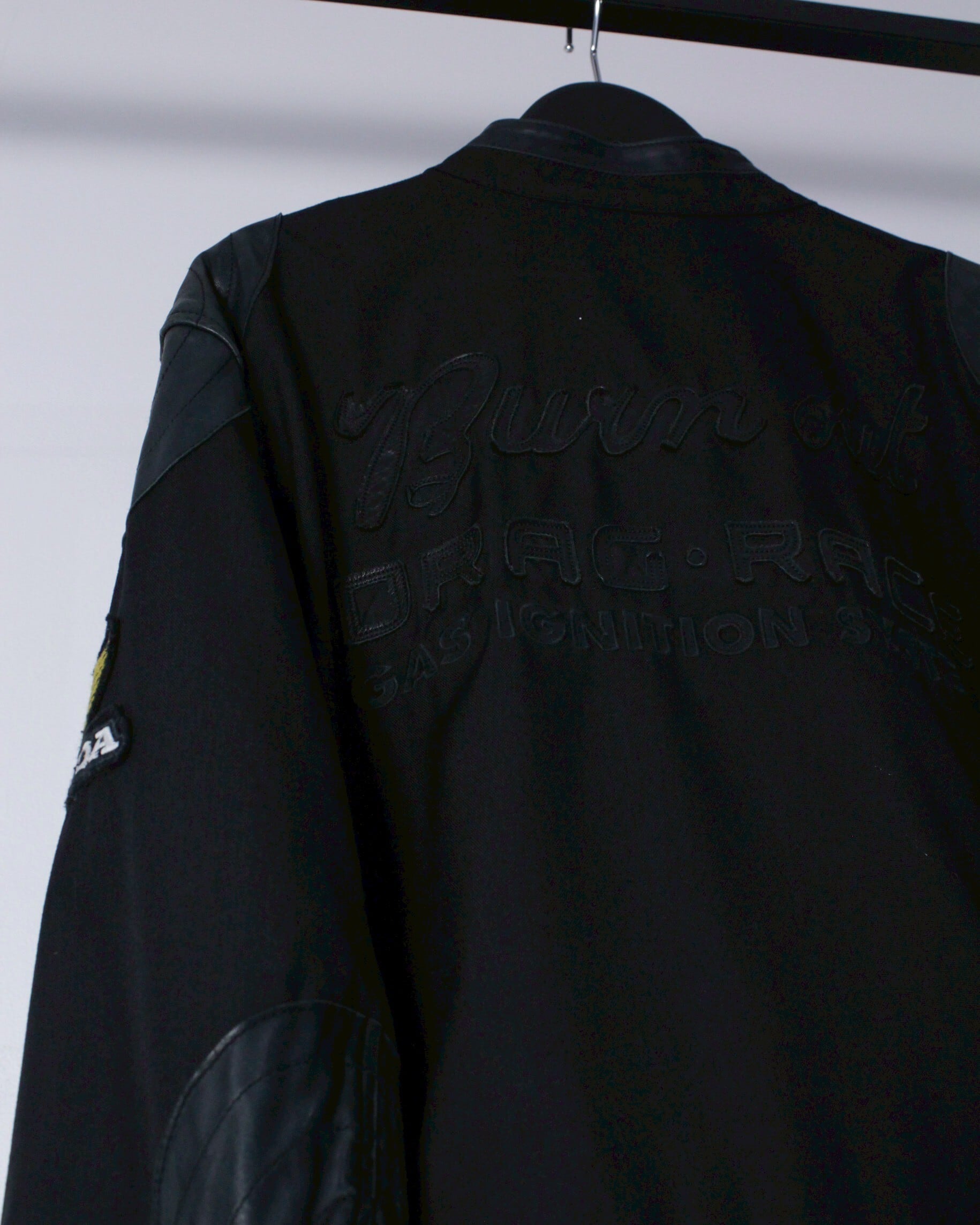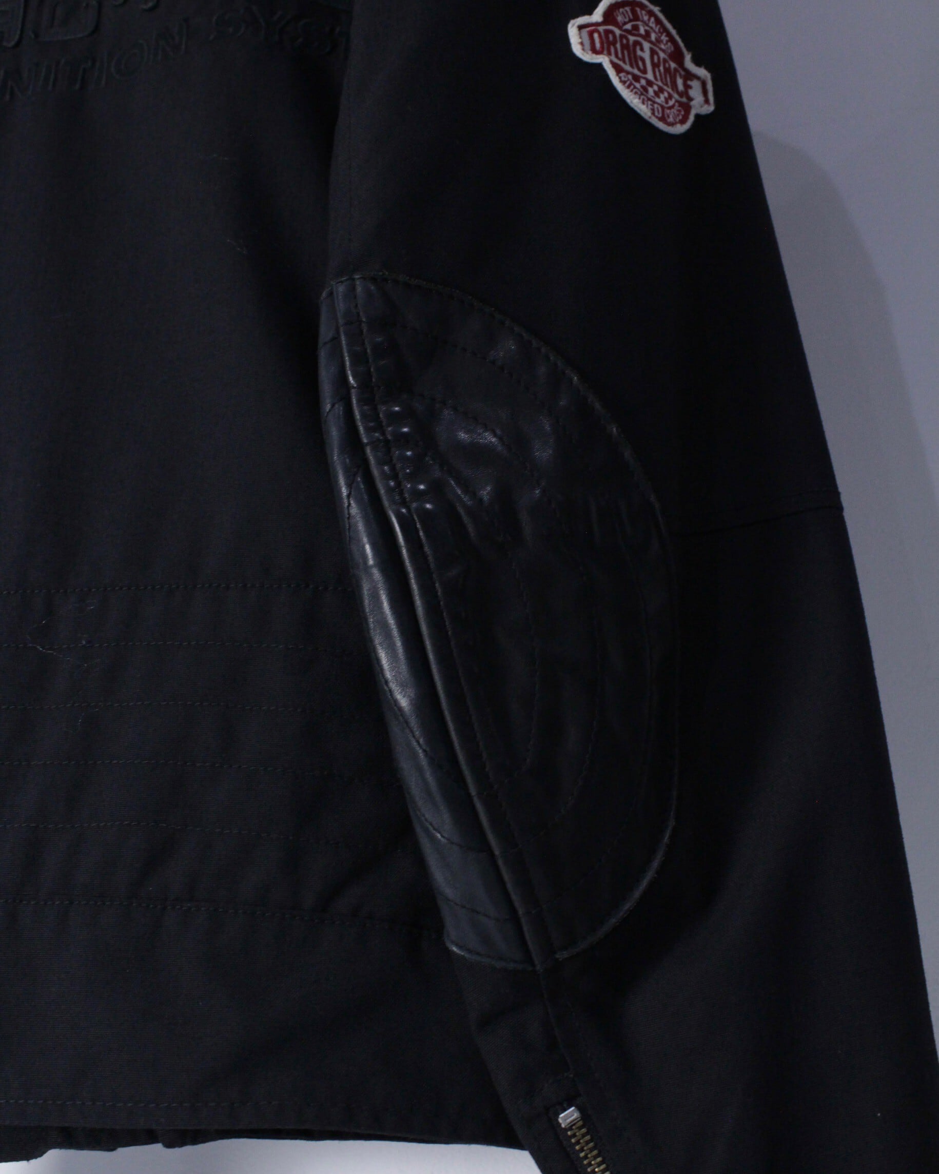 ブラックのナイロンボディをベースに、レーシングならではのギミックを盛り込んだ1着。