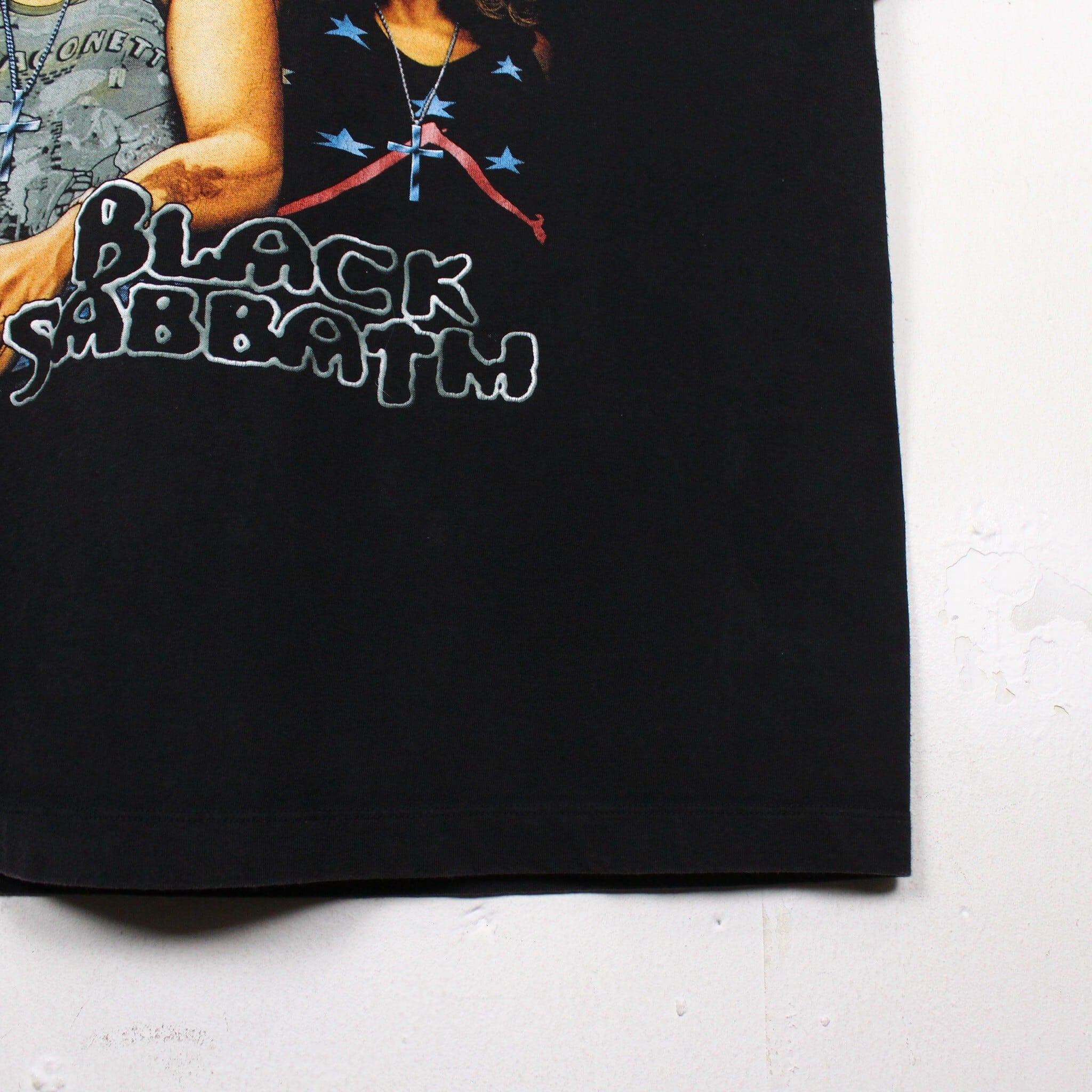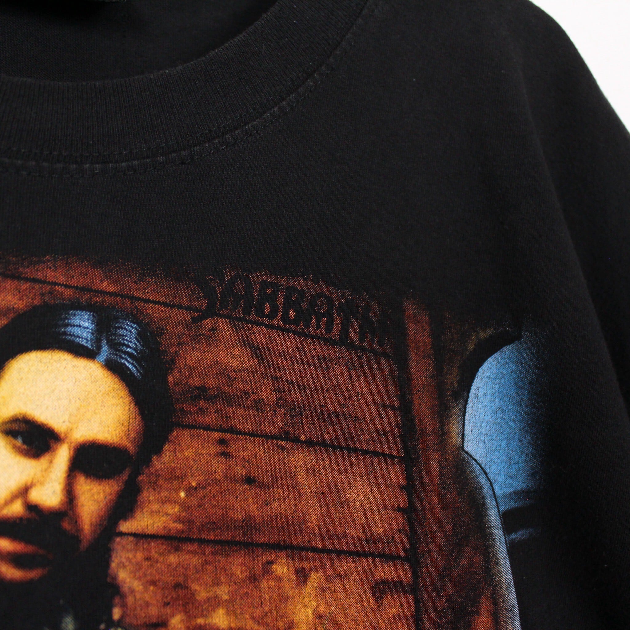 ブラックサバスの70年代当時のオリジナルメンバーのアー写が、フロントに色鮮やかに描かれた1着。