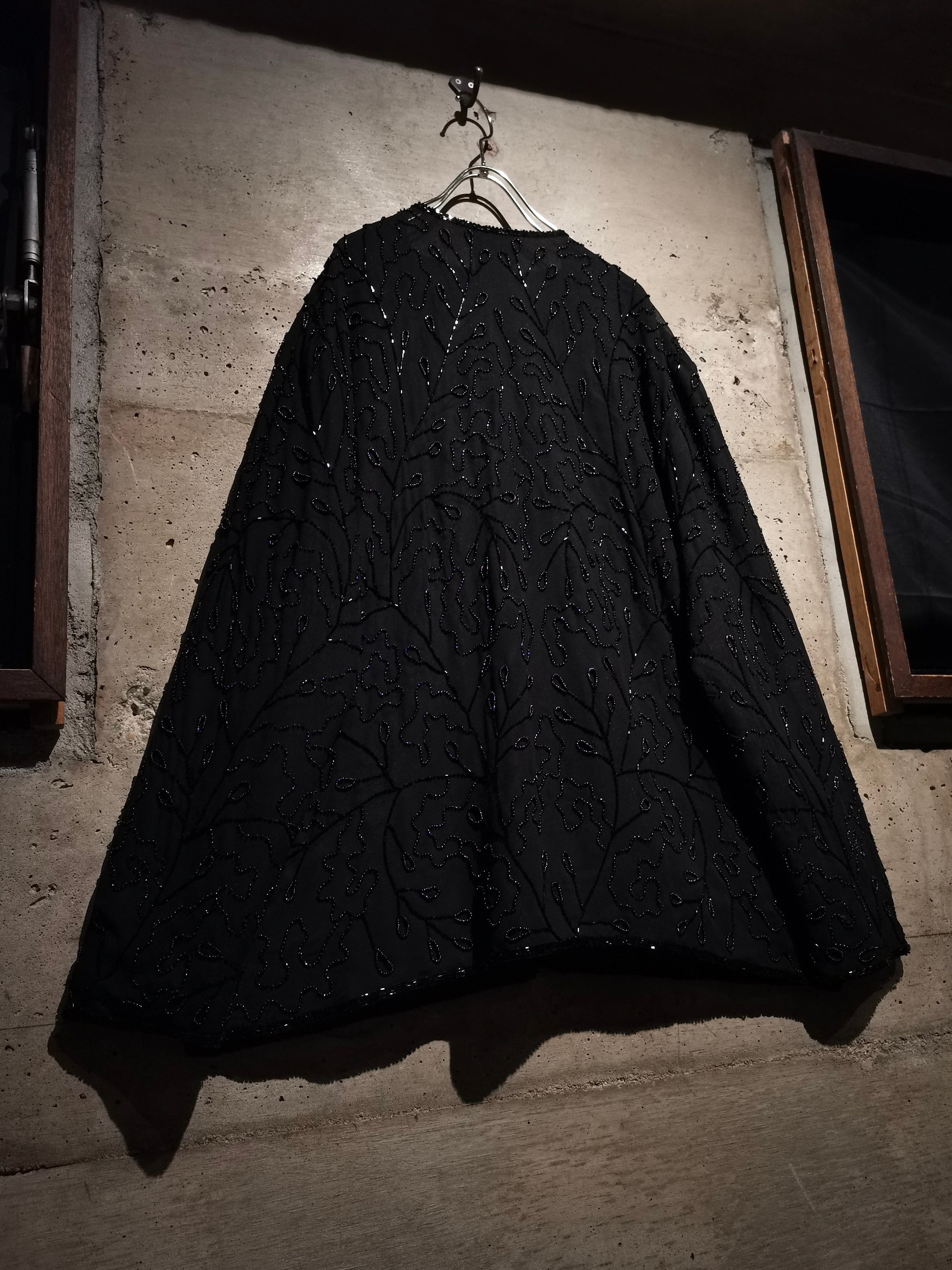 繊細なビーズ刺繍が魅せる表情が非常に美しいノーカラージャケット。ファッション的な目線で見ても素晴らしく、モードかつ唯一無二感を纏った当店ならではの1着です。
