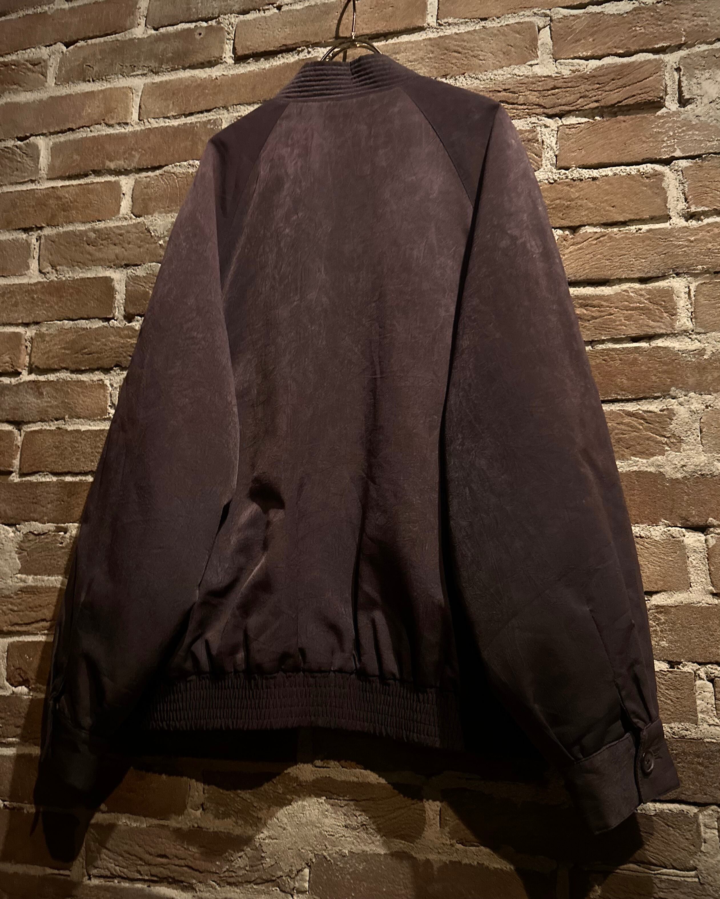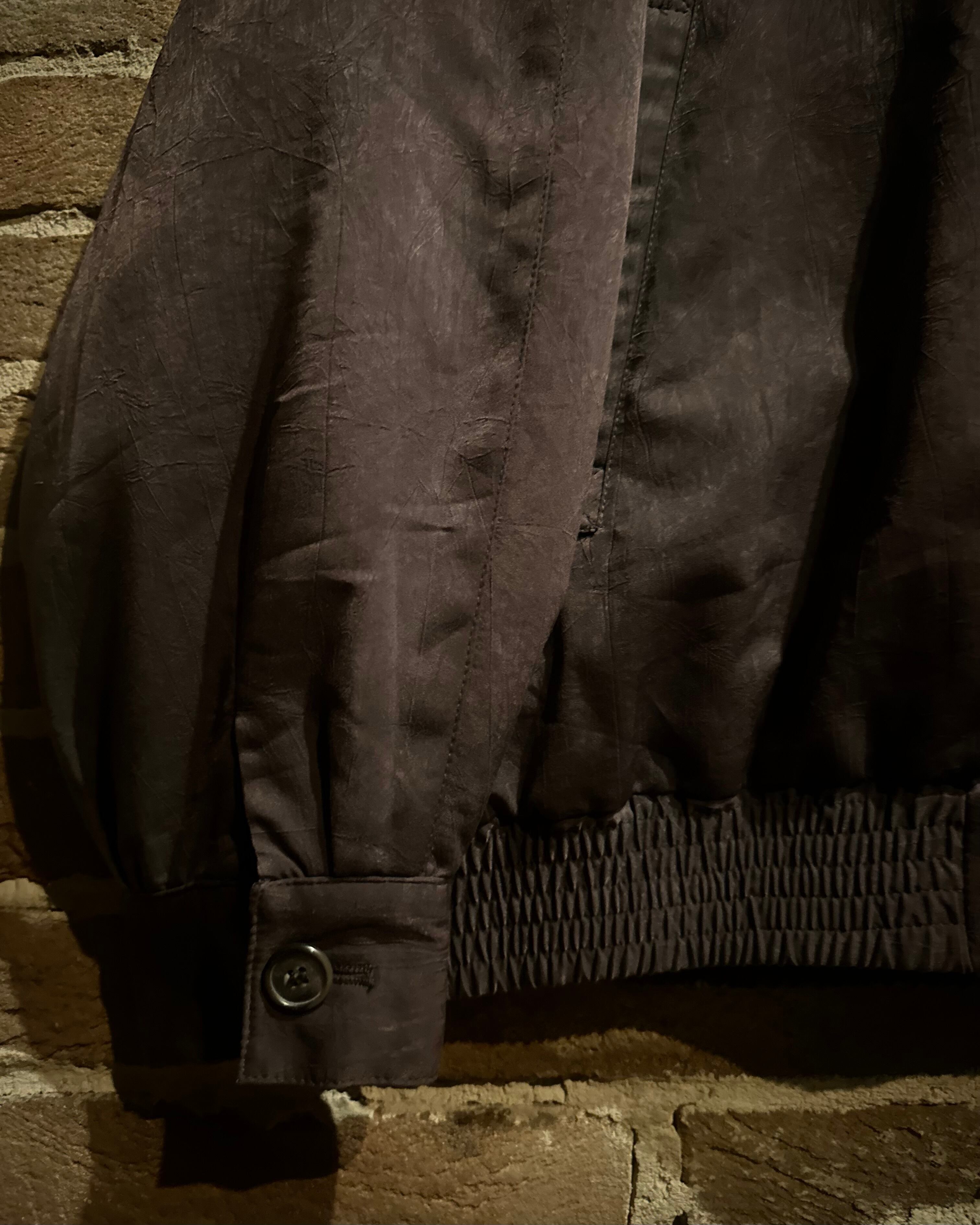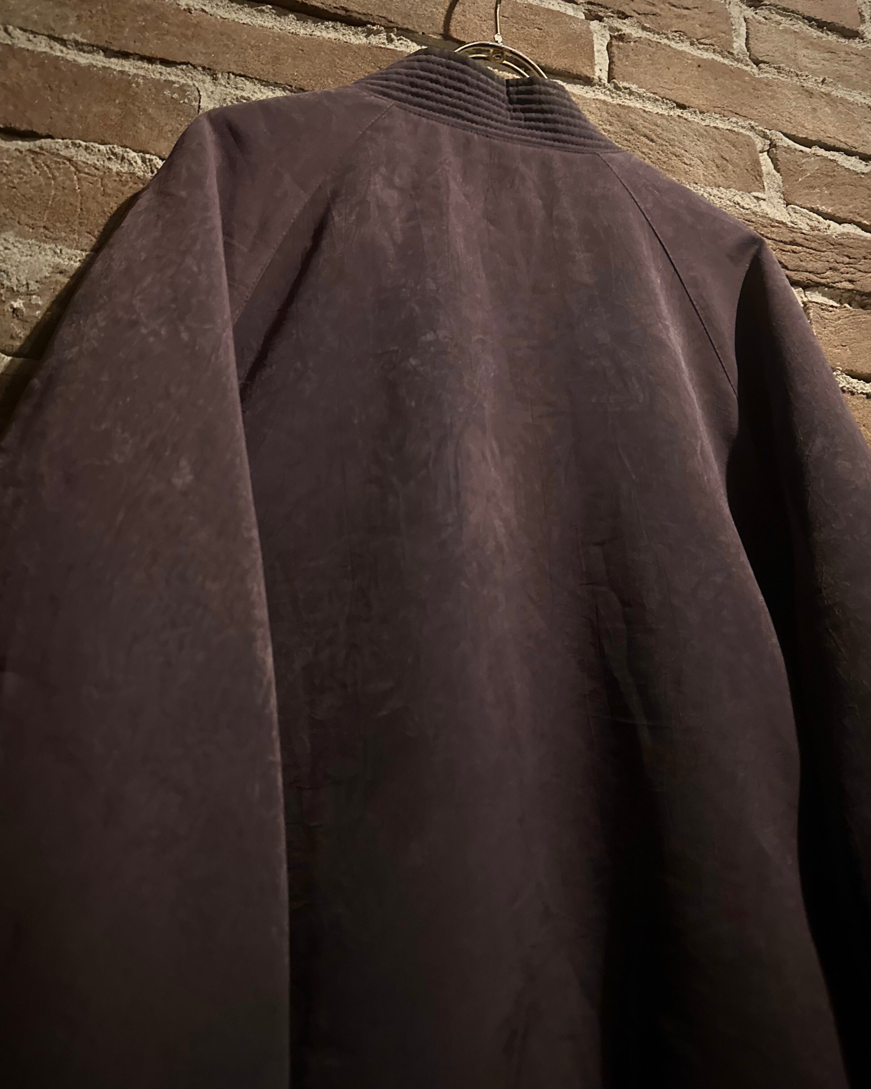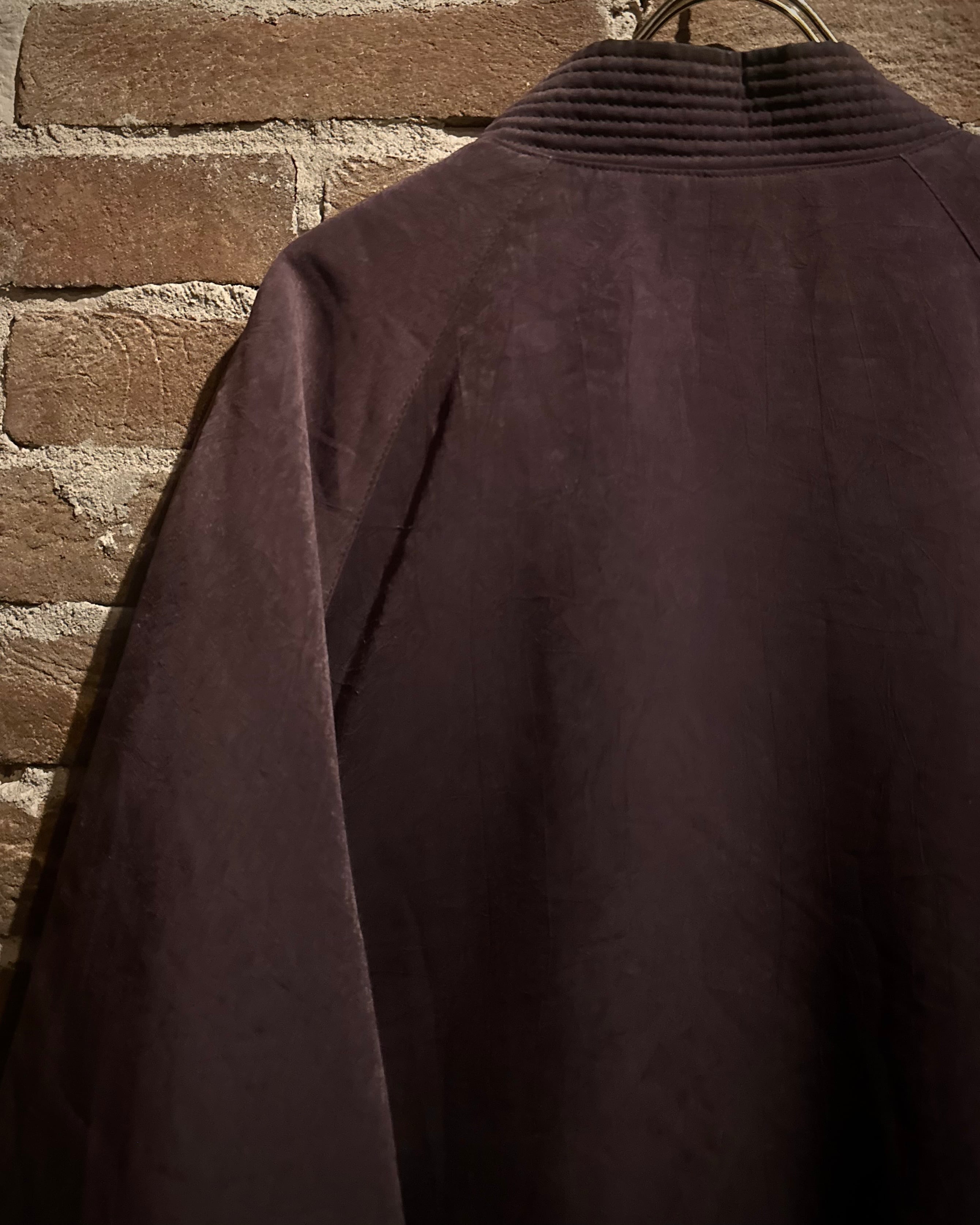 鈍い光沢を帯びたバーガンディーカラーのファブリックをボディに使用したユーロヴィンテージのブルゾンジャケット。