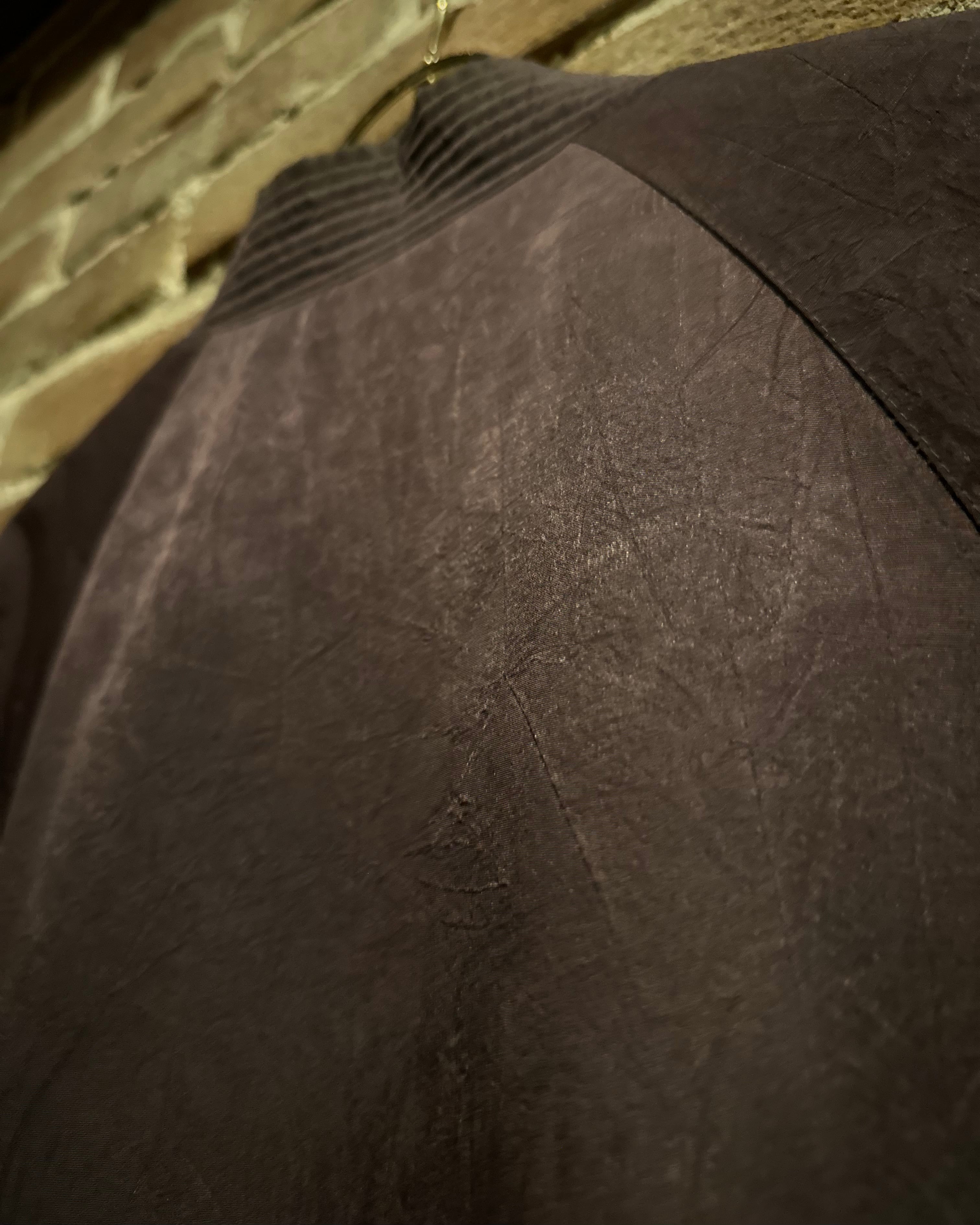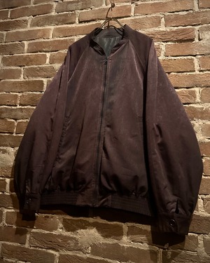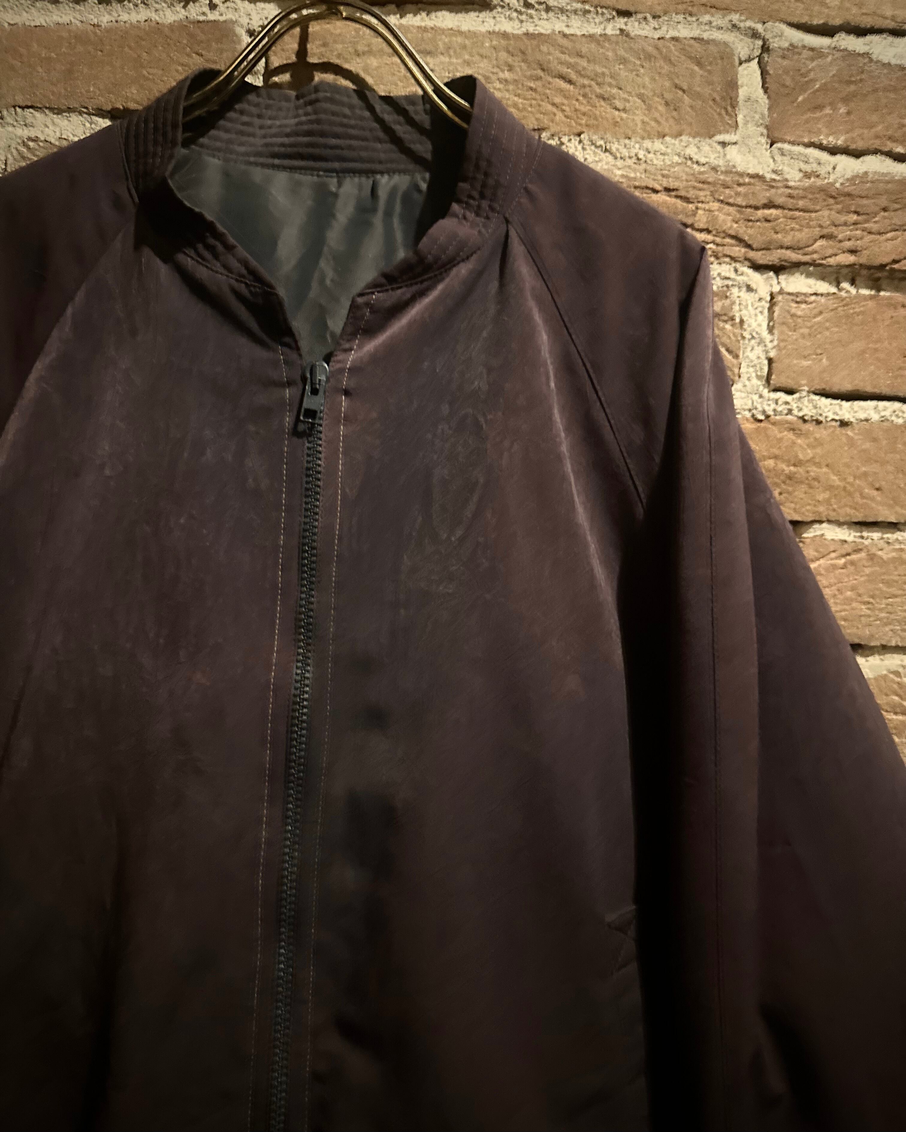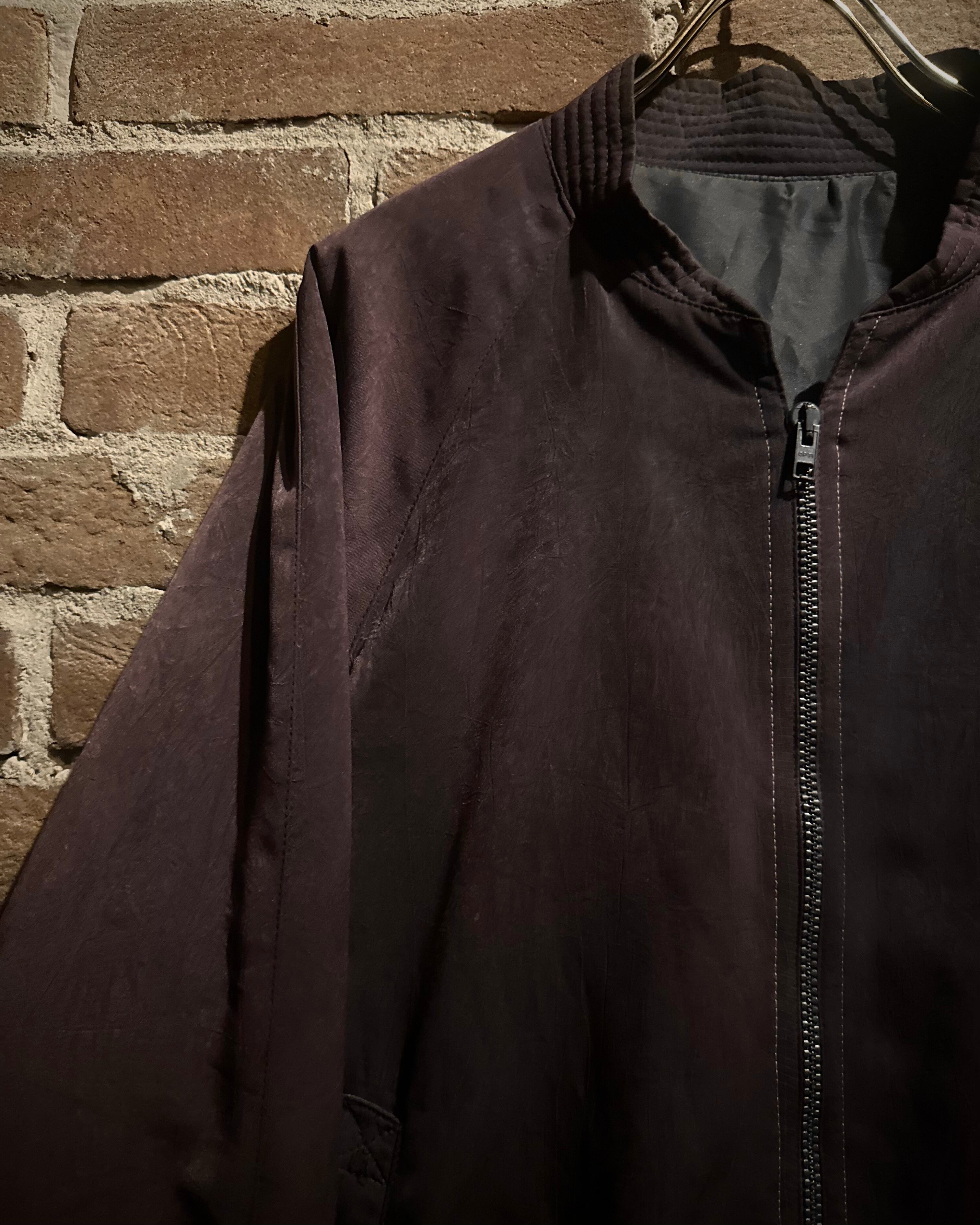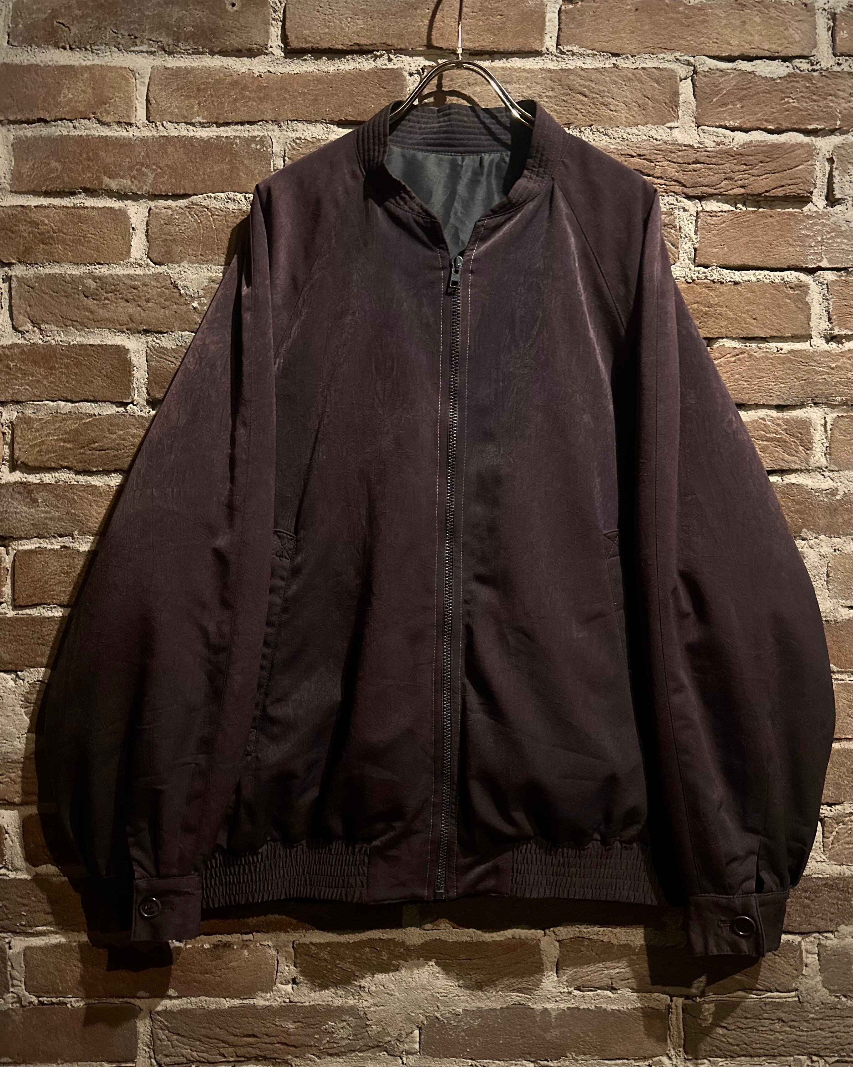 鈍い光沢を帯びたバーガンディーカラーのファブリックをボディに使用したユーロヴィンテージのブルゾンジャケット。