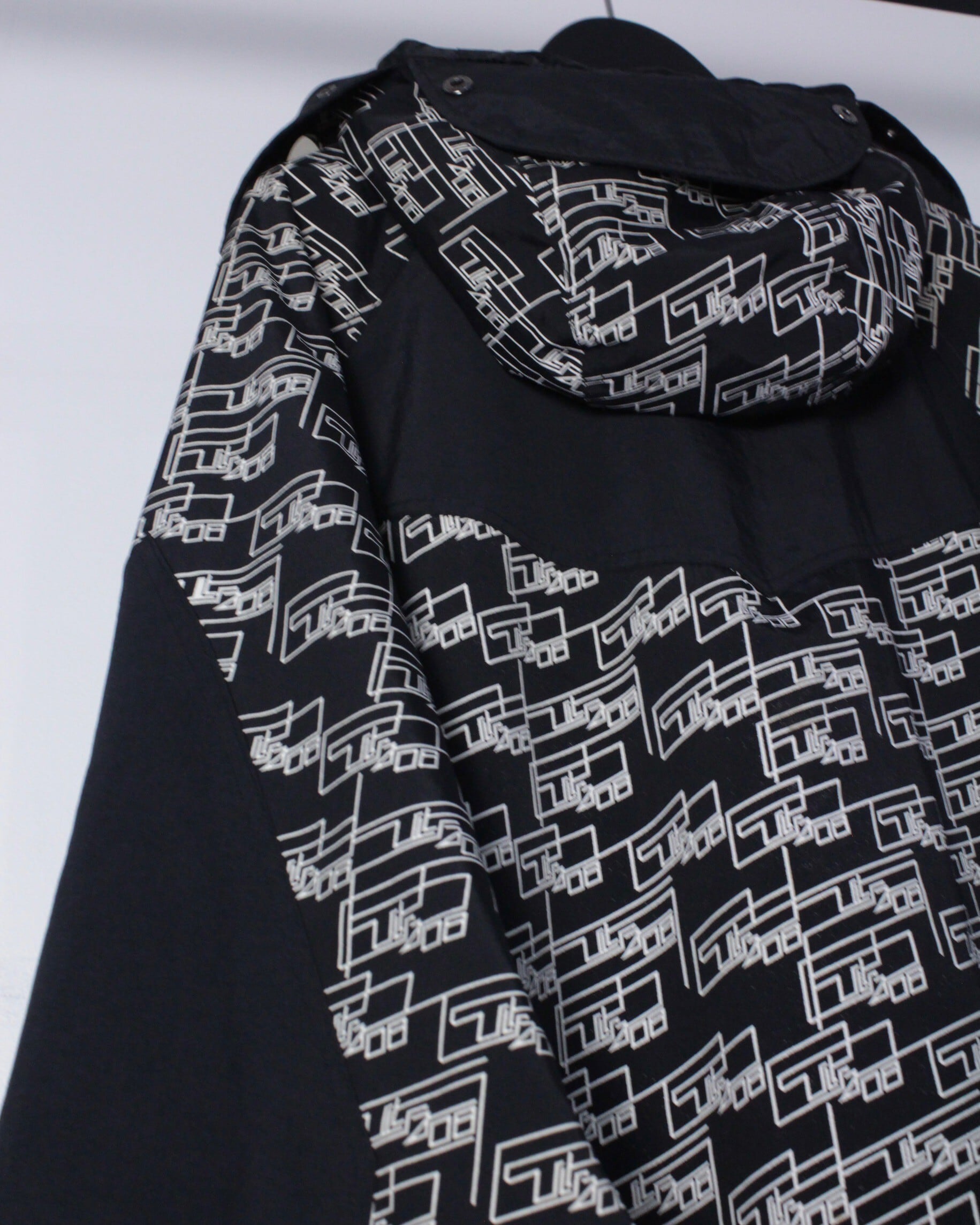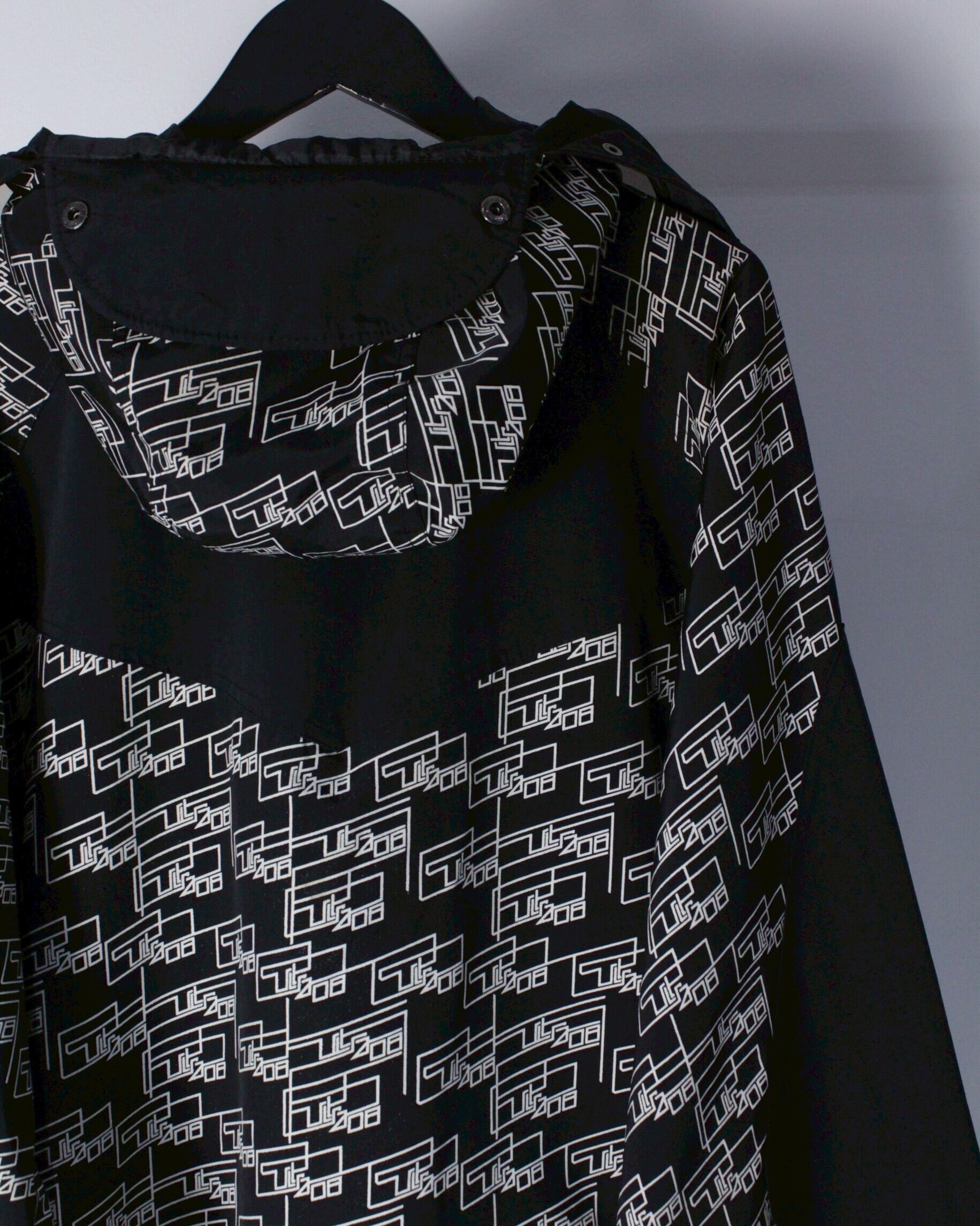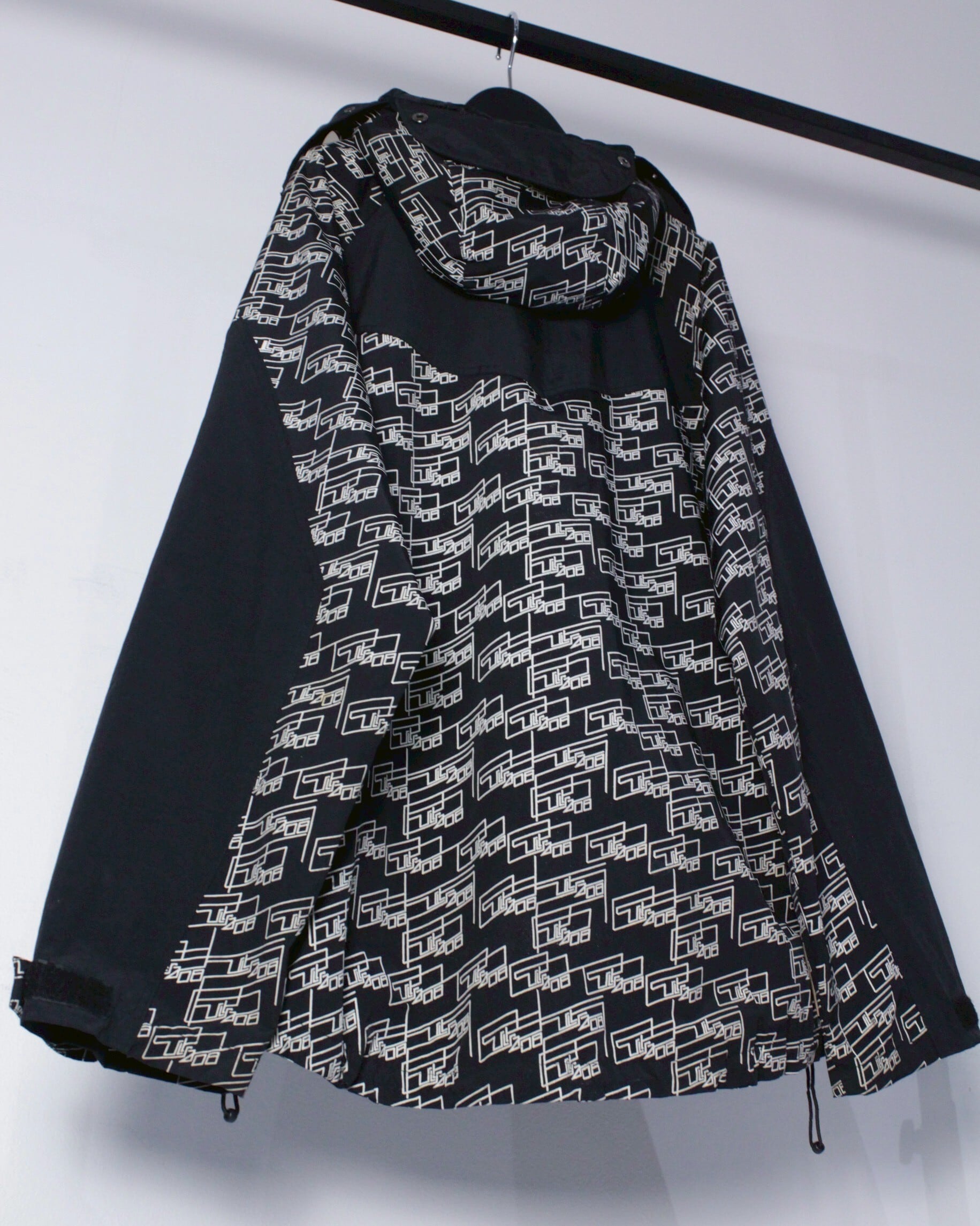 サラッとした素材をベースに、ブランドのモノグラムを施したボディをベースにブラックの切り替えを施したギアジャケット。