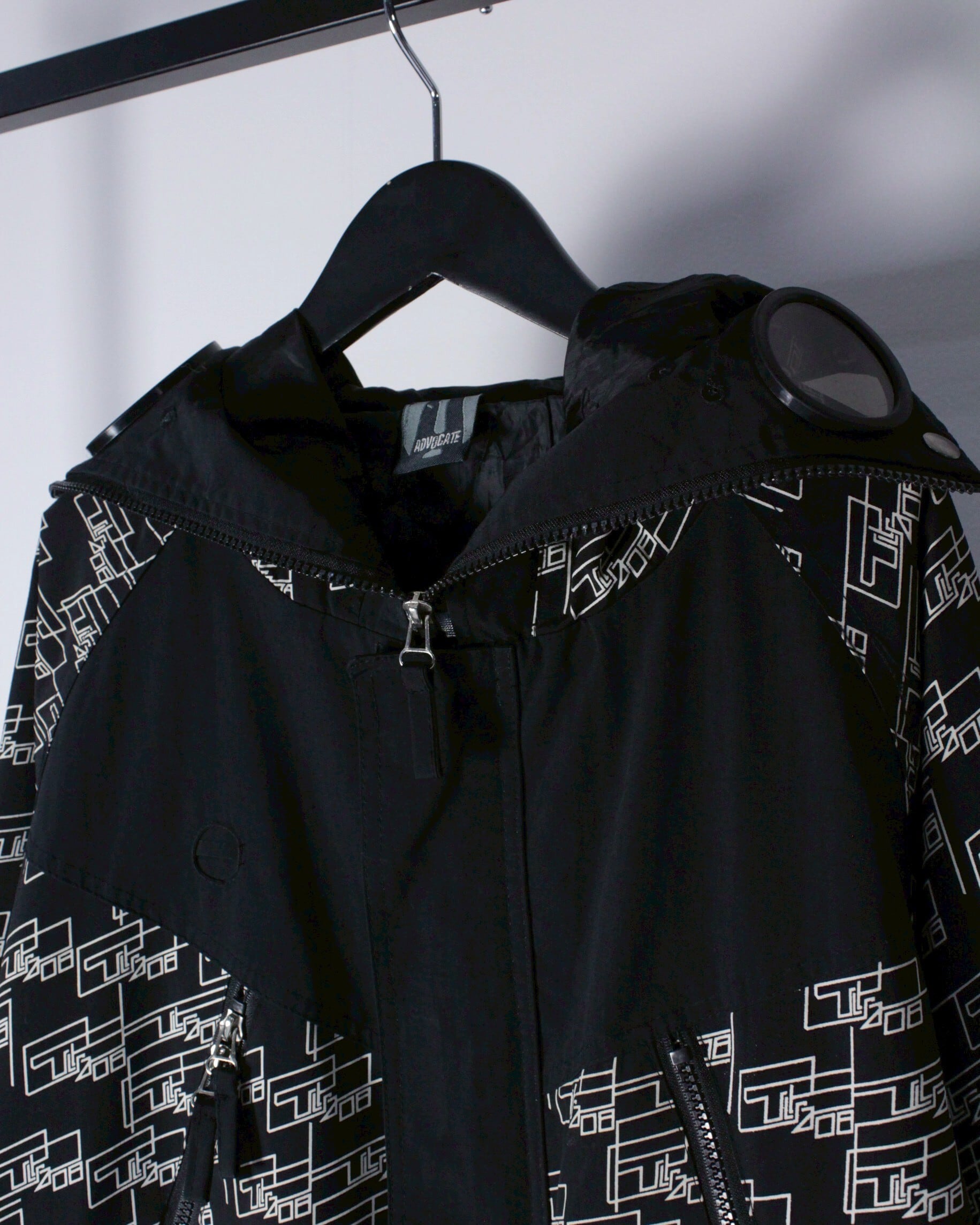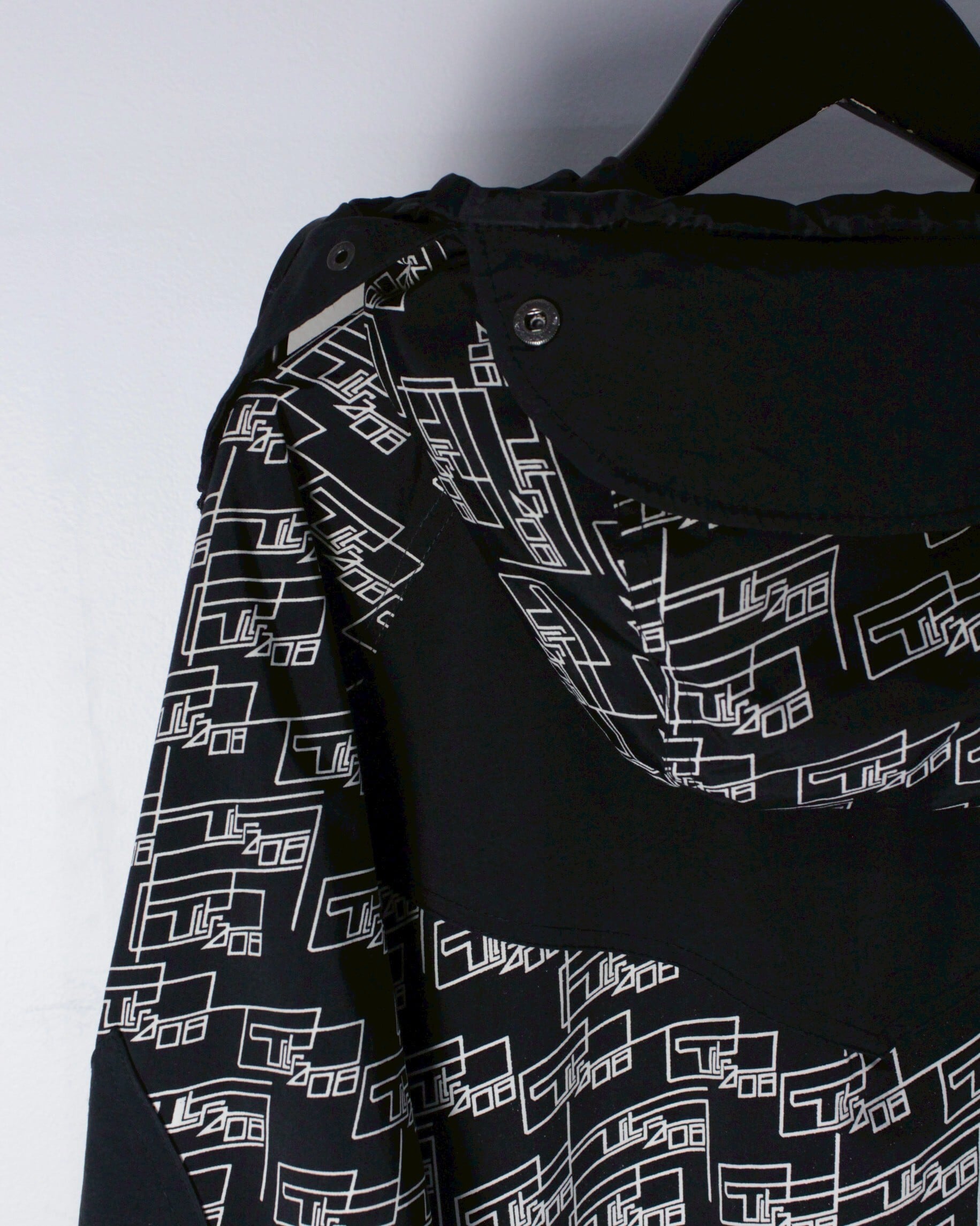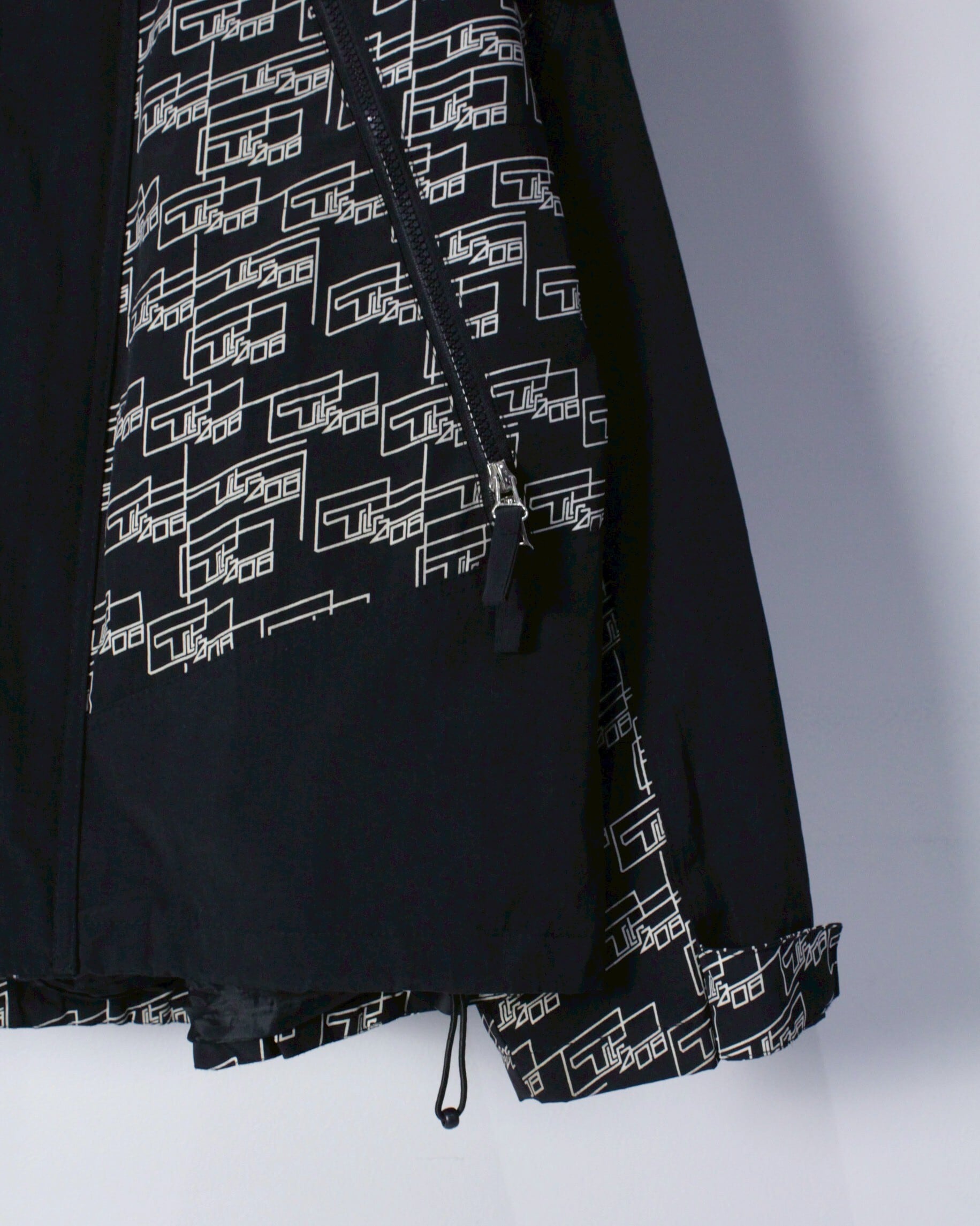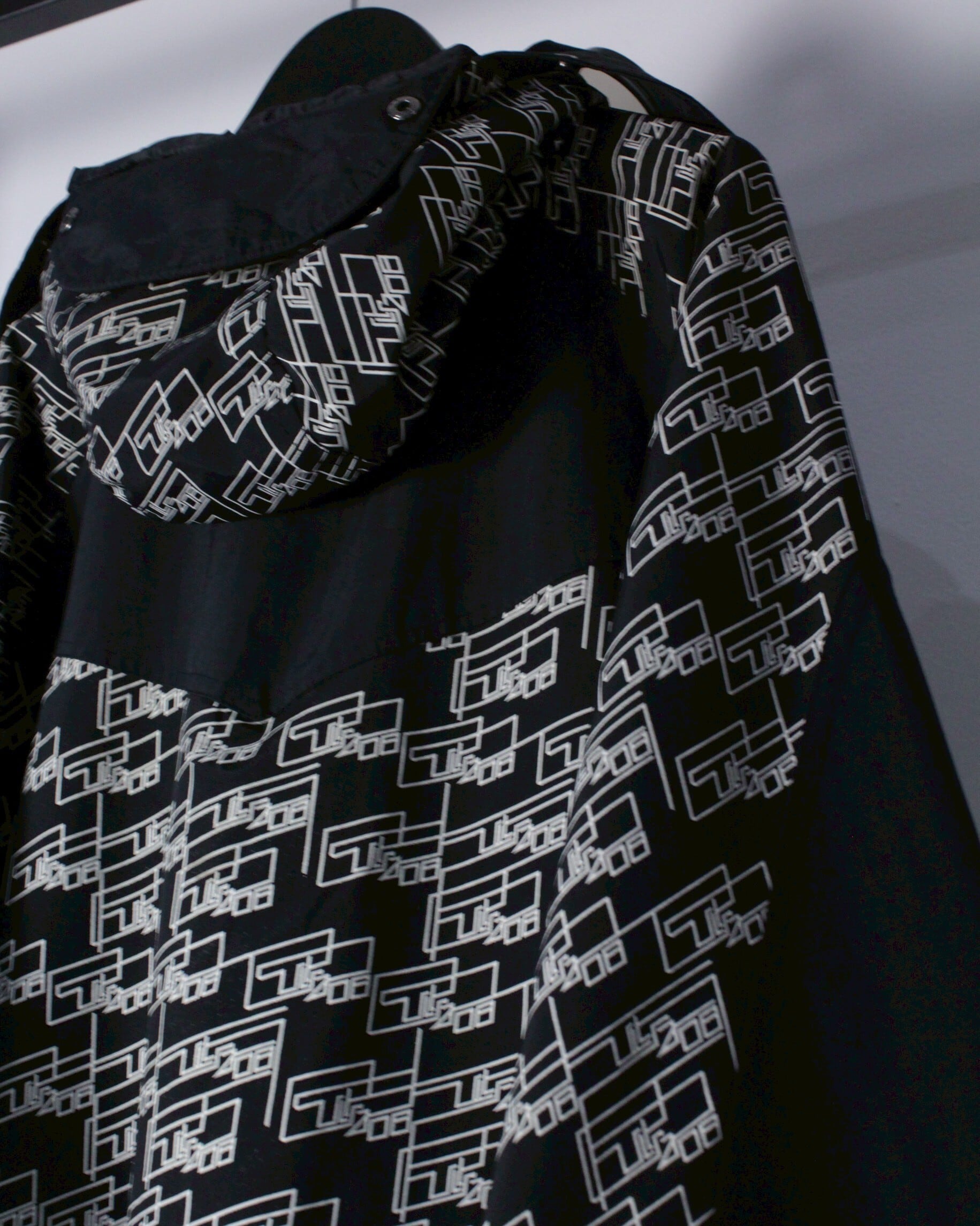 サラッとした素材をベースに、ブランドのモノグラムを施したボディをベースにブラックの切り替えを施したギアジャケット。