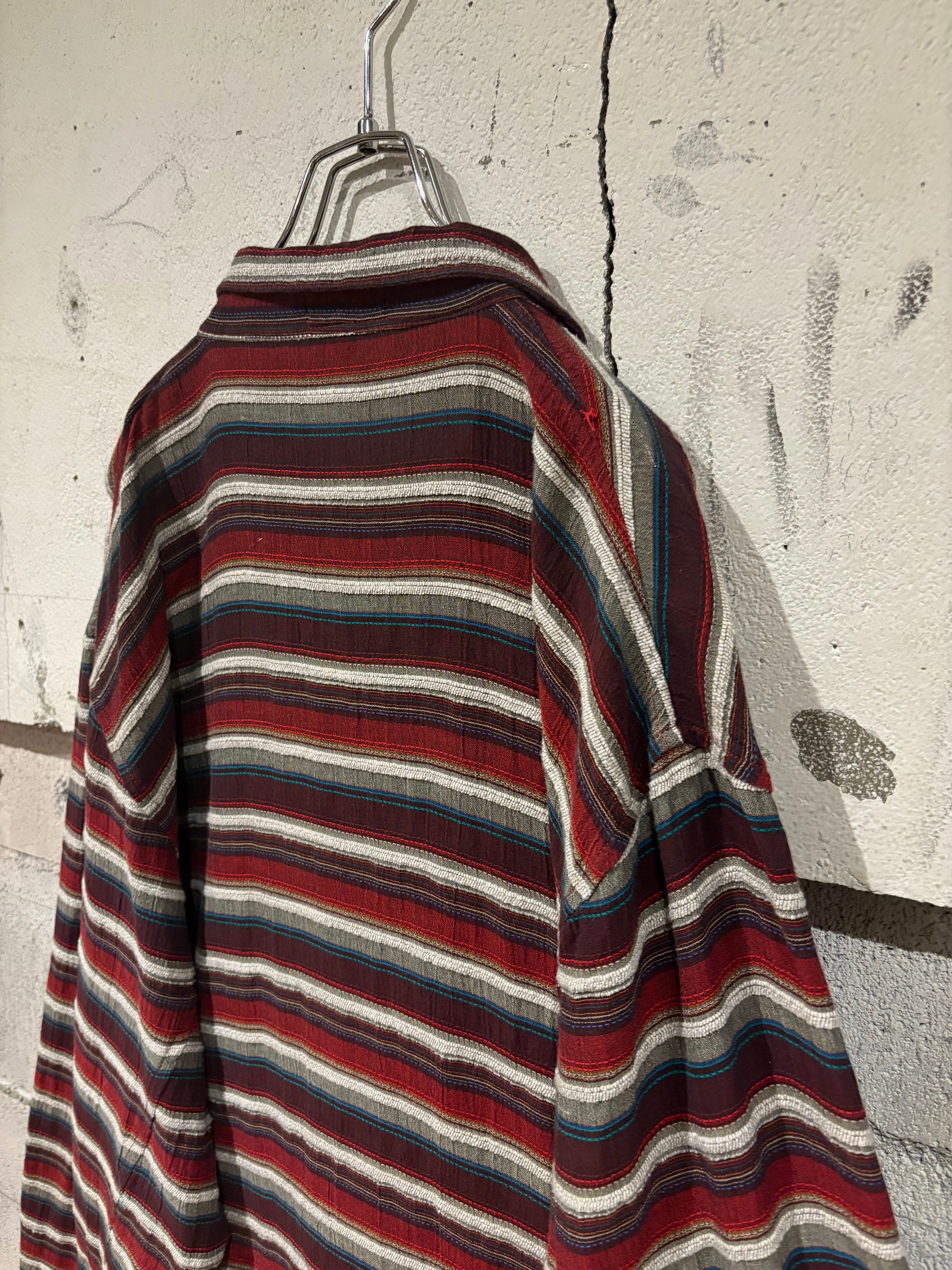 ドライな質感のコットン×リネンの混紡素材を採用し、ボディ全体にボーダーデザインを施したシャツジャケット。織りによって表現されたボーダーが立体的な表情を生み出しています。
