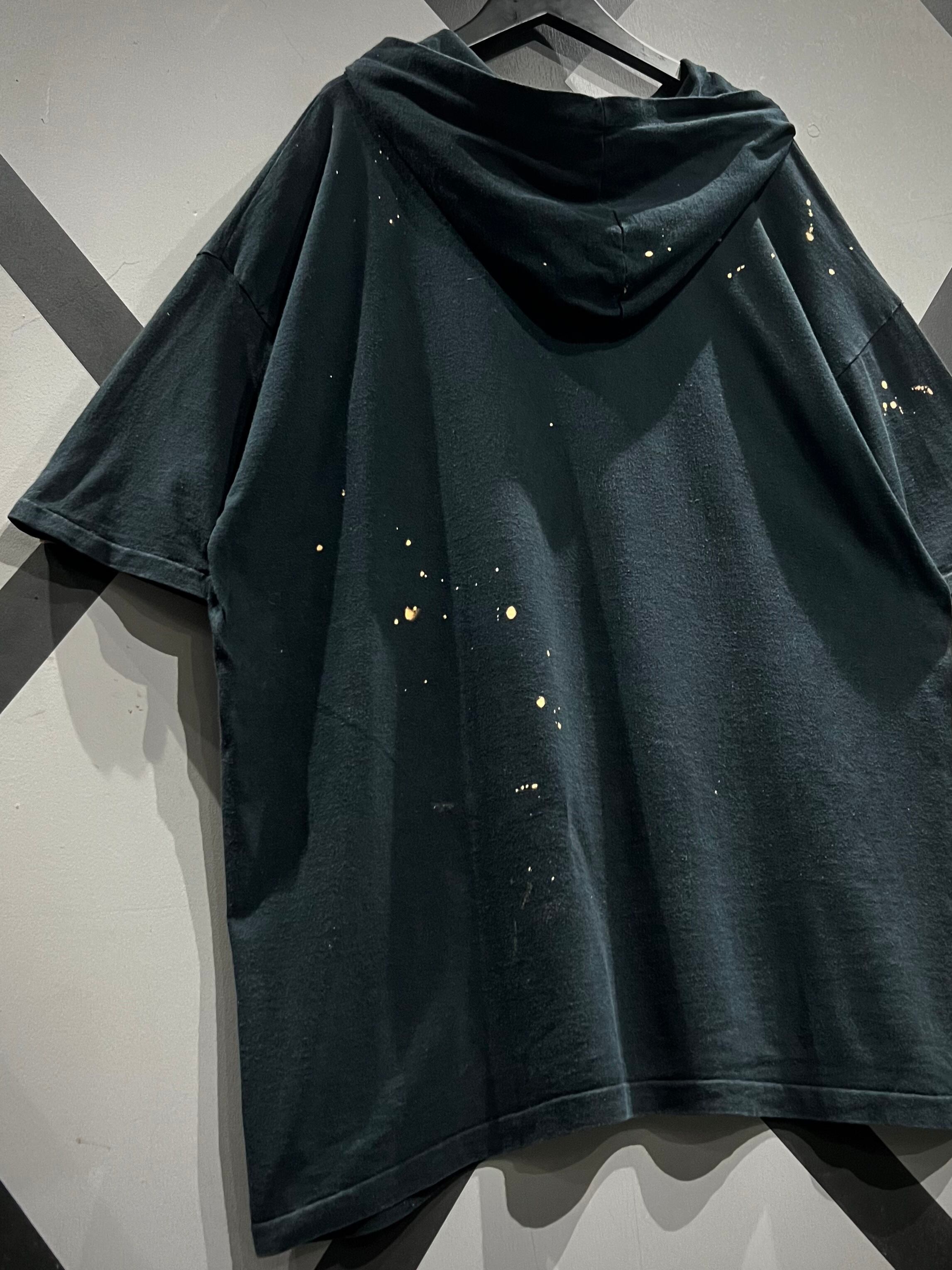 ブラックボディのフロントに、ラスタな思想を感じさせるプリントを載せた、稀有なフード付Tシャツ。
