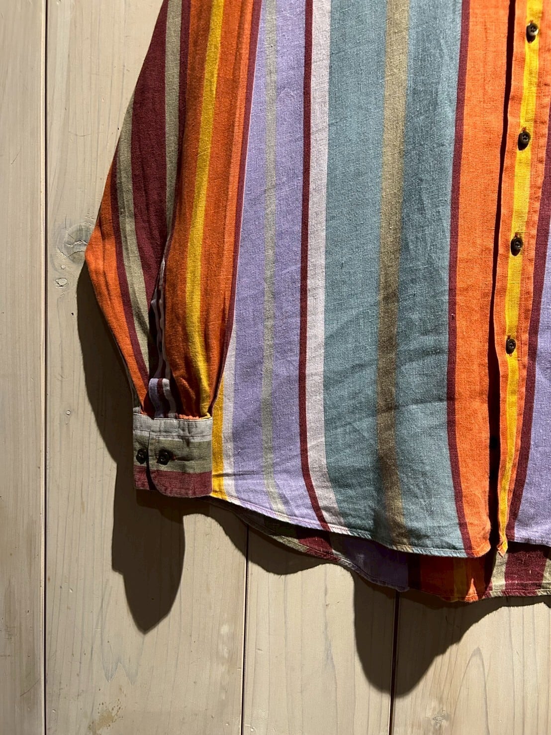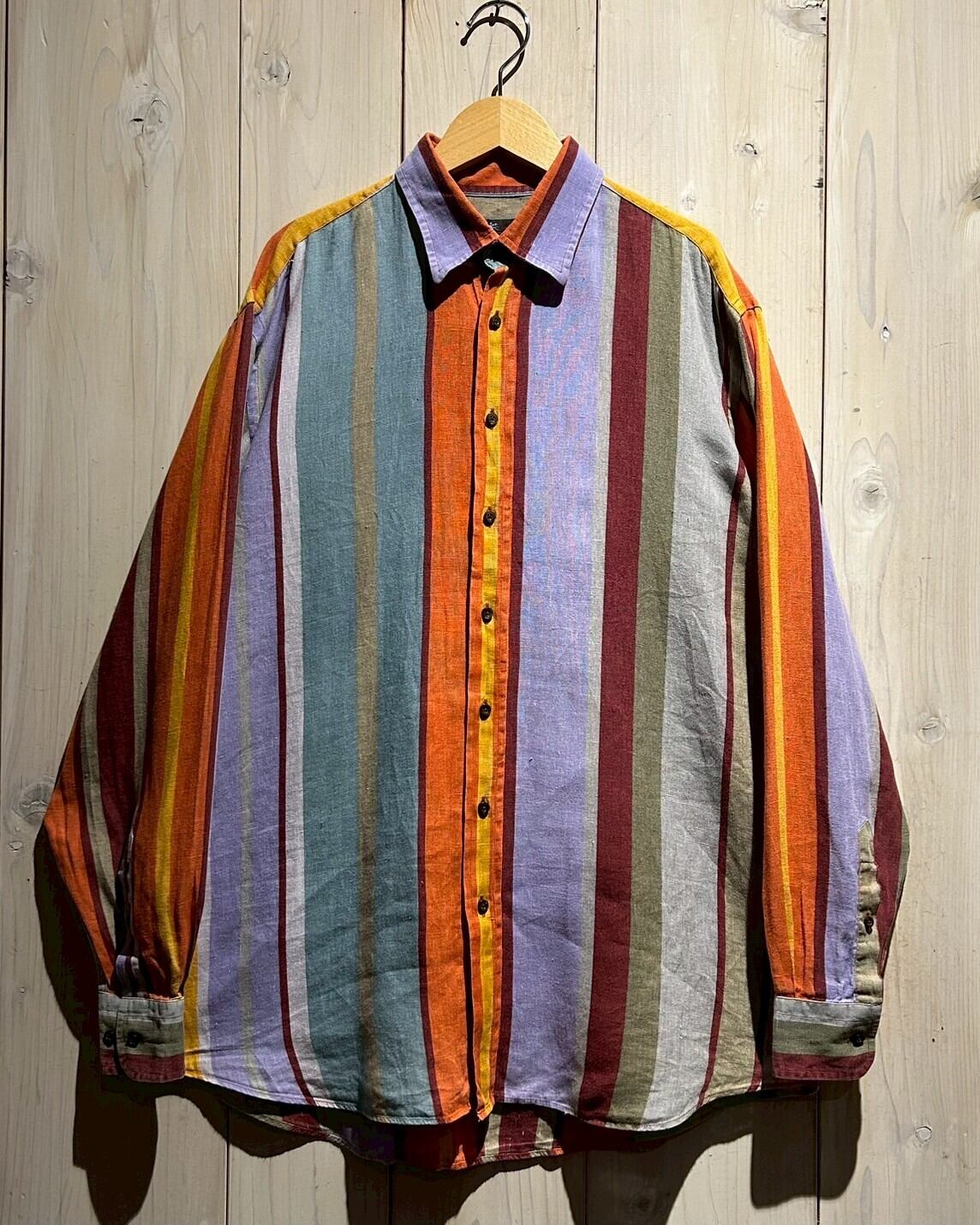 ミラノのラグジュアリーブランド"ETRO"より、上質なリネンを用いたボディに、多彩なカラーリングストライプ柄を載せた長袖シャツ。