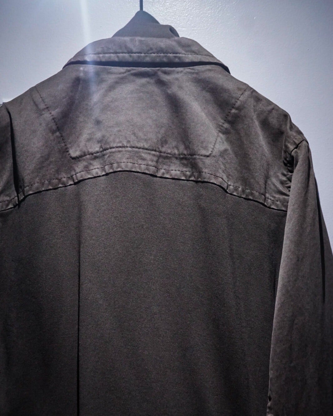 ハリとコシのあるブラウンのコットン素材をベースに、稀有なギミックが施された1着。