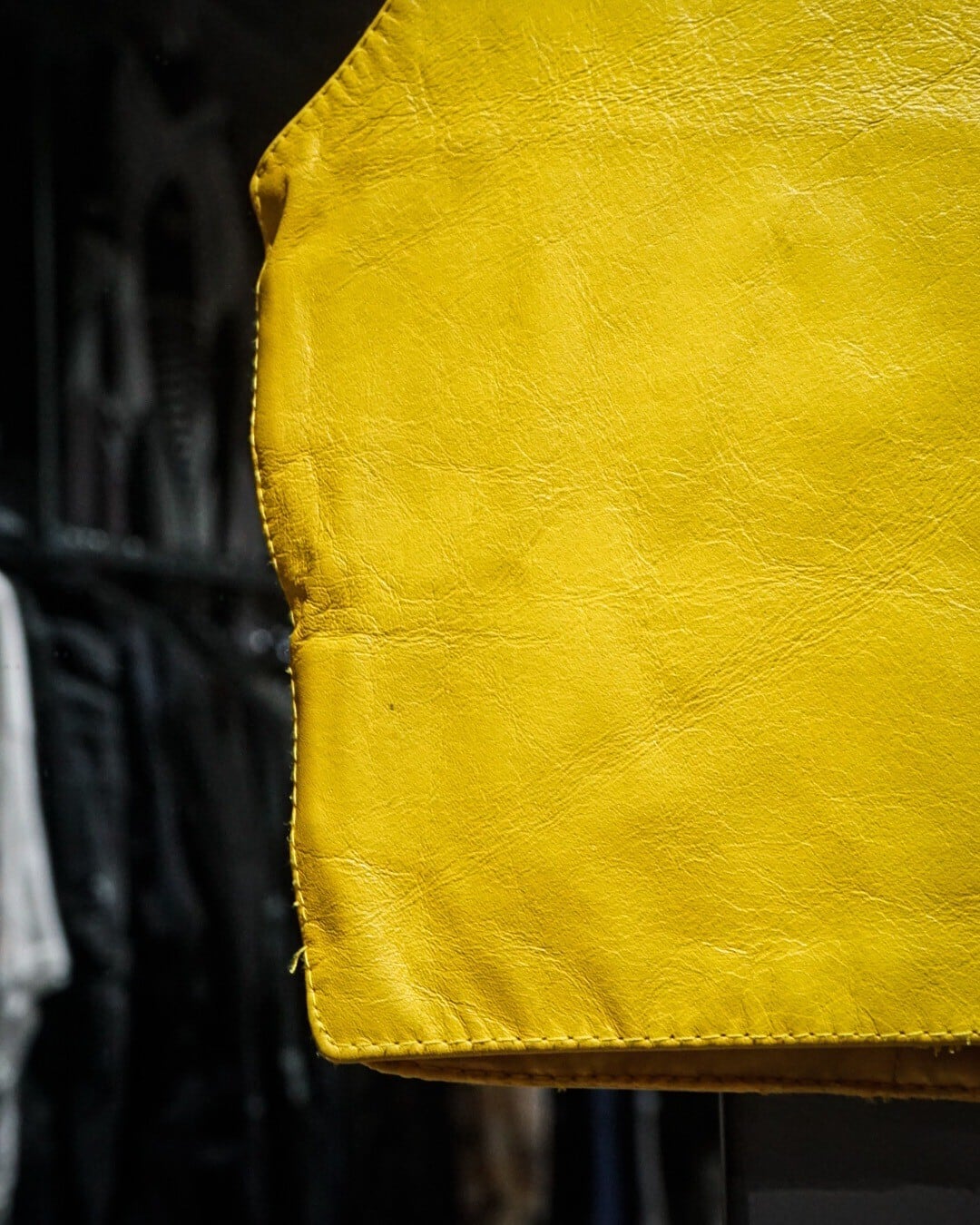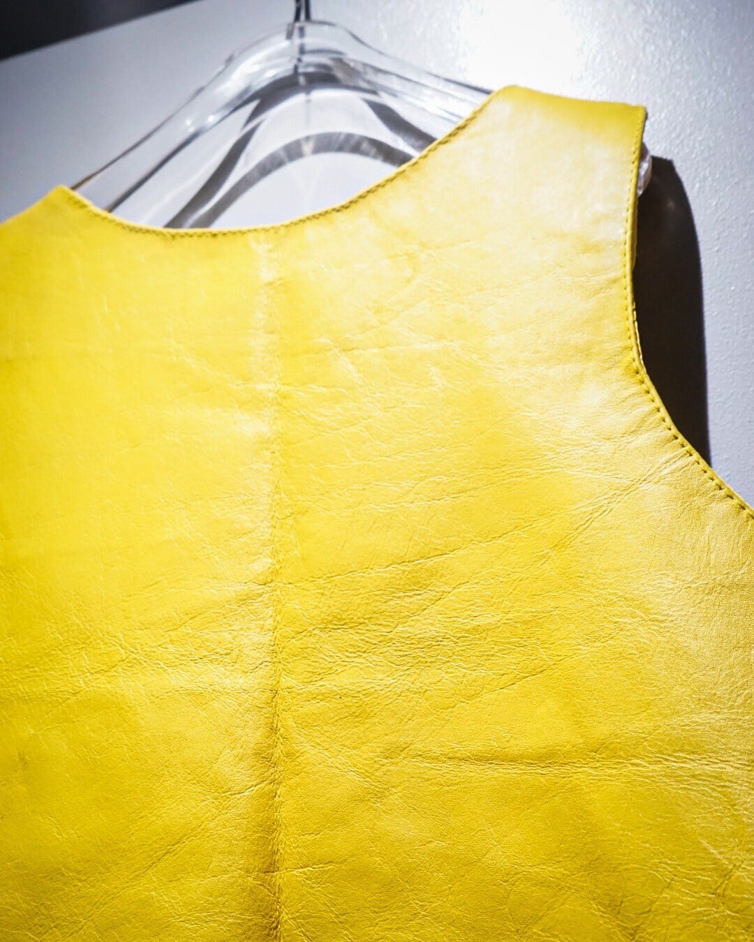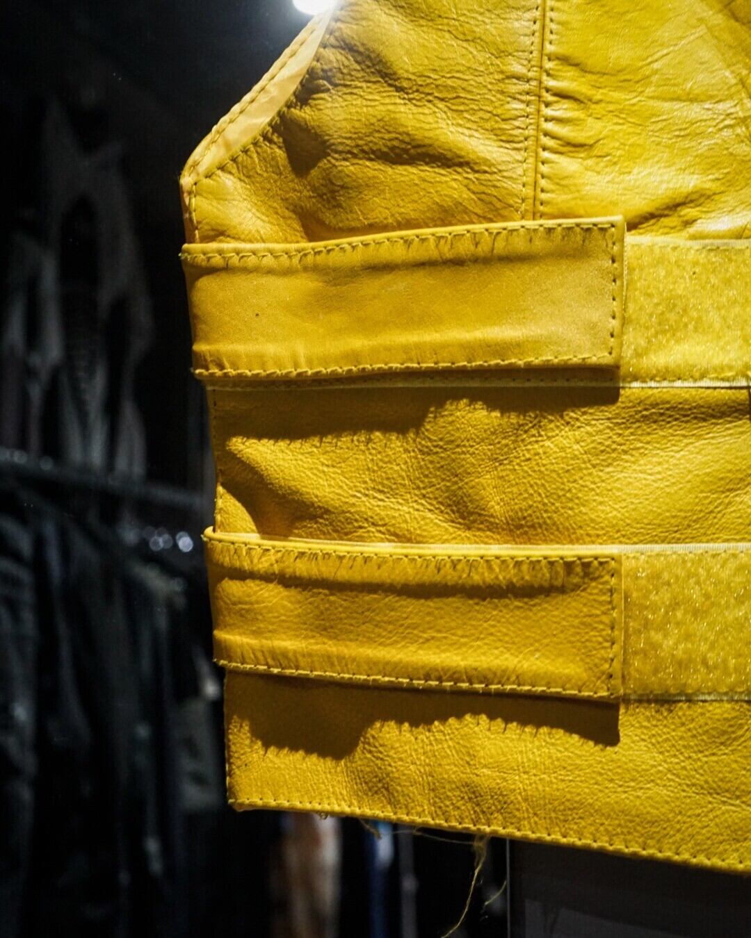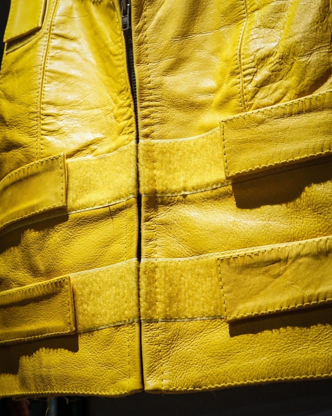 パキッとした黄色のレザーとテクニカルなギミックが相まって、洗練されたギミックながら抜群の存在感を放つ1着に。