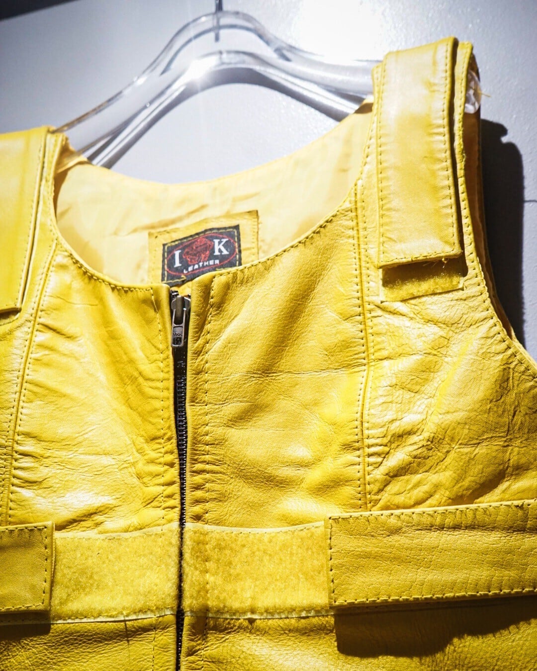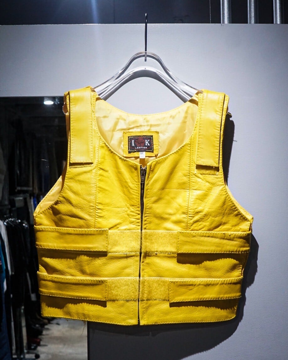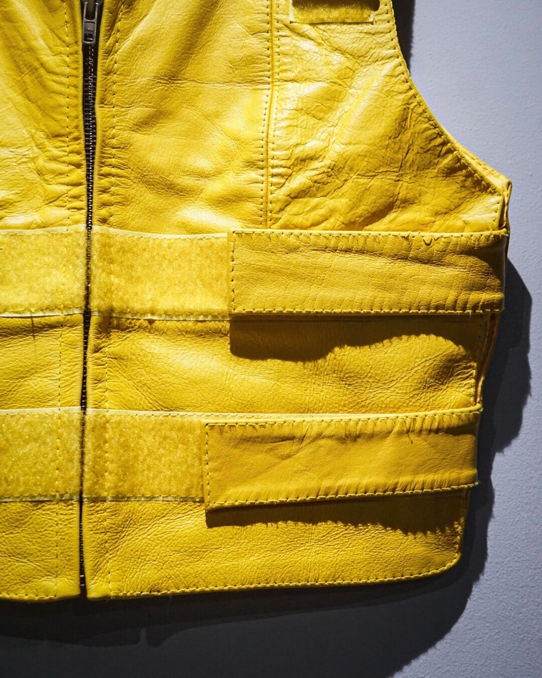 98年にヘルムートラングもサンプリングした、肩、両サイドにベルクロが施されたレザーベスト。