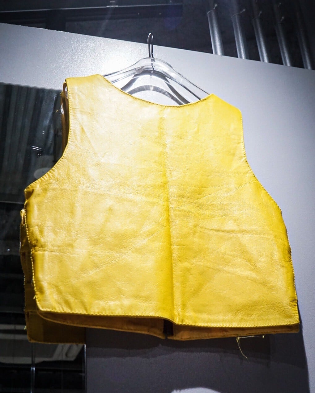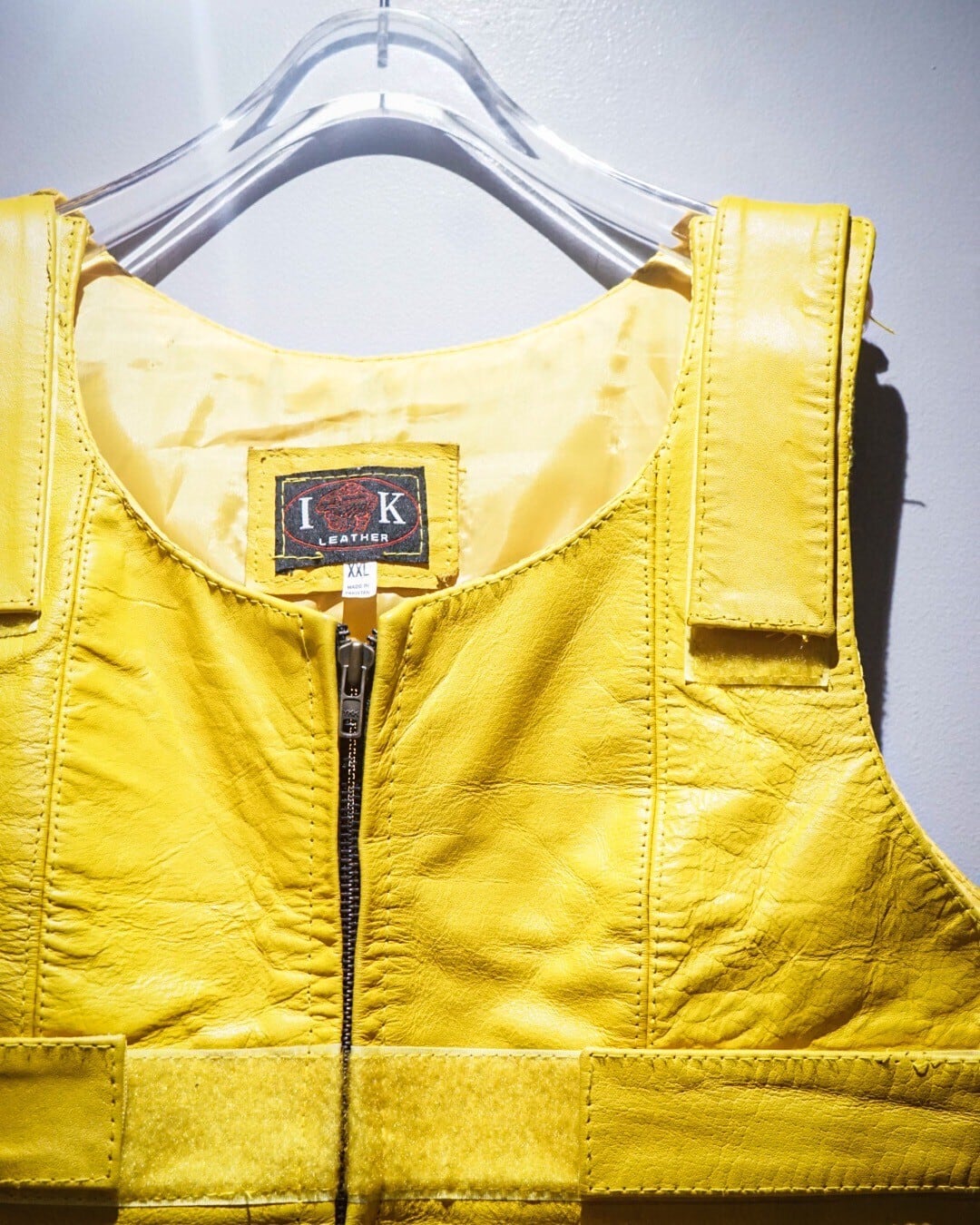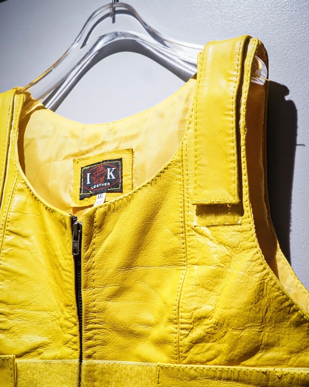 98年にヘルムートラングもサンプリングした、肩、両サイドにベルクロが施されたレザーベスト。