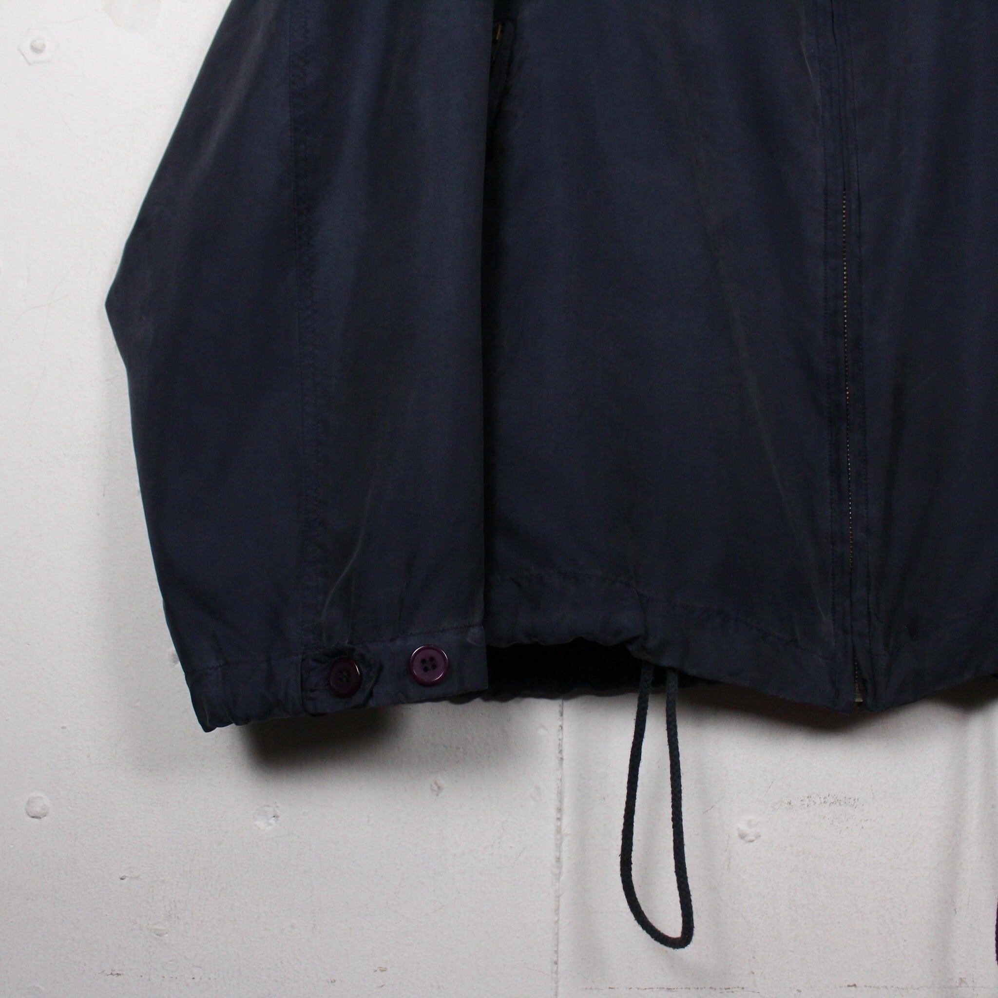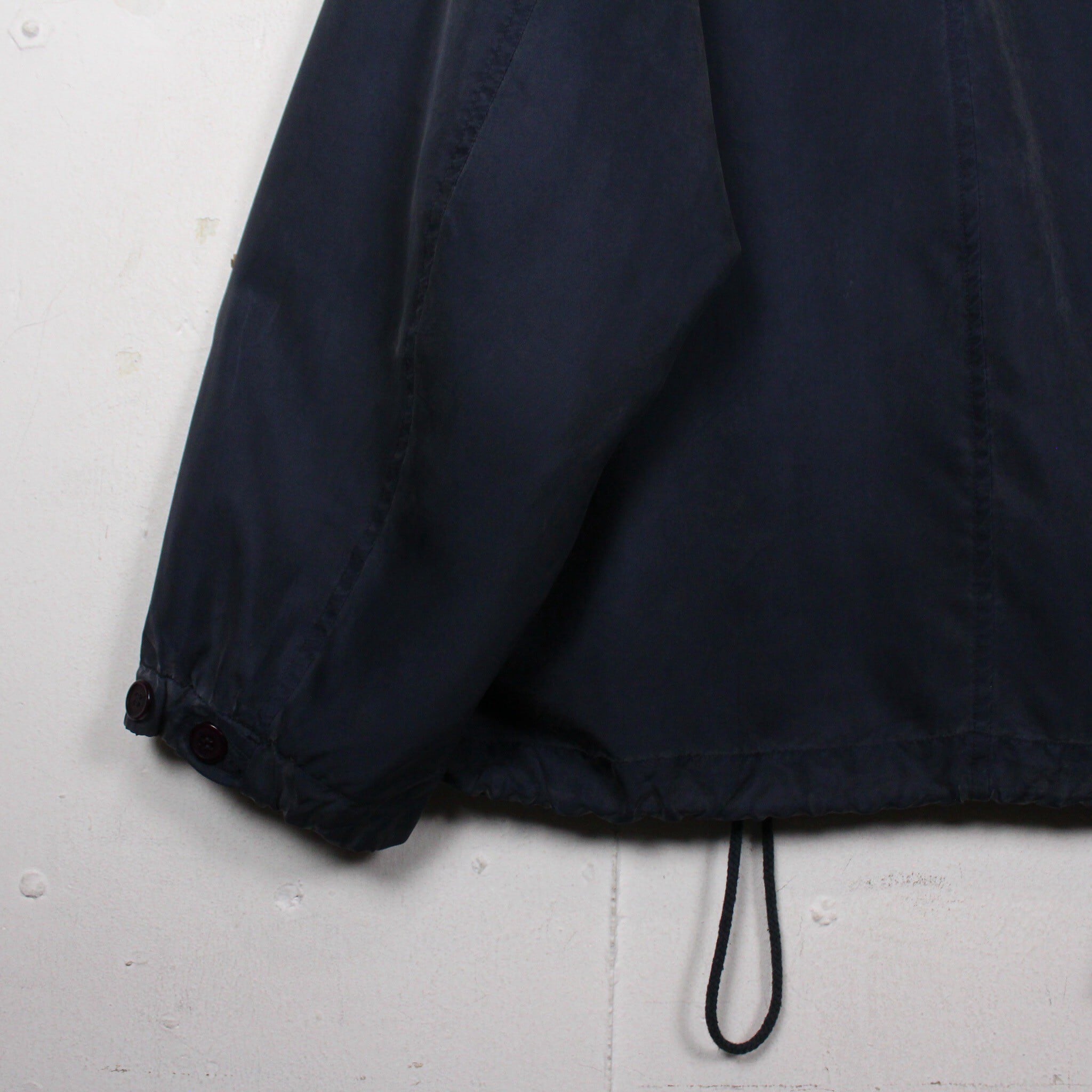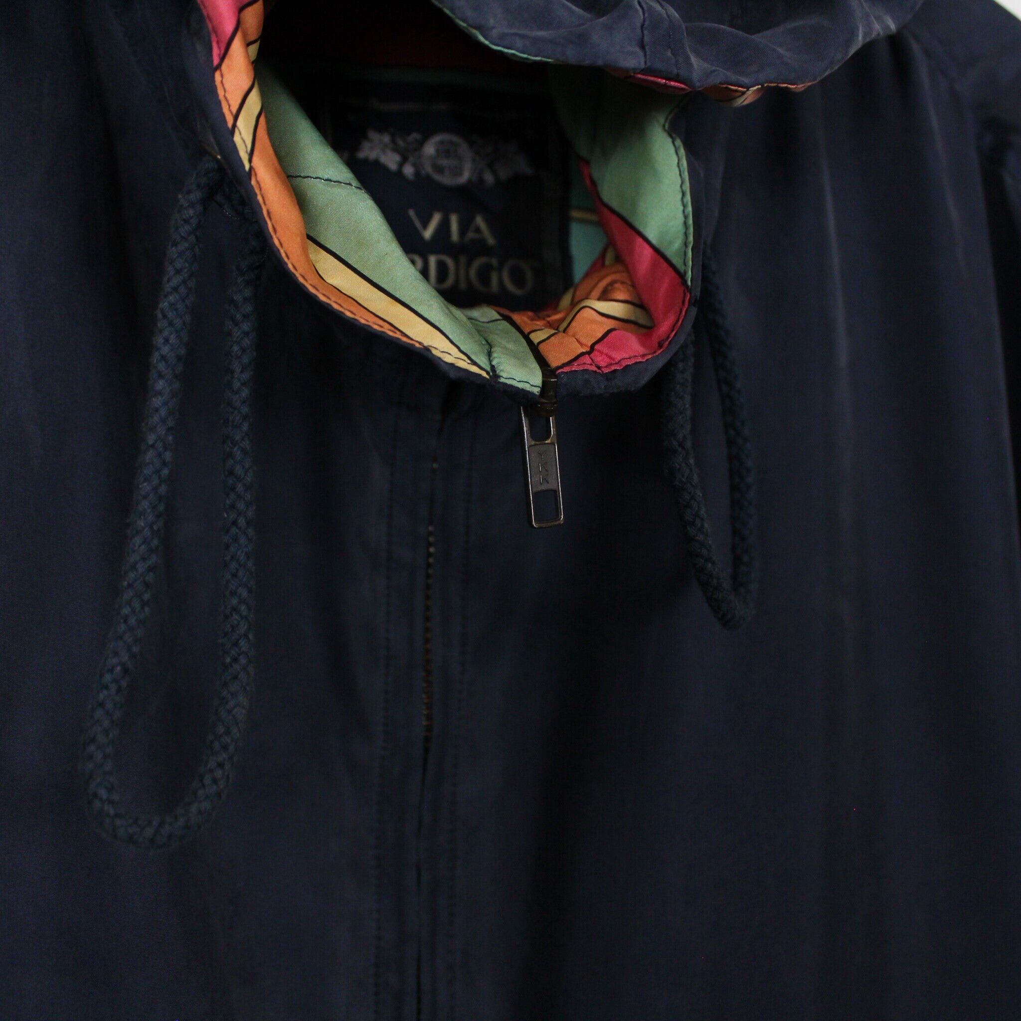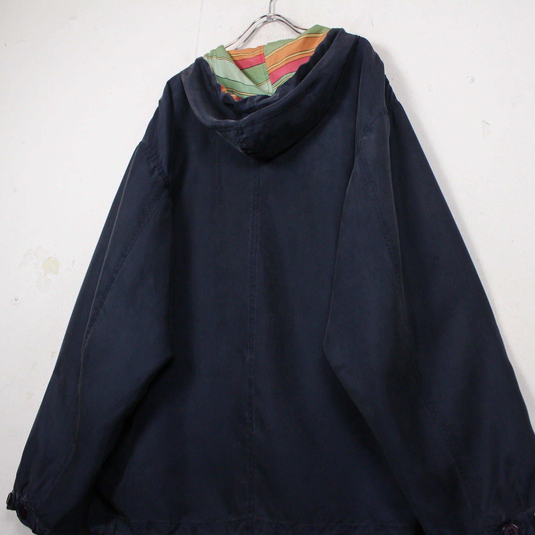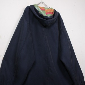 ネイビーカラーのボディに、フード裏に配されたマルチストライプの掛け合わせも非常に良いですね。