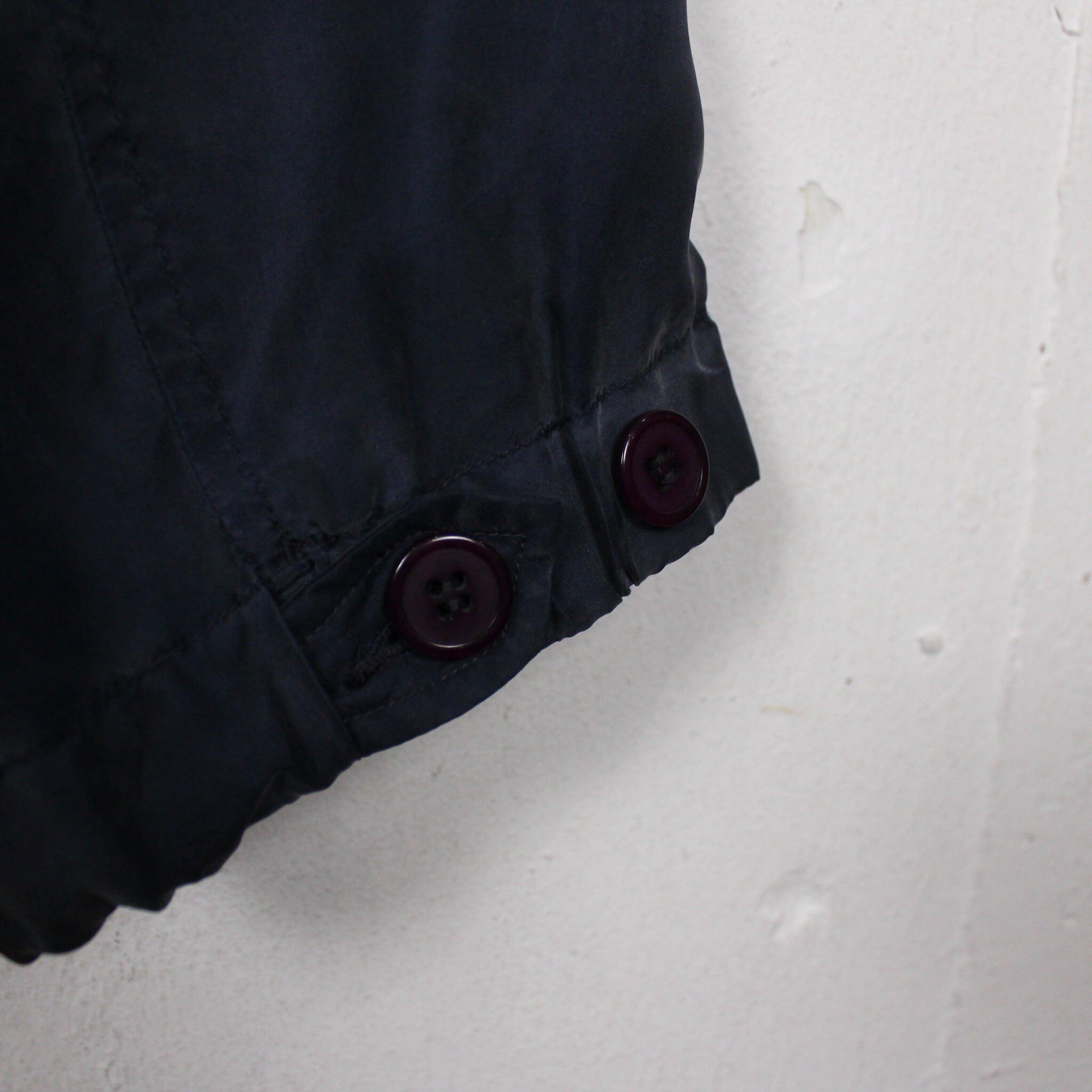 ミニマルなデザインながらも、特有の鈍い光沢を帯びたシルクの表情、美しい縫製やシルエットによって抜群の雰囲気を醸し出す一品。