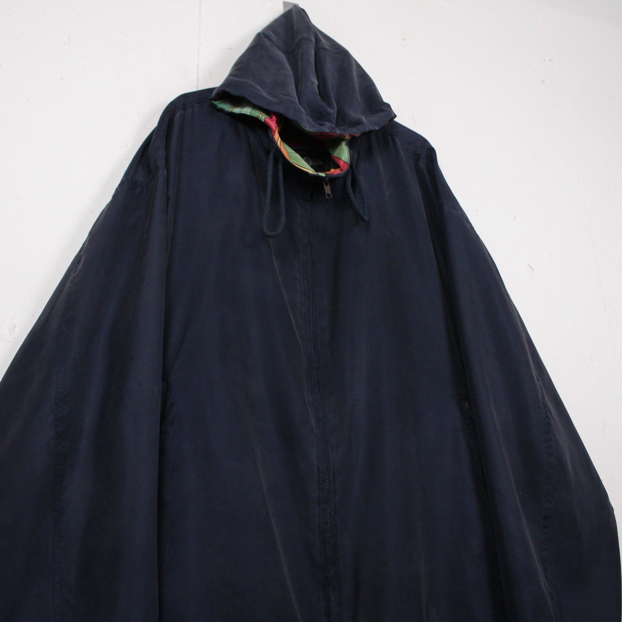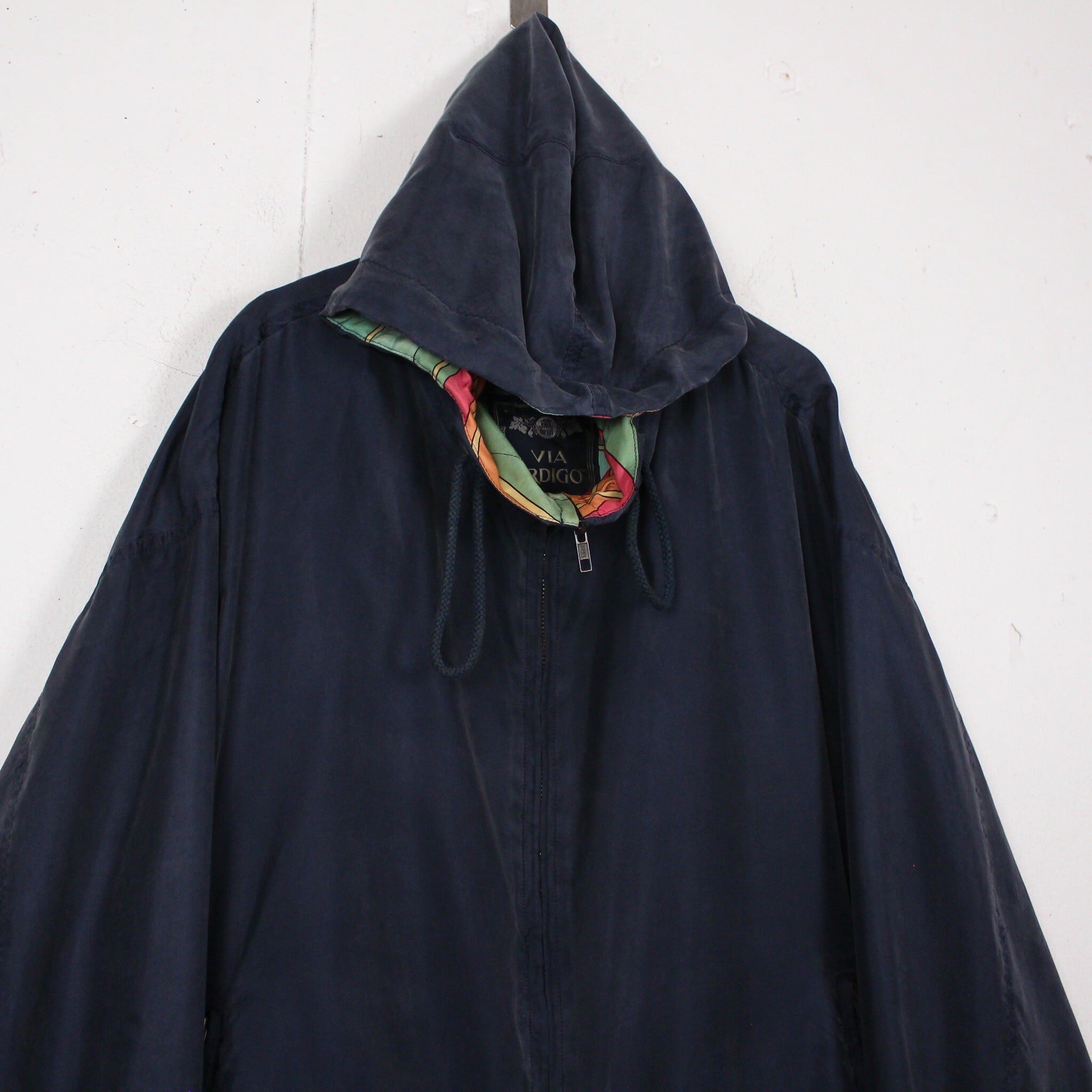 しっとりと滑らかな質感の極上シルク素材をボディに使用したフード付のジップアップジャケット。