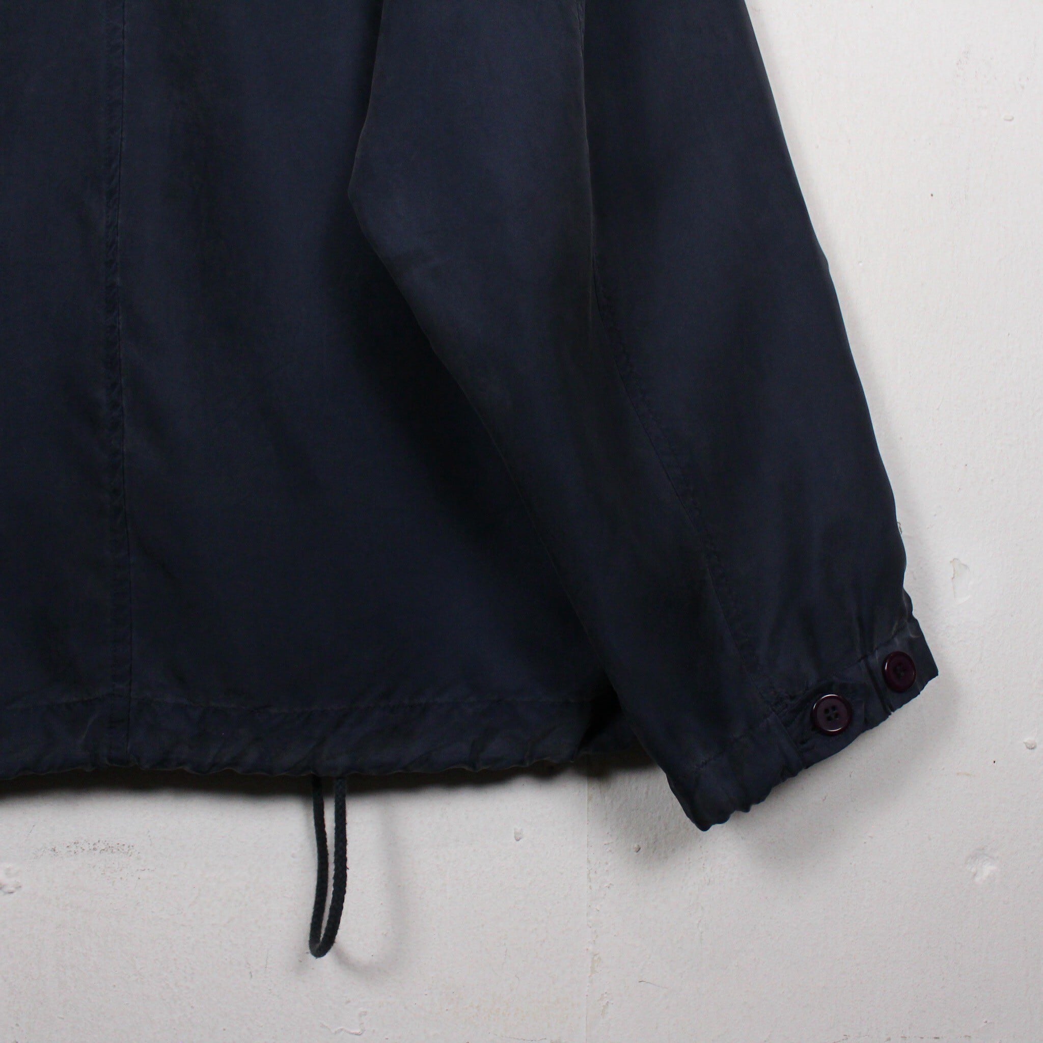 肩幅、身幅の広く採られたルーズなサイジングに、ボディの滑らかな質感も相まって着用時のシルエットも完璧。裾にはドローコードが施されており、絞りを効かせることでシルエットに変化を加えた着こなしもお楽しみいただけます。