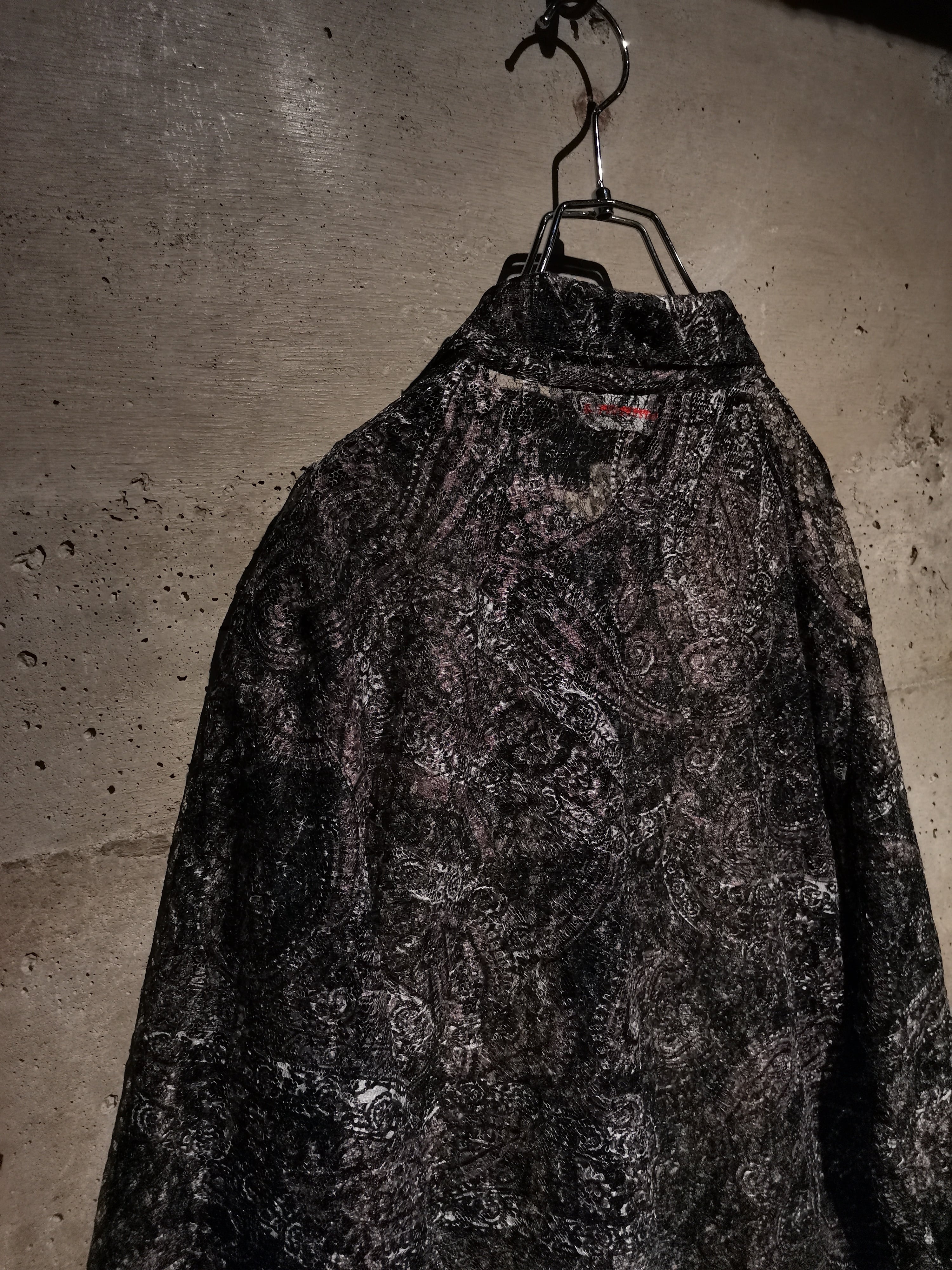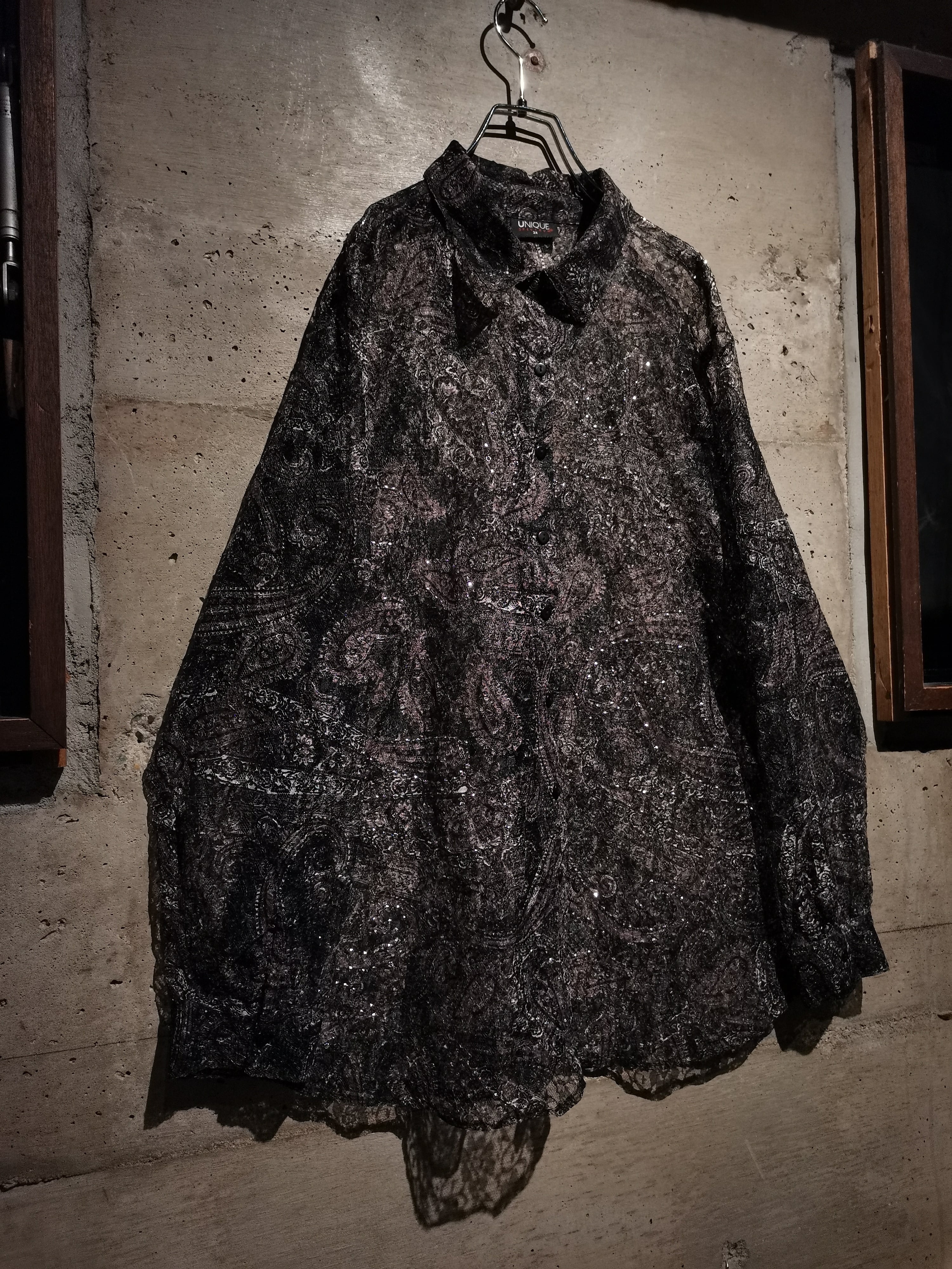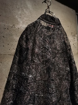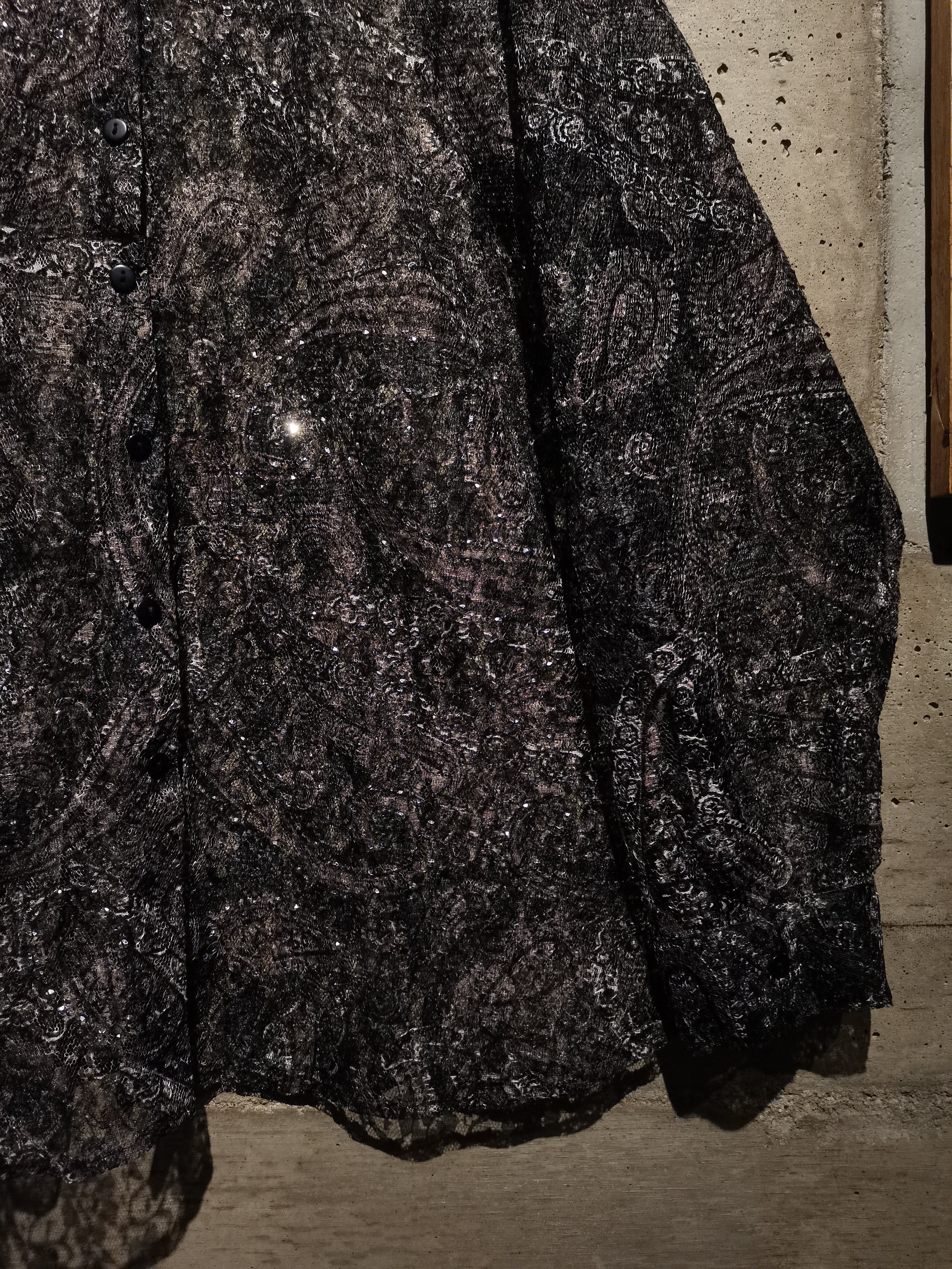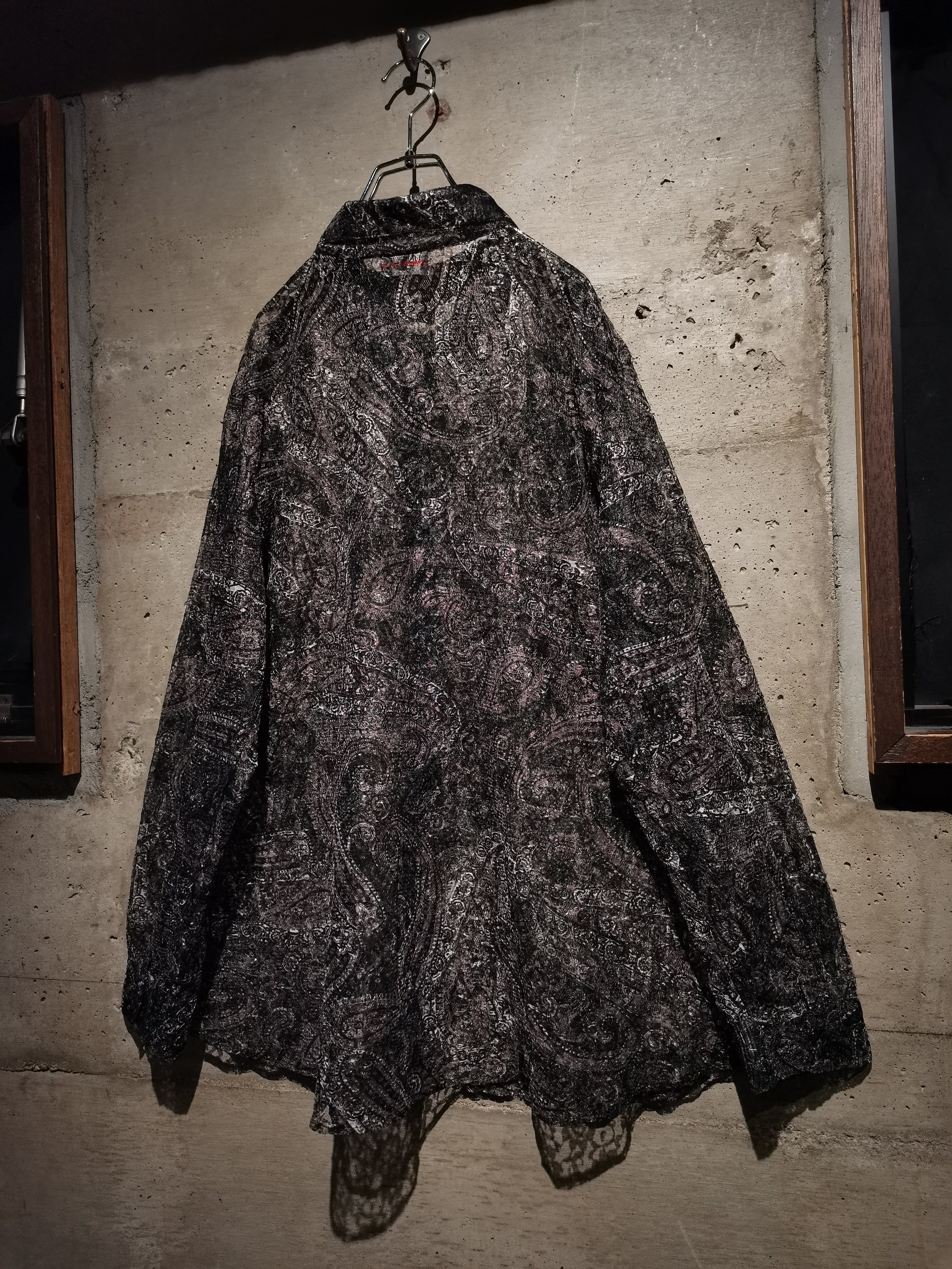 目の細やかなレースを用いたボディに、織りによってペイズリー柄を表現した、非常に美しい長袖レースシャツ。