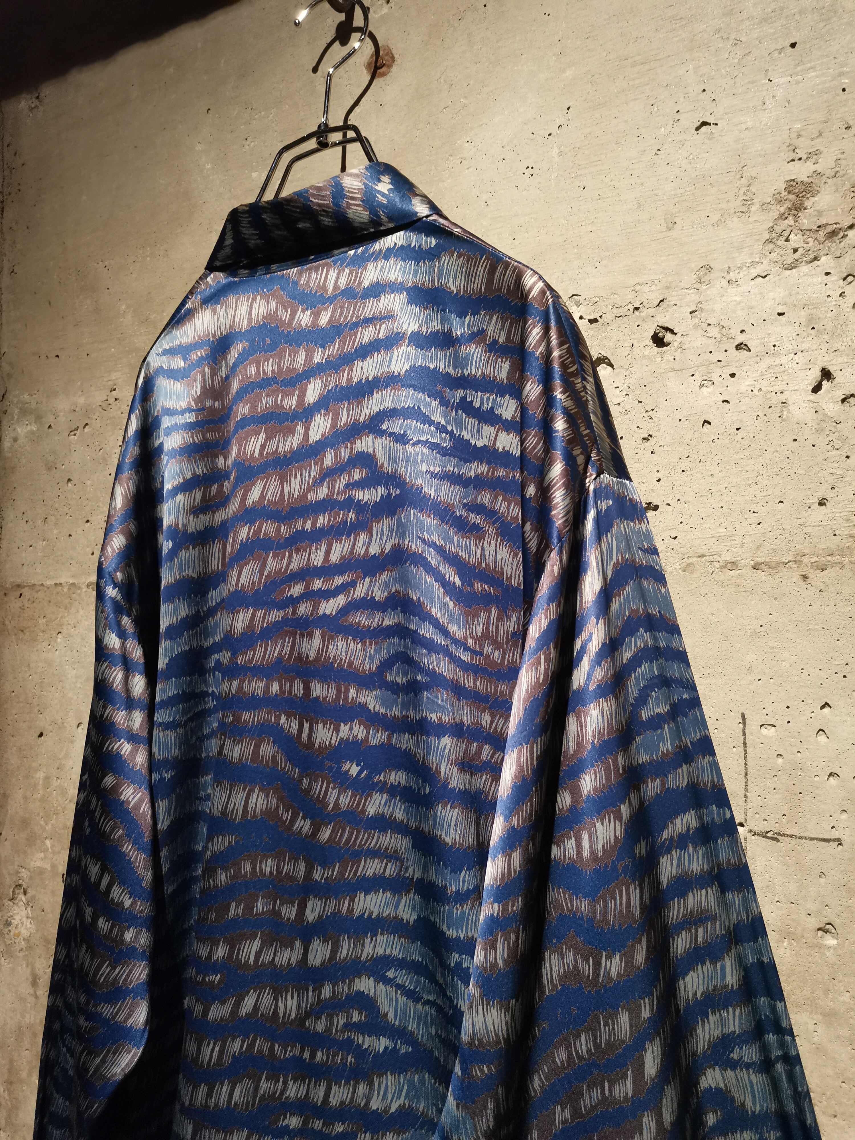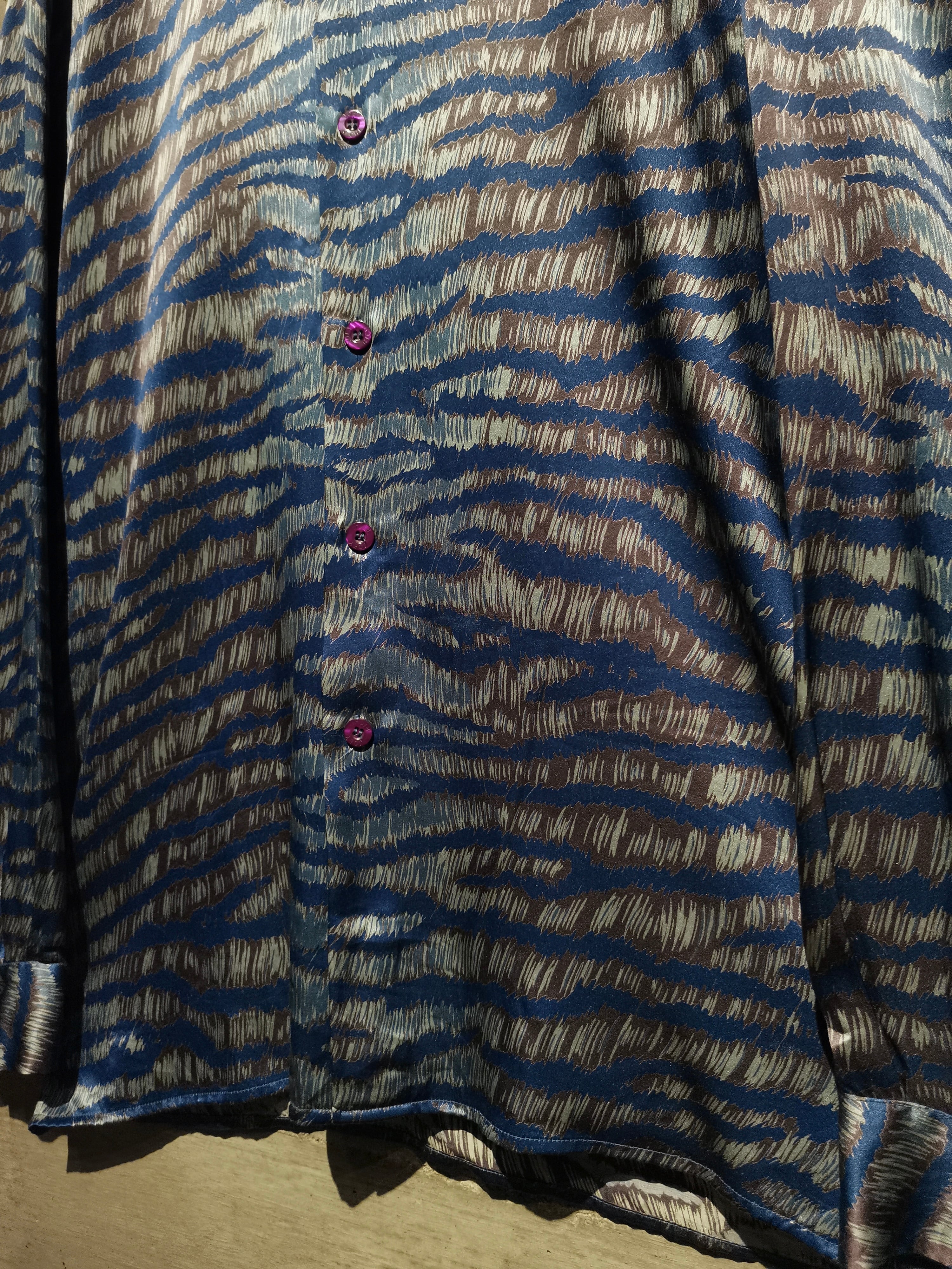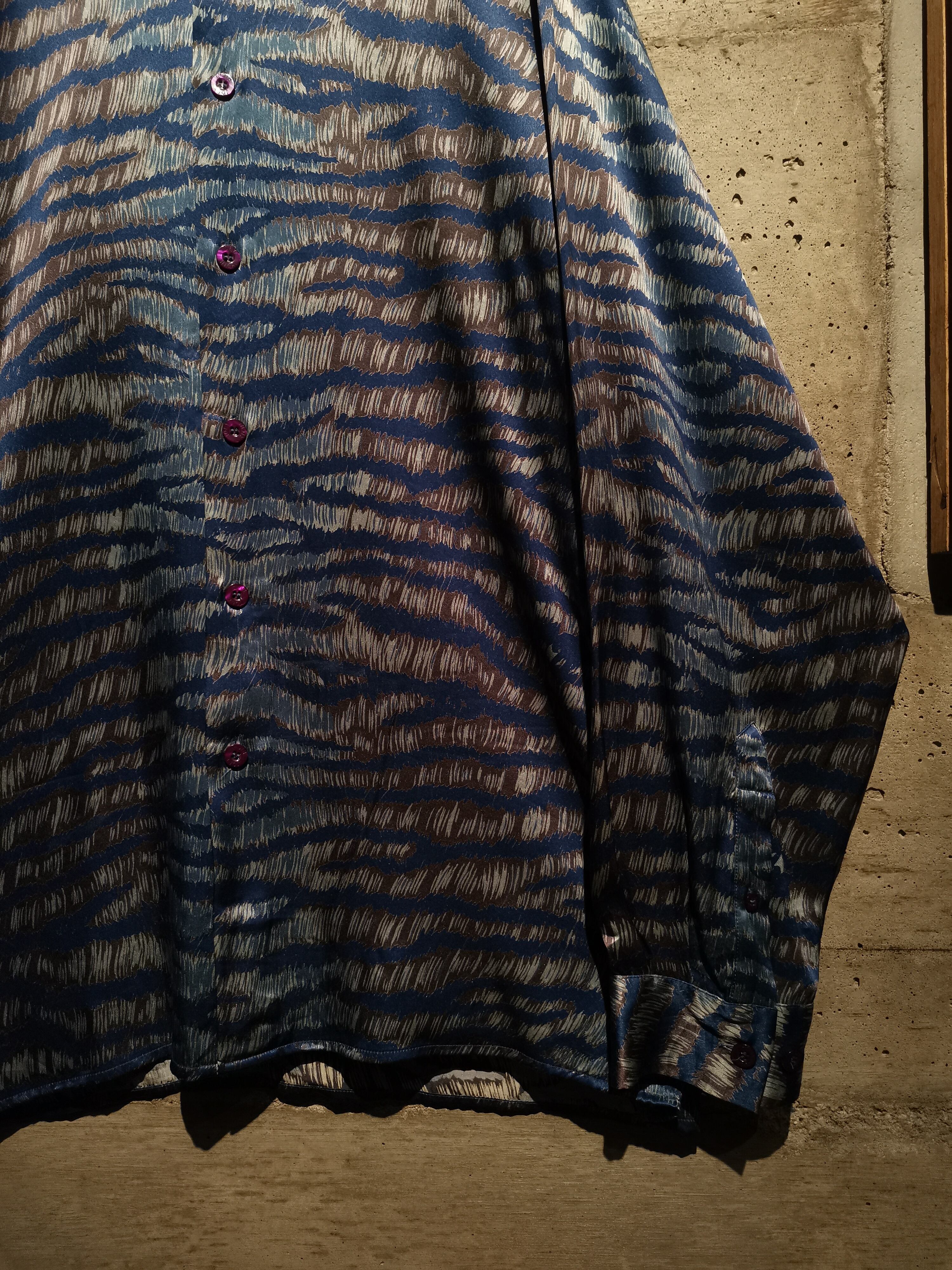 ハリ、光沢のある上質なシルクを用いたボディに、美しいゼブラ柄を載せたスペシャルな長袖シャツ。