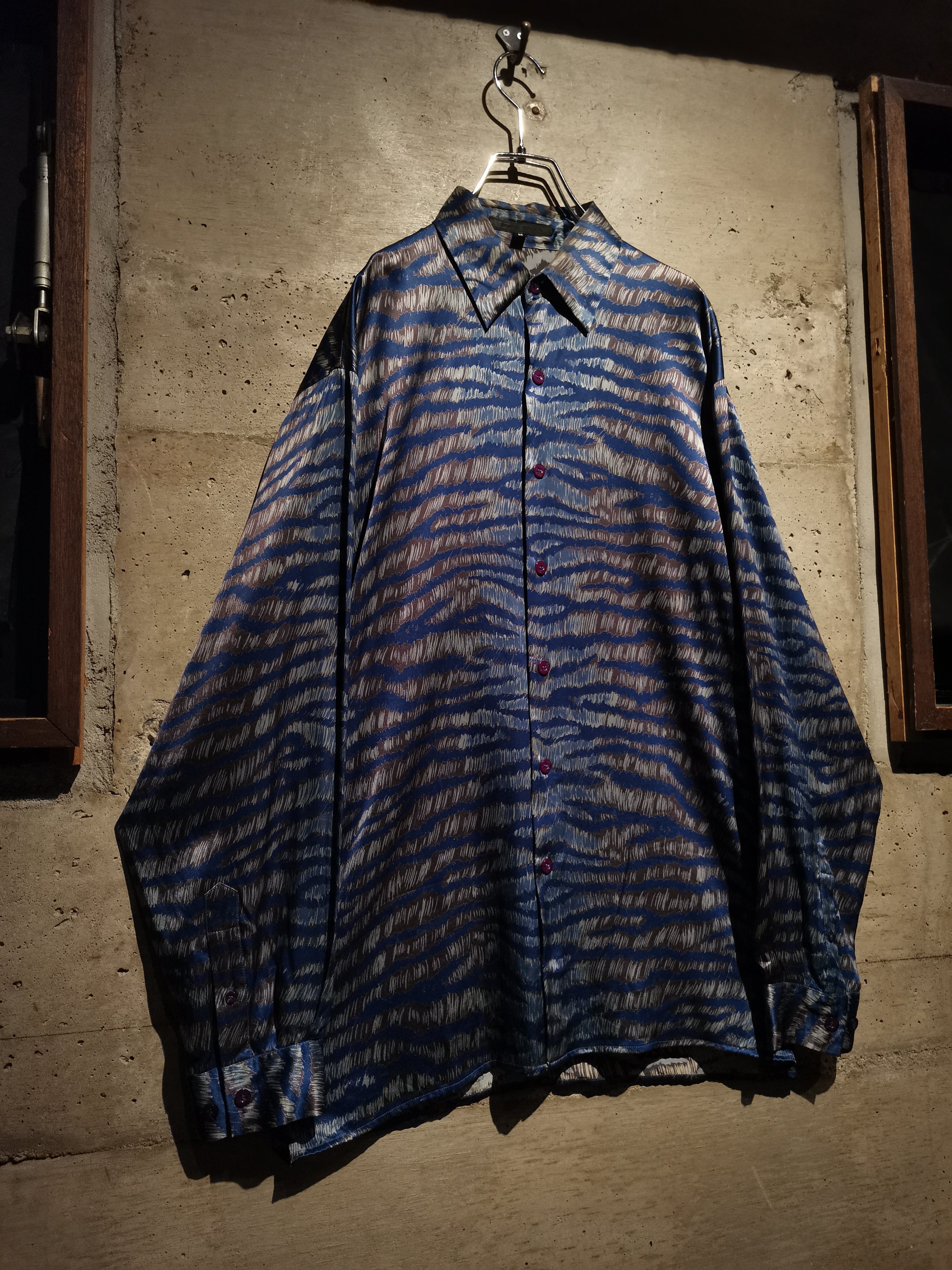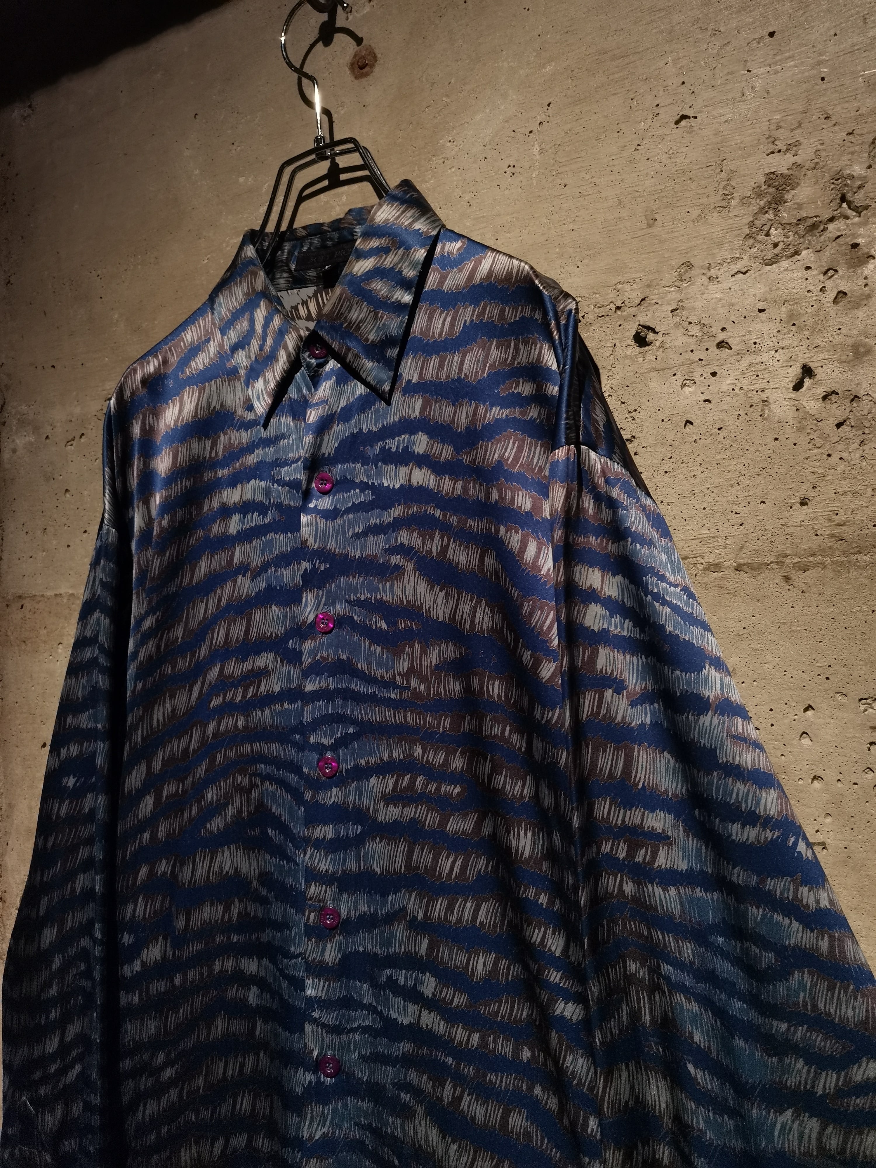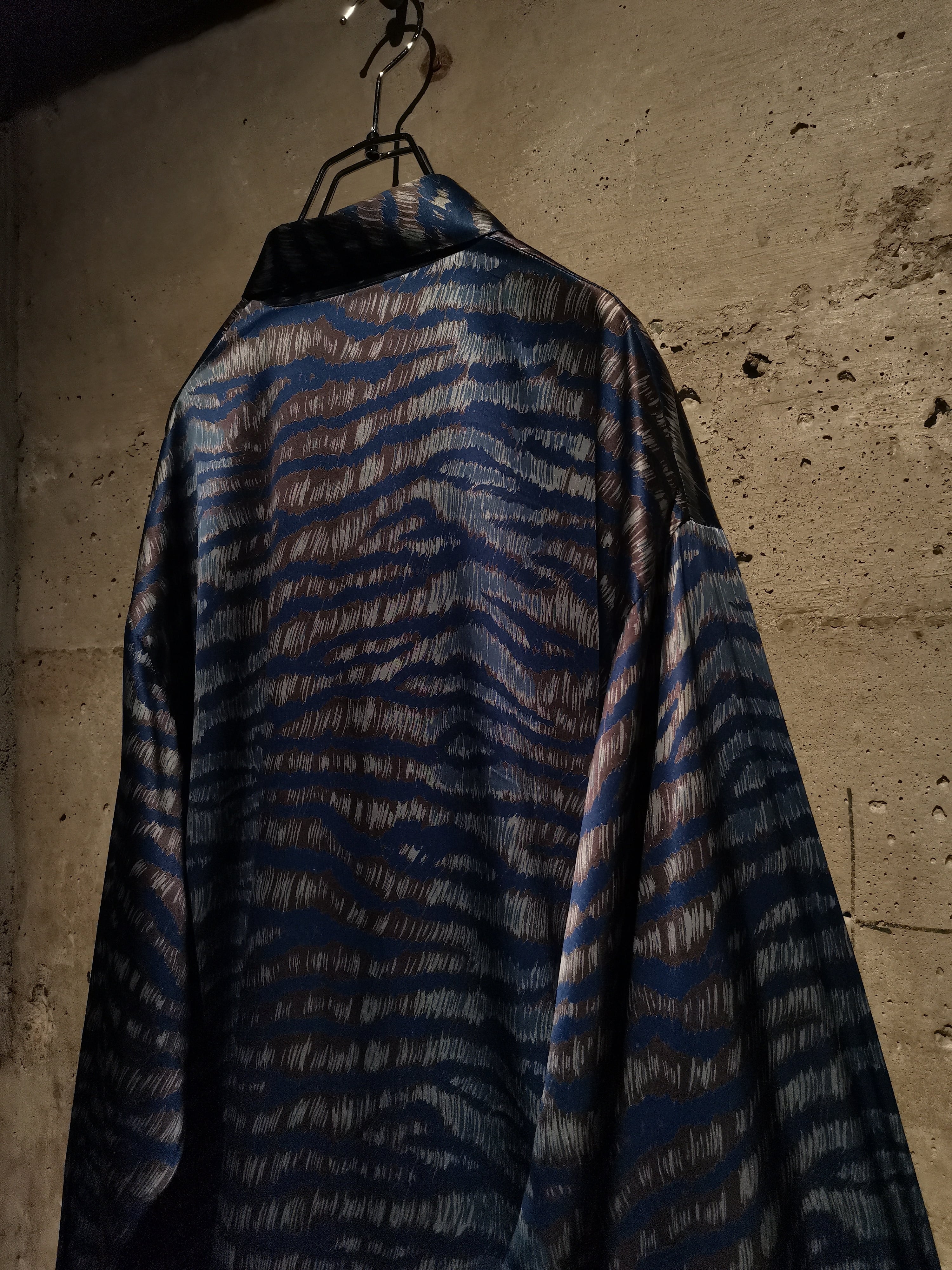ハリ、光沢のある上質なシルクを用いたボディに、美しいゼブラ柄を載せたスペシャルな長袖シャツ。