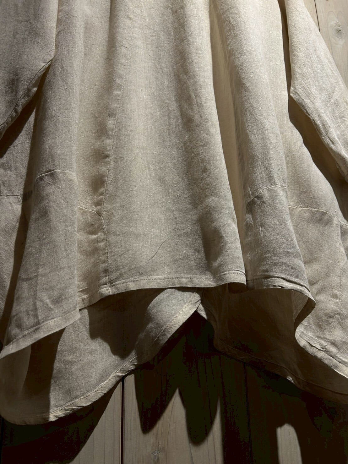 独特なデザイン性に、リネンの特有の風合いが見事にマッチ。玄人好みの1着に仕上がっています。