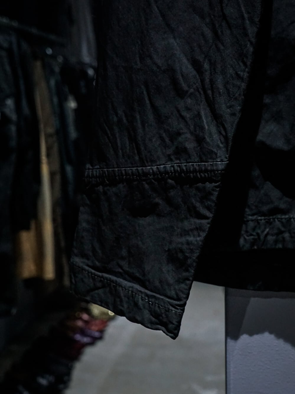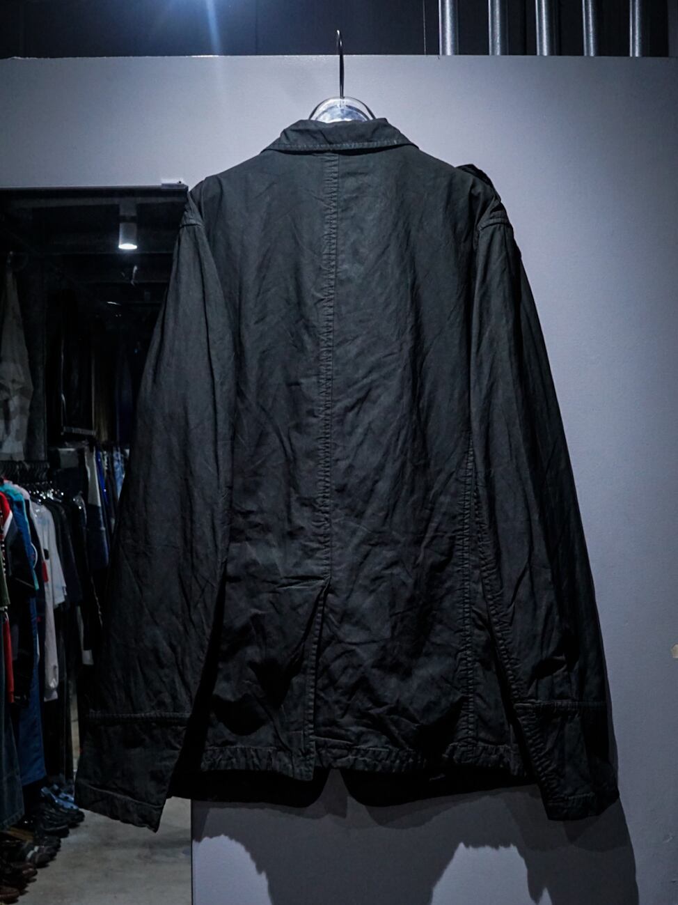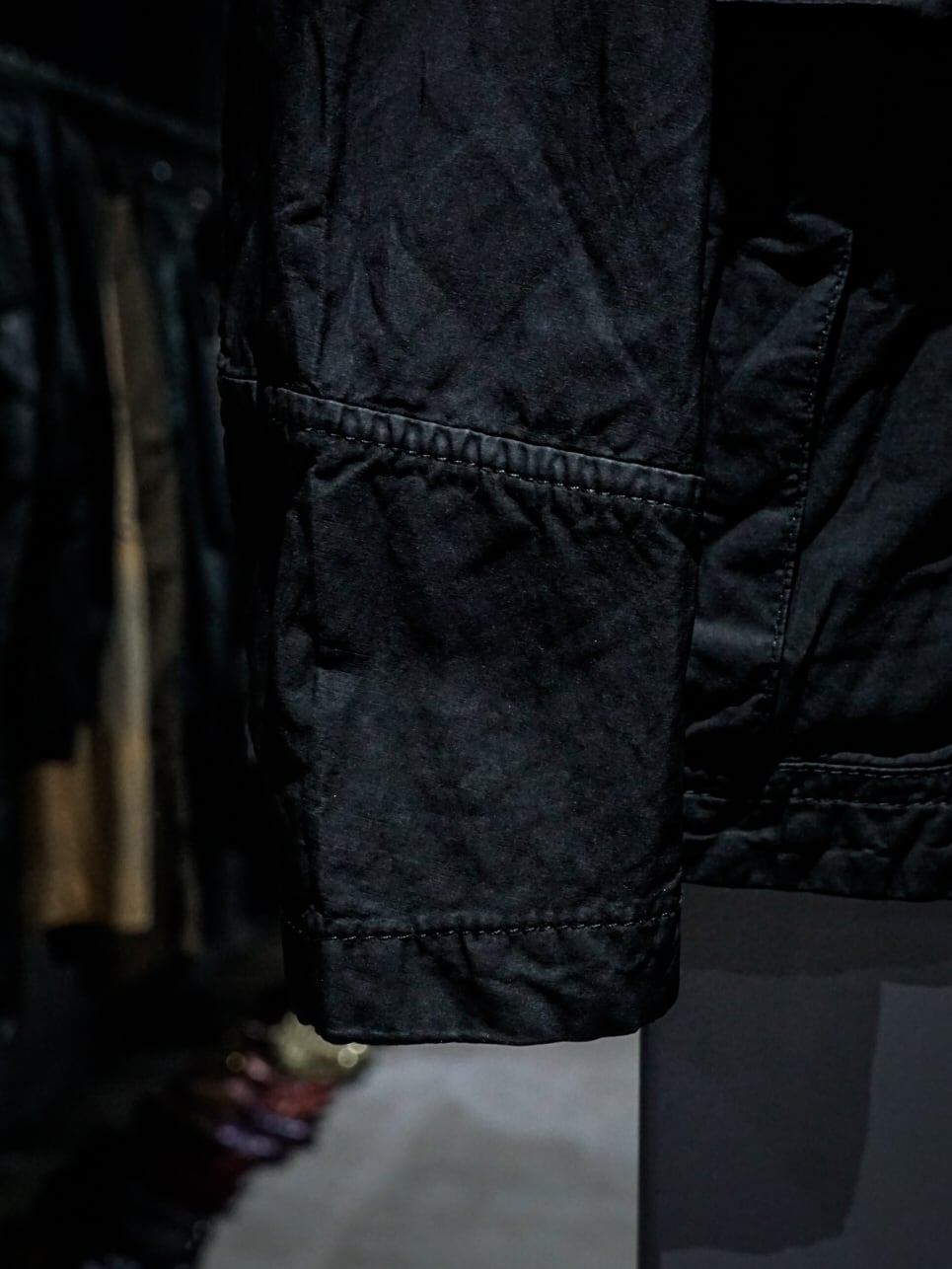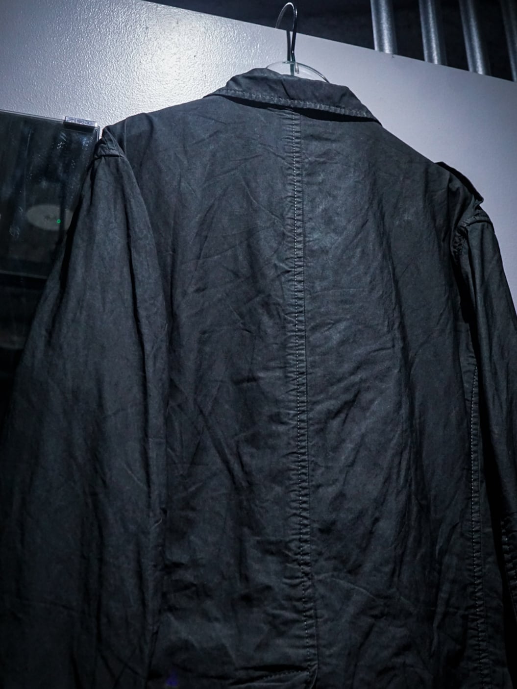 コーティング加工が施された独特な表情を見せる生地をボディに使用し、マルチなポケットデザインを施した1着。