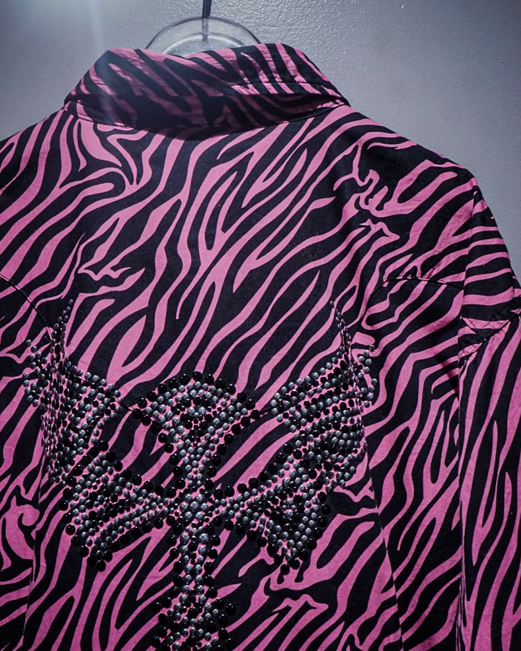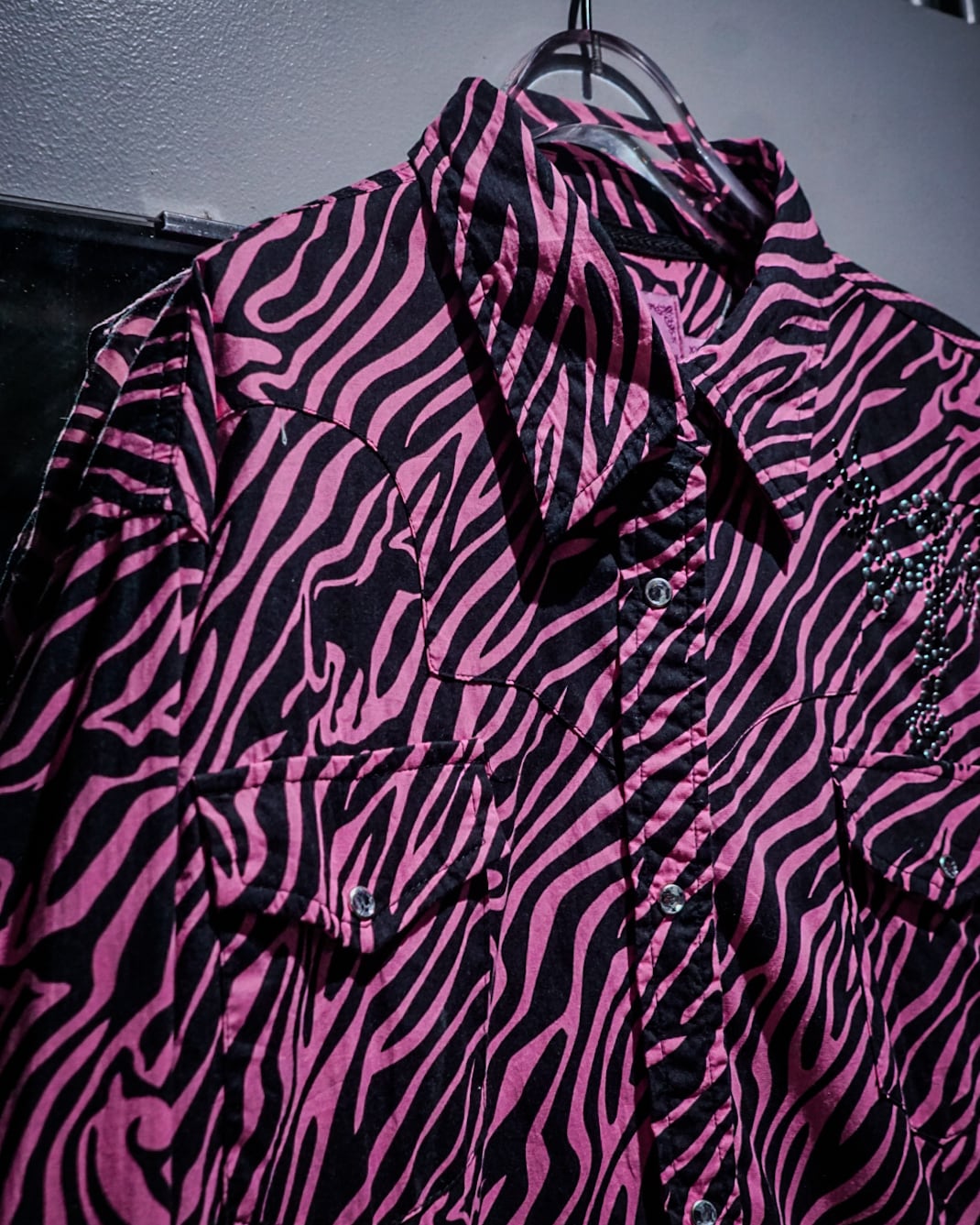 黒×ピンクのゼブラのボディに、スタッズで装飾を施したかなりギャルなウエスタンシャツ。