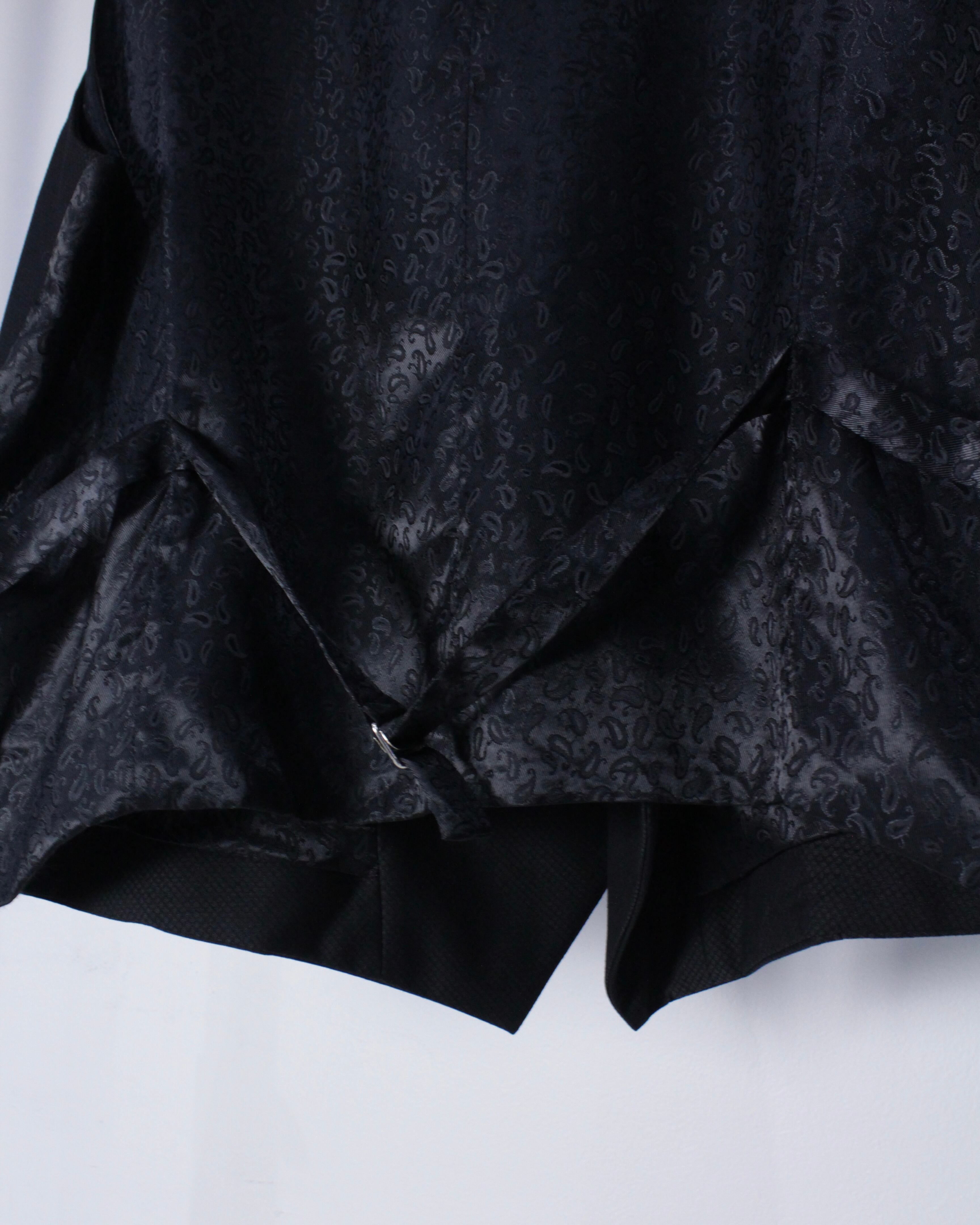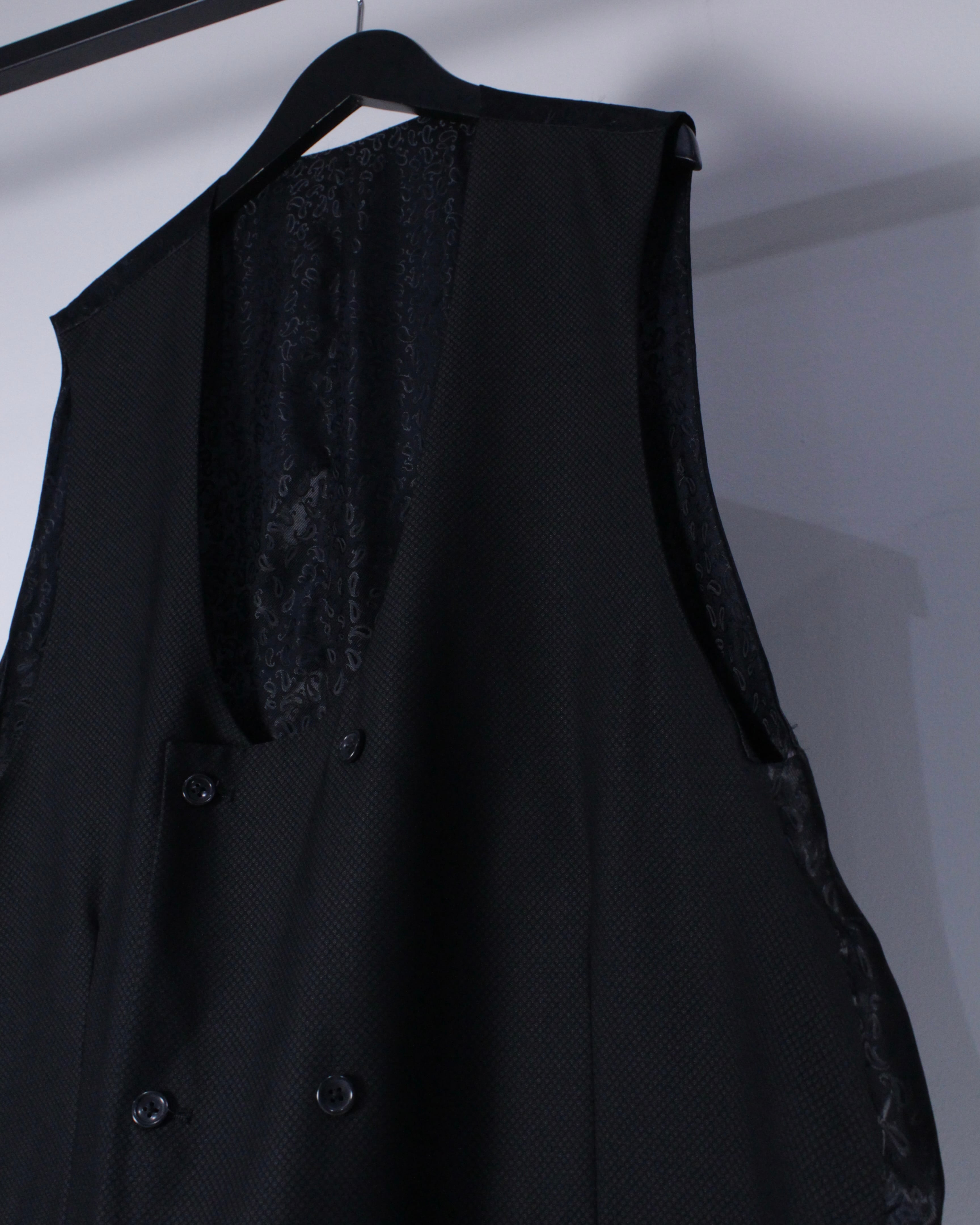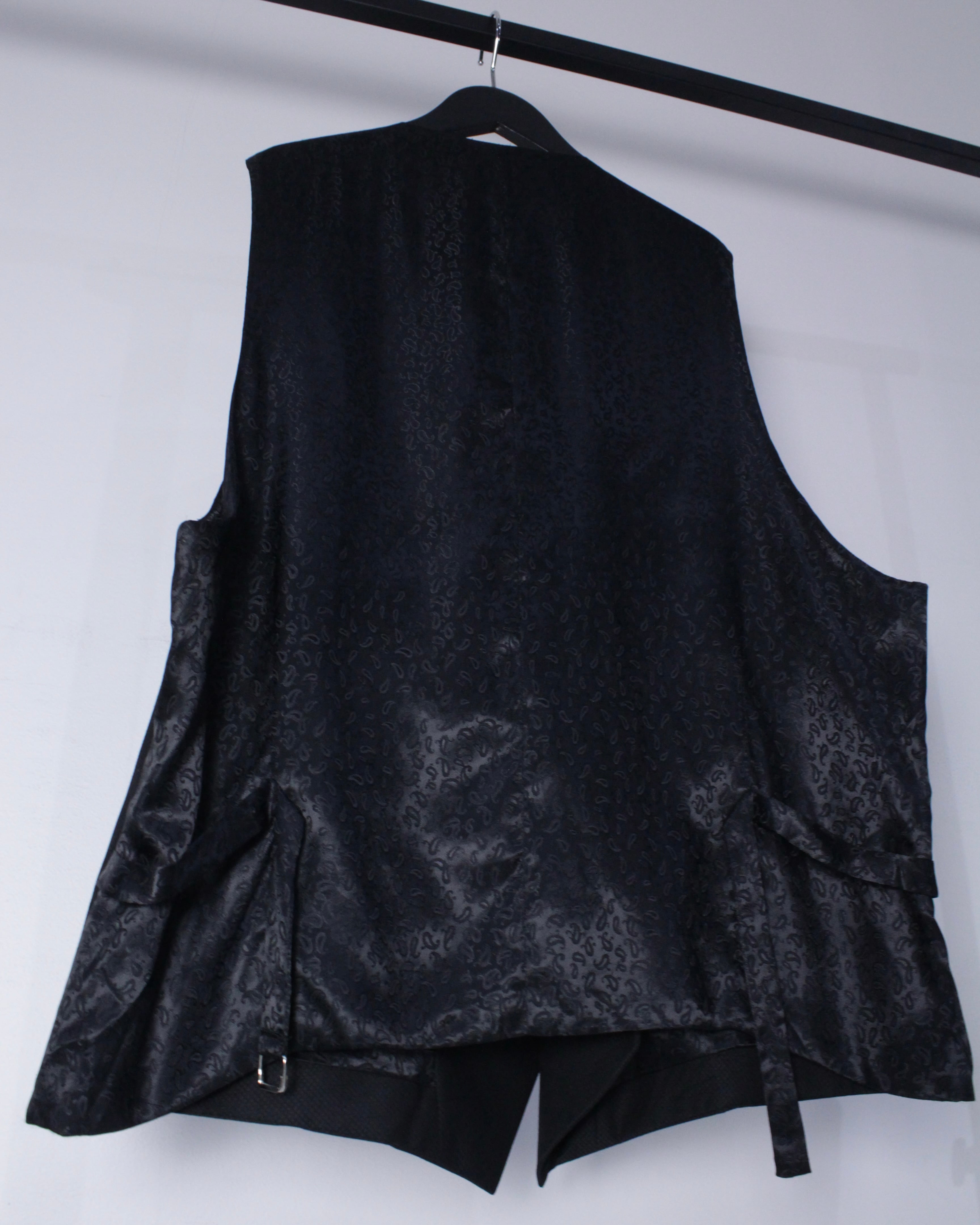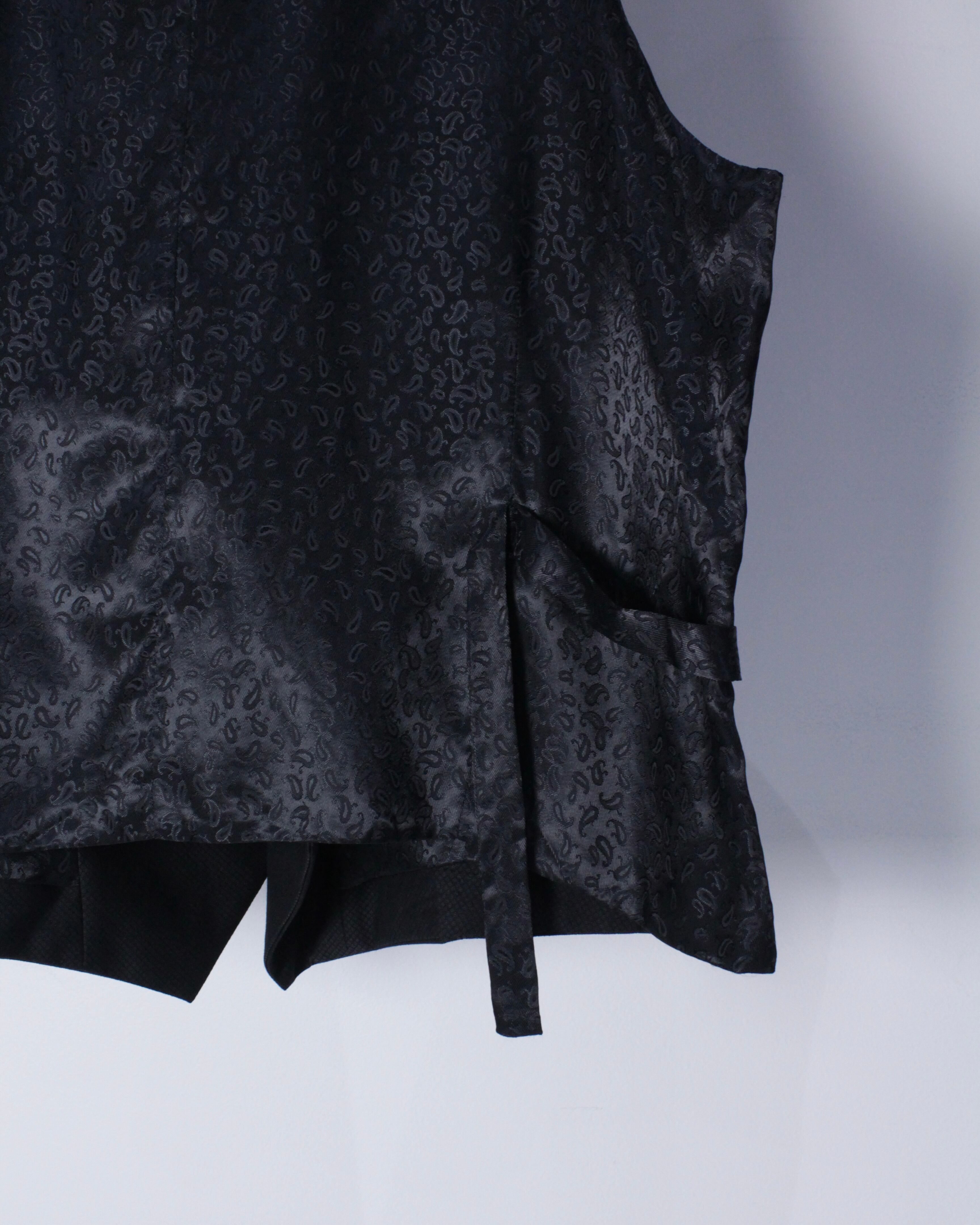 ブラックのボディをベースに、背面にペイズリー柄を載せたテキスタイルを切り替えたベスト。