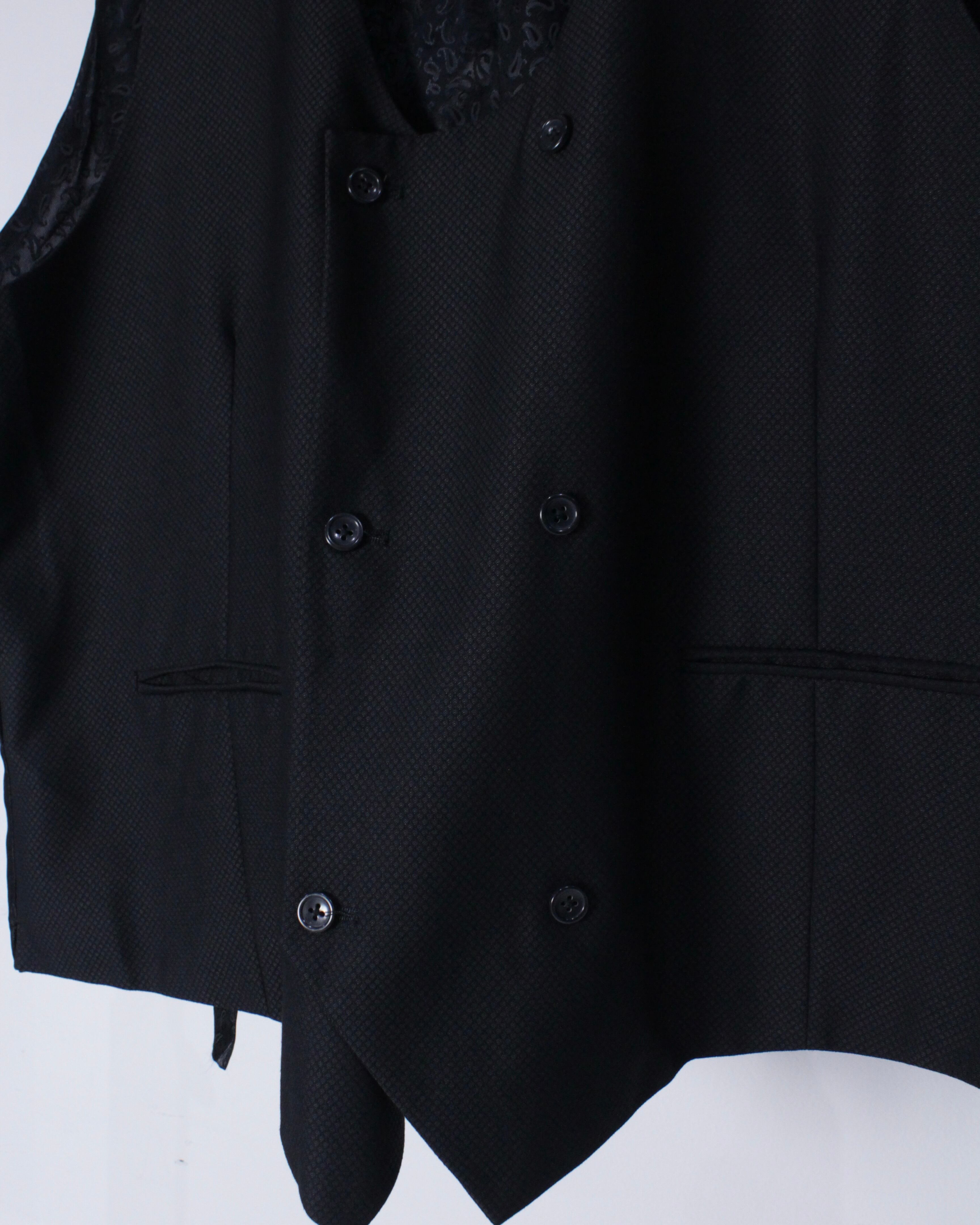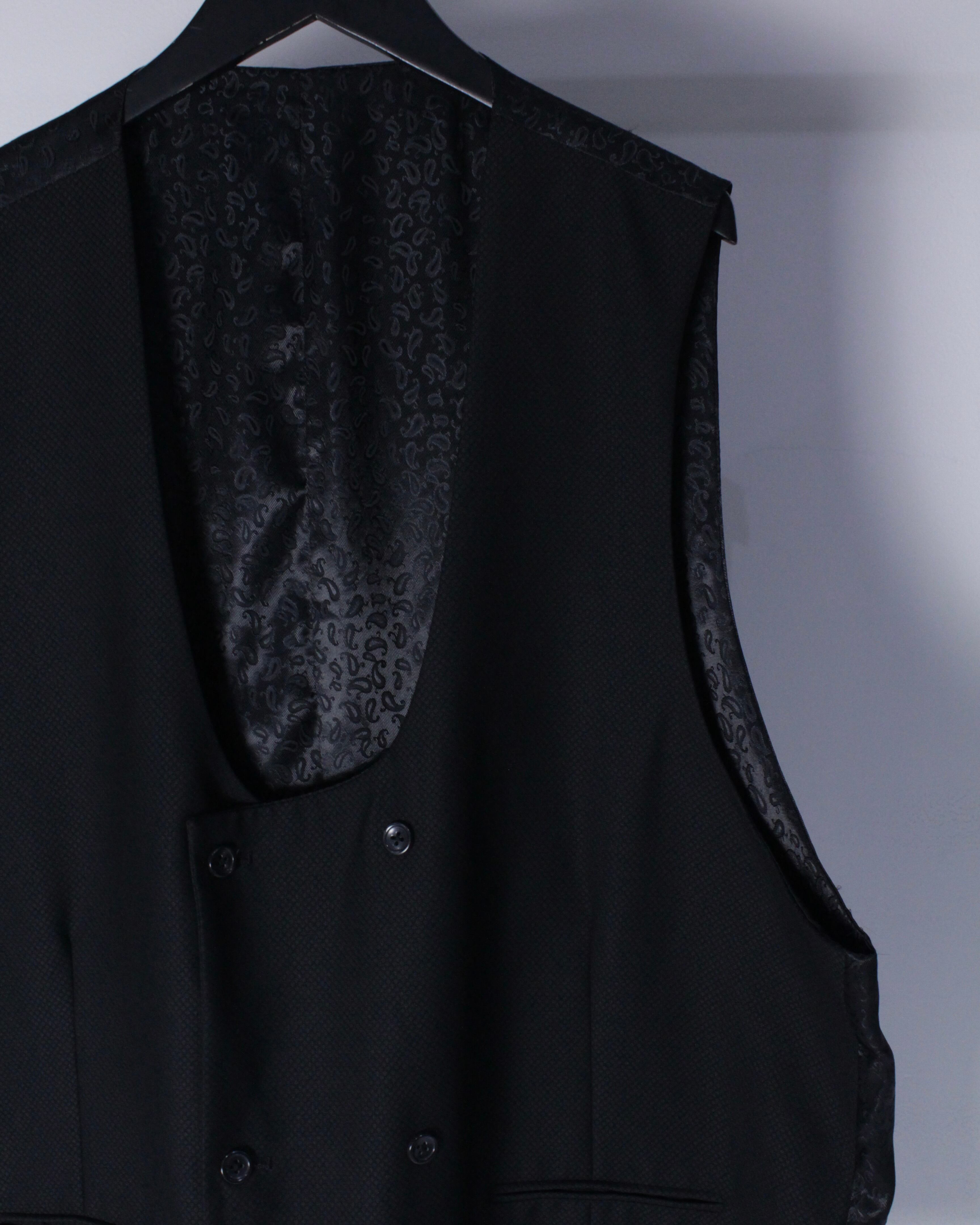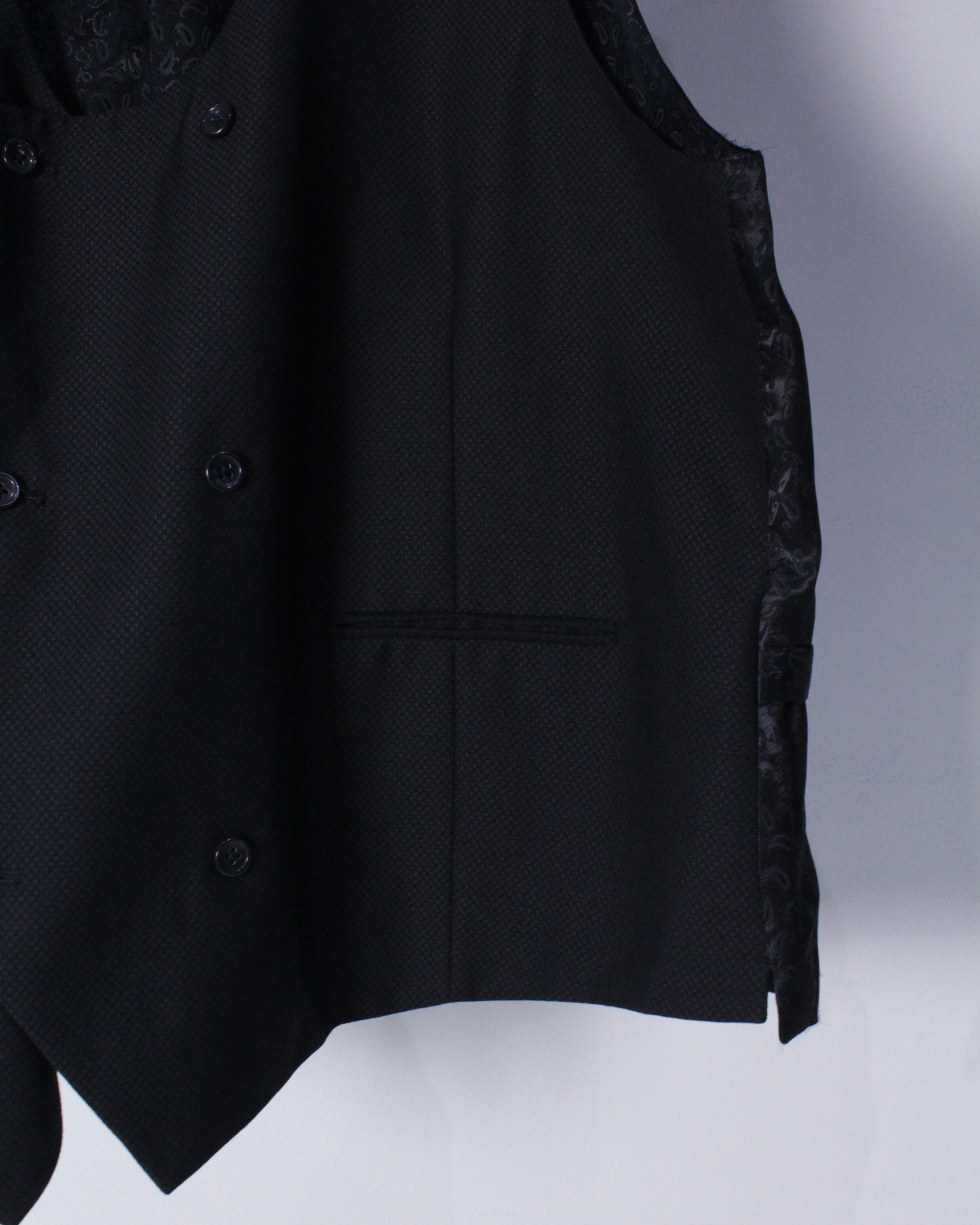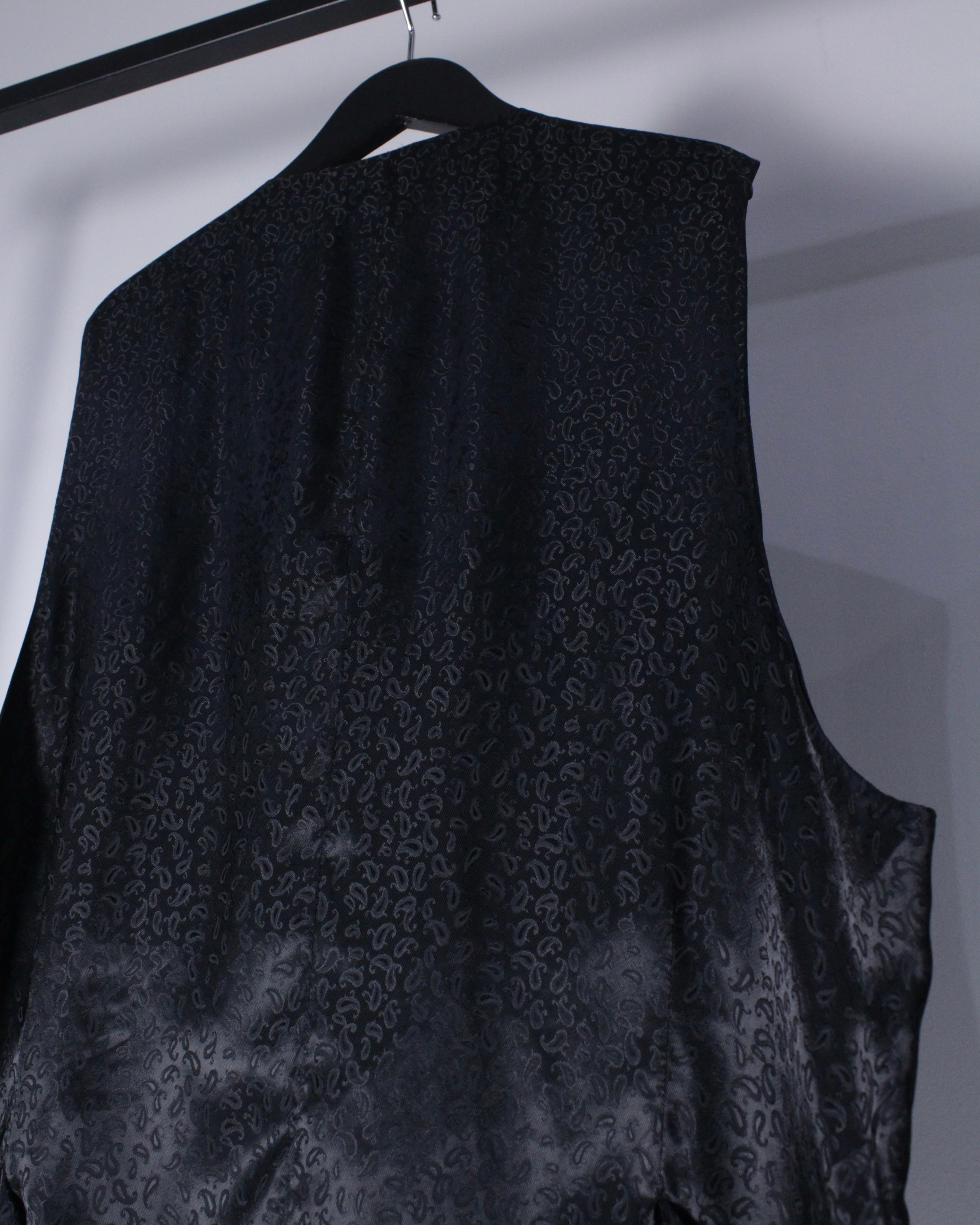 ブラックのボディをベースに、背面にペイズリー柄を載せたテキスタイルを切り替えたベスト。