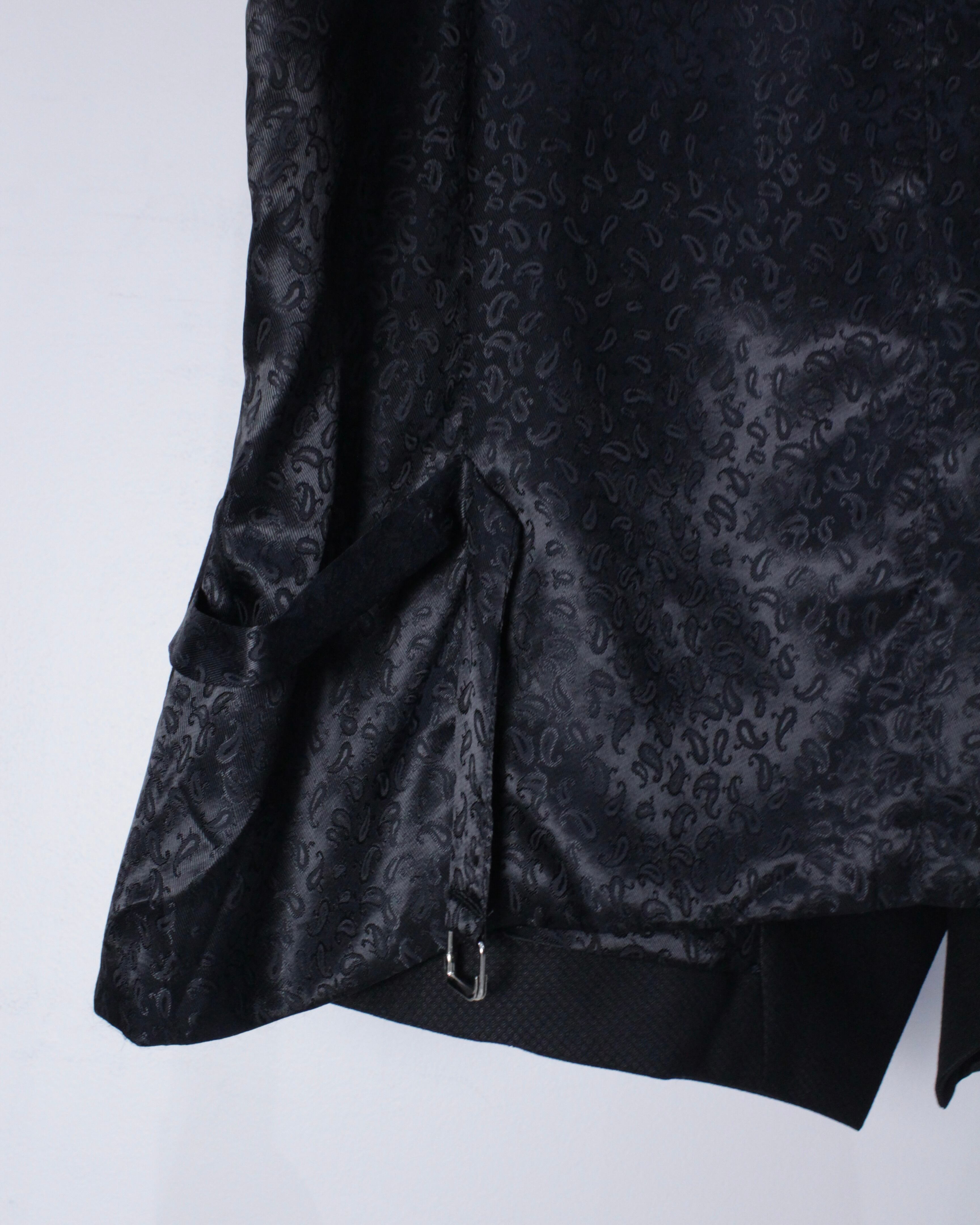 オールブラックのボディに光沢のある生地の切り替えがよく映え、光の当たり加減で浮き上がるペイズリーが雰囲気をムンムンに放っています。