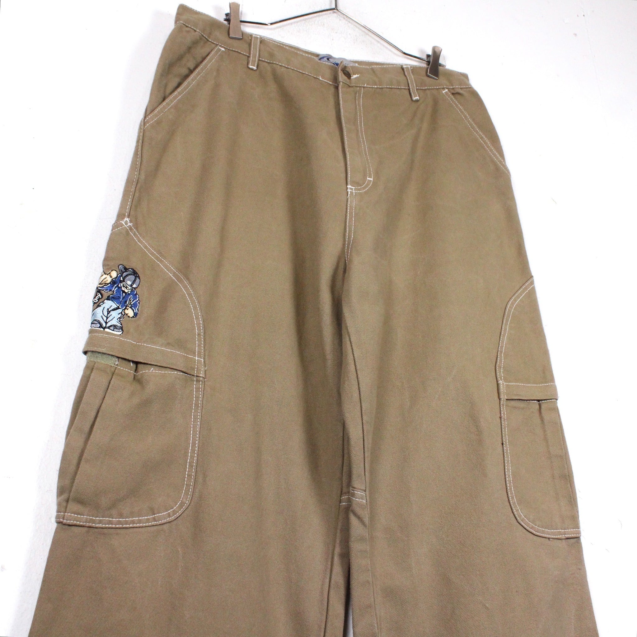 デザインはさることながら、やはりレイヴパンツならではのウエストから裾まで超ワイドにズドンと落ちるシルエットが最高。ウエストをギュンギュンに絞って履いた時のシルエットがめちゃくちゃイケてるんです、、、是非一度お試しいただきたい。