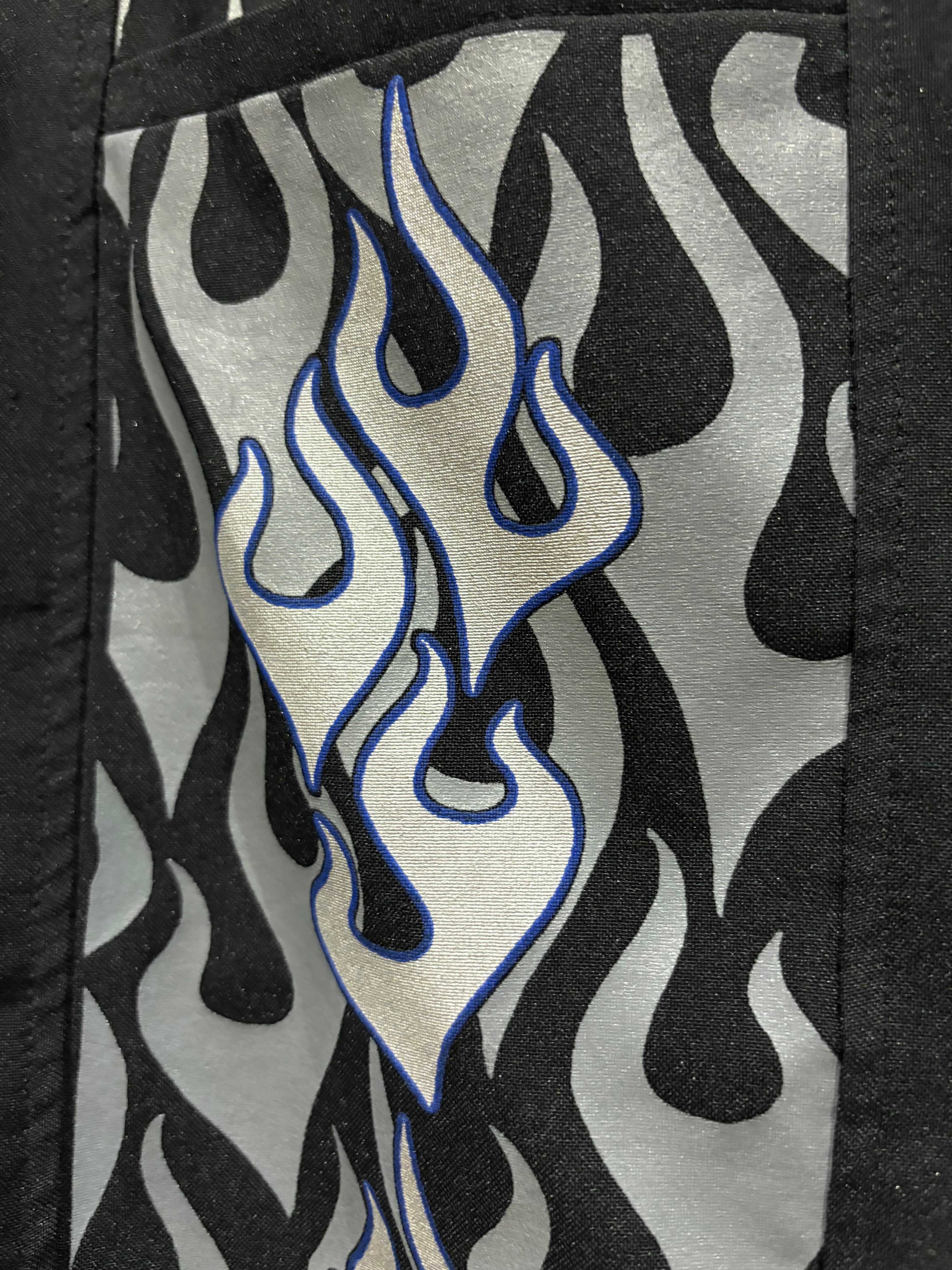 フロントのボタンにもファイヤーを模ったシルバーのボタンをあしらった、高いデザイン性と共に細部への造り込みも素晴らしい、非常にクオリティの高い仕上がりを見せています。